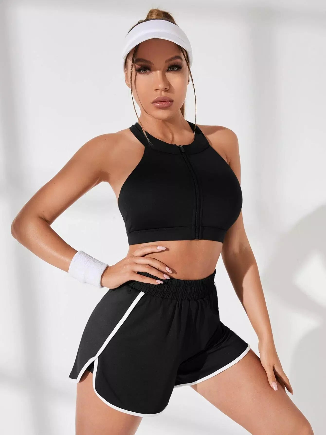 Light Support Letter Tape Zip Up Sports Bra