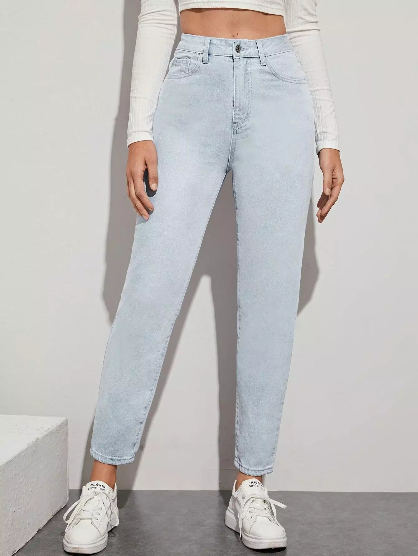 Light Wash High-Waisted Mom Jeans