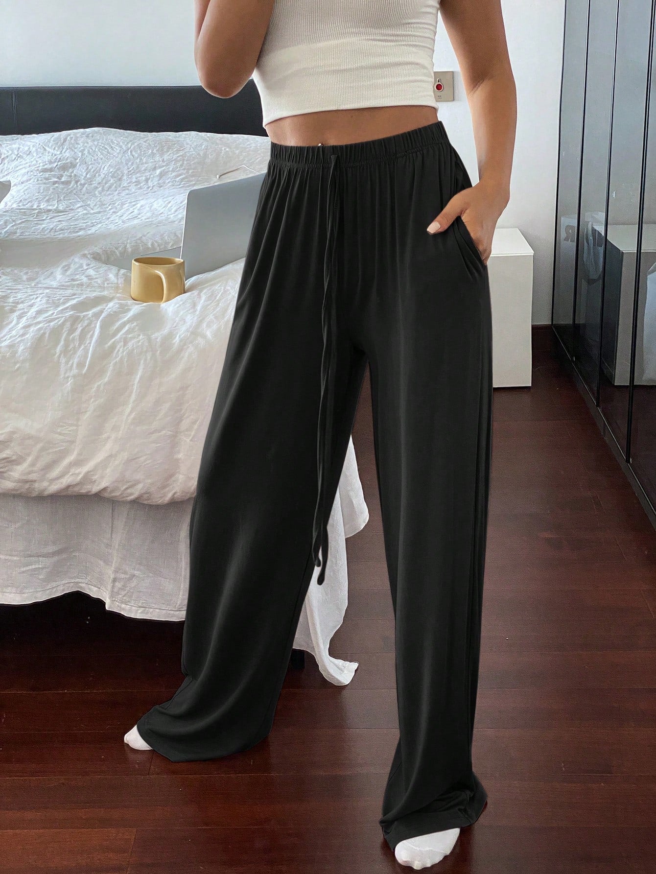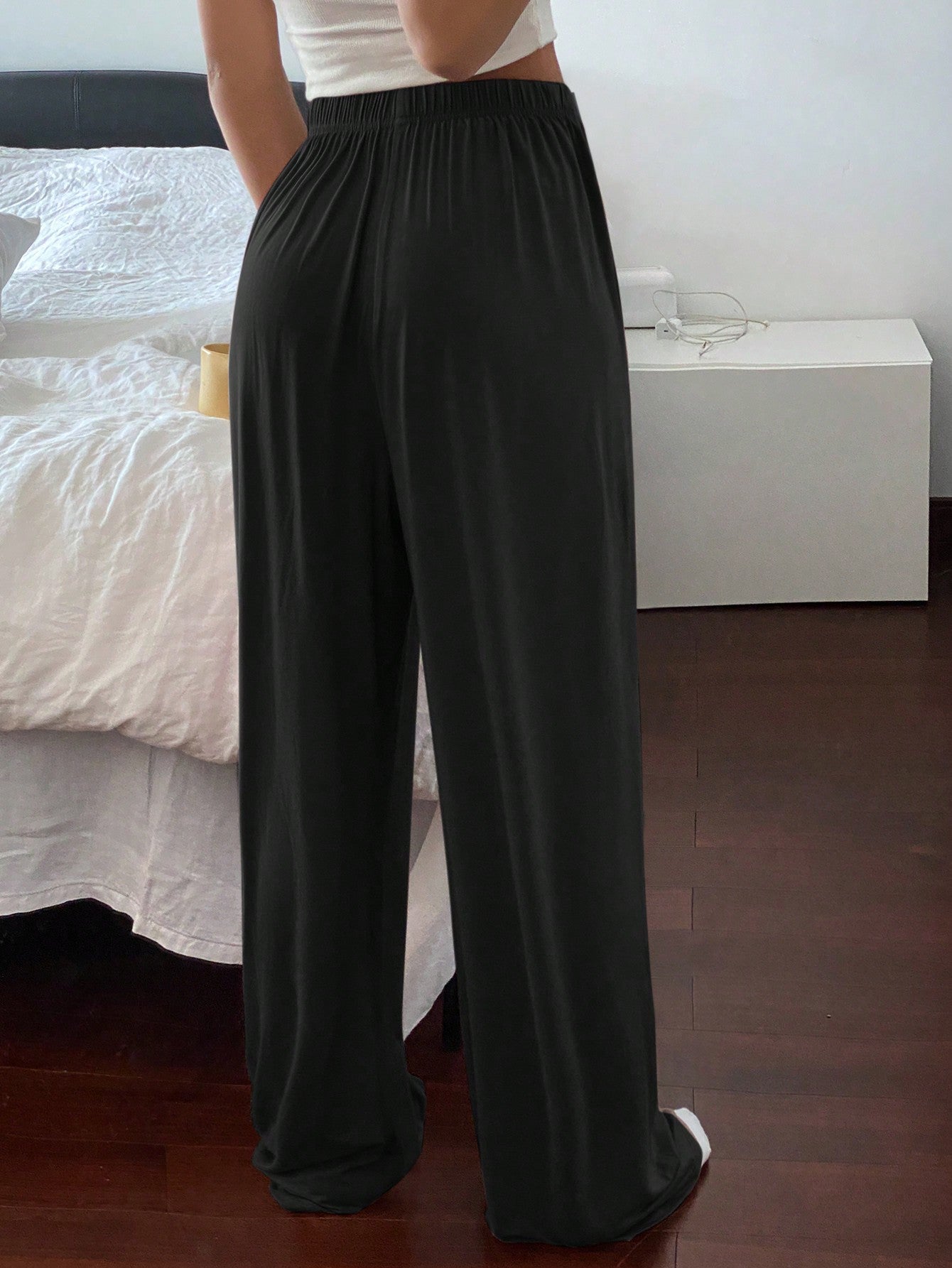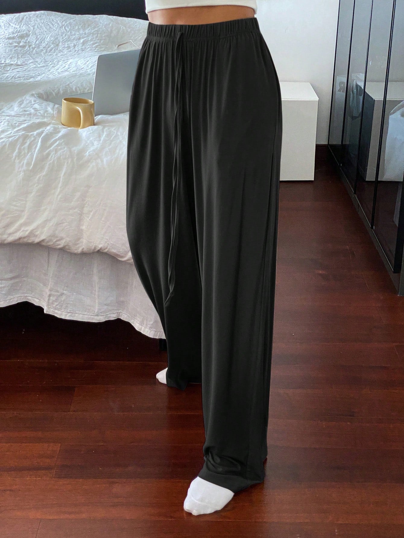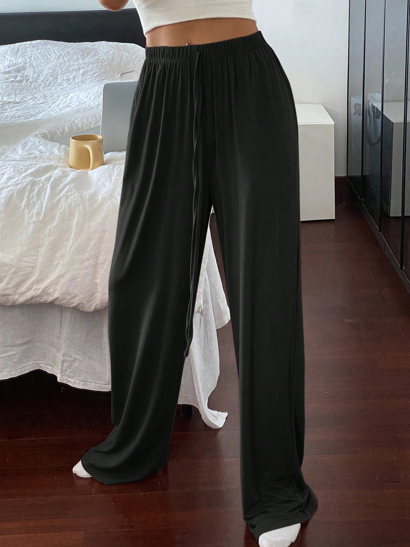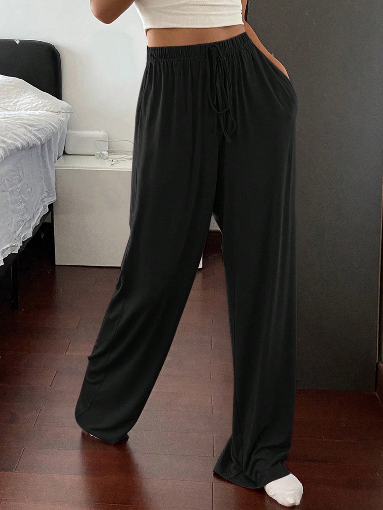 Livesso Women's Solid Color Simple Comfortable Relaxed Fit Straight Leg Lounge Cozy Pants