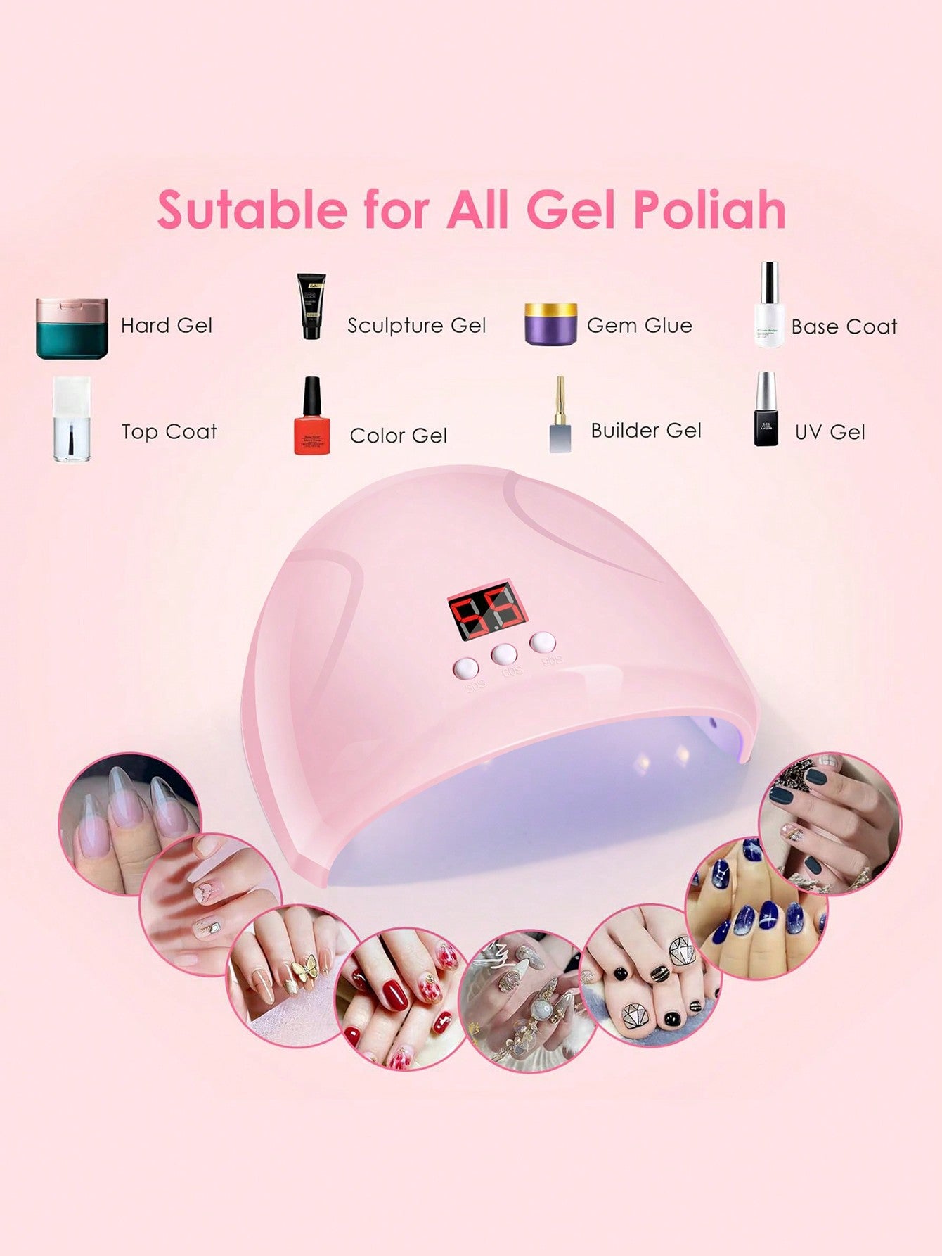 LULAA UV LED Gel Nail Polish Lamp Professional Nail Dryer Plastic Shell Gel Curing Light Quick Drying Gel Nail Polish Oven Portable Auto-Sensing Salon And Home Use Nail Art Dryer
