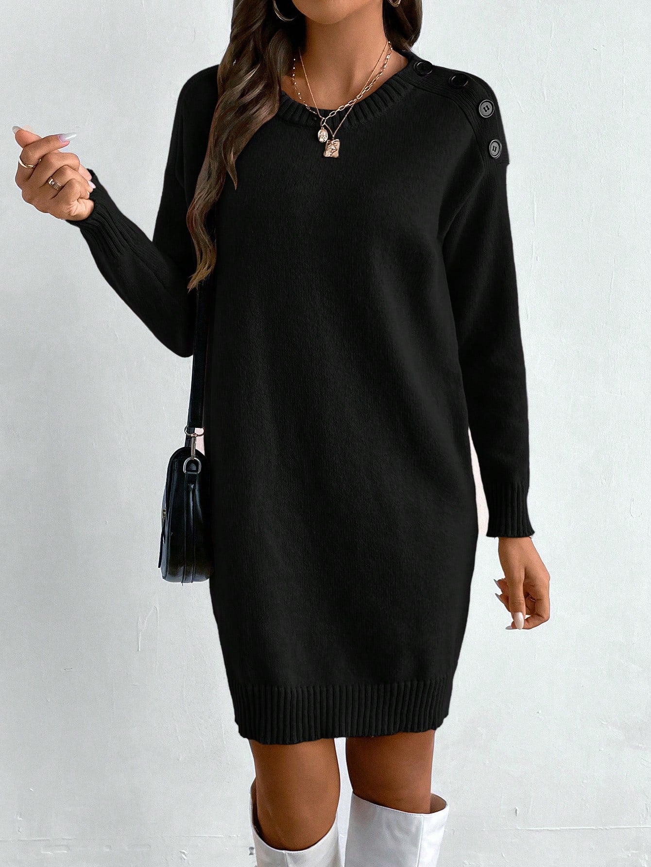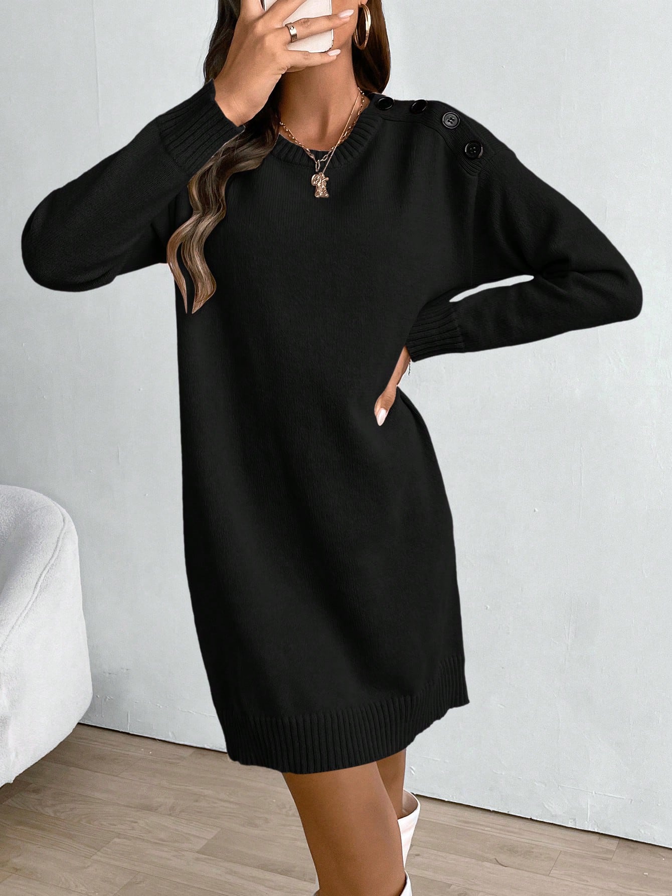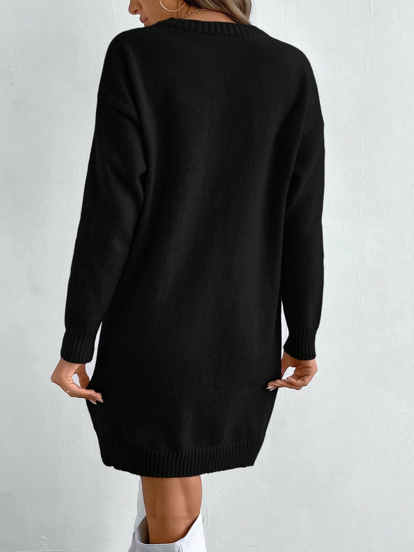LUNE 1pc Women Solid Color Crew Neck Long Sleeve Loose Casual Sweater Dress