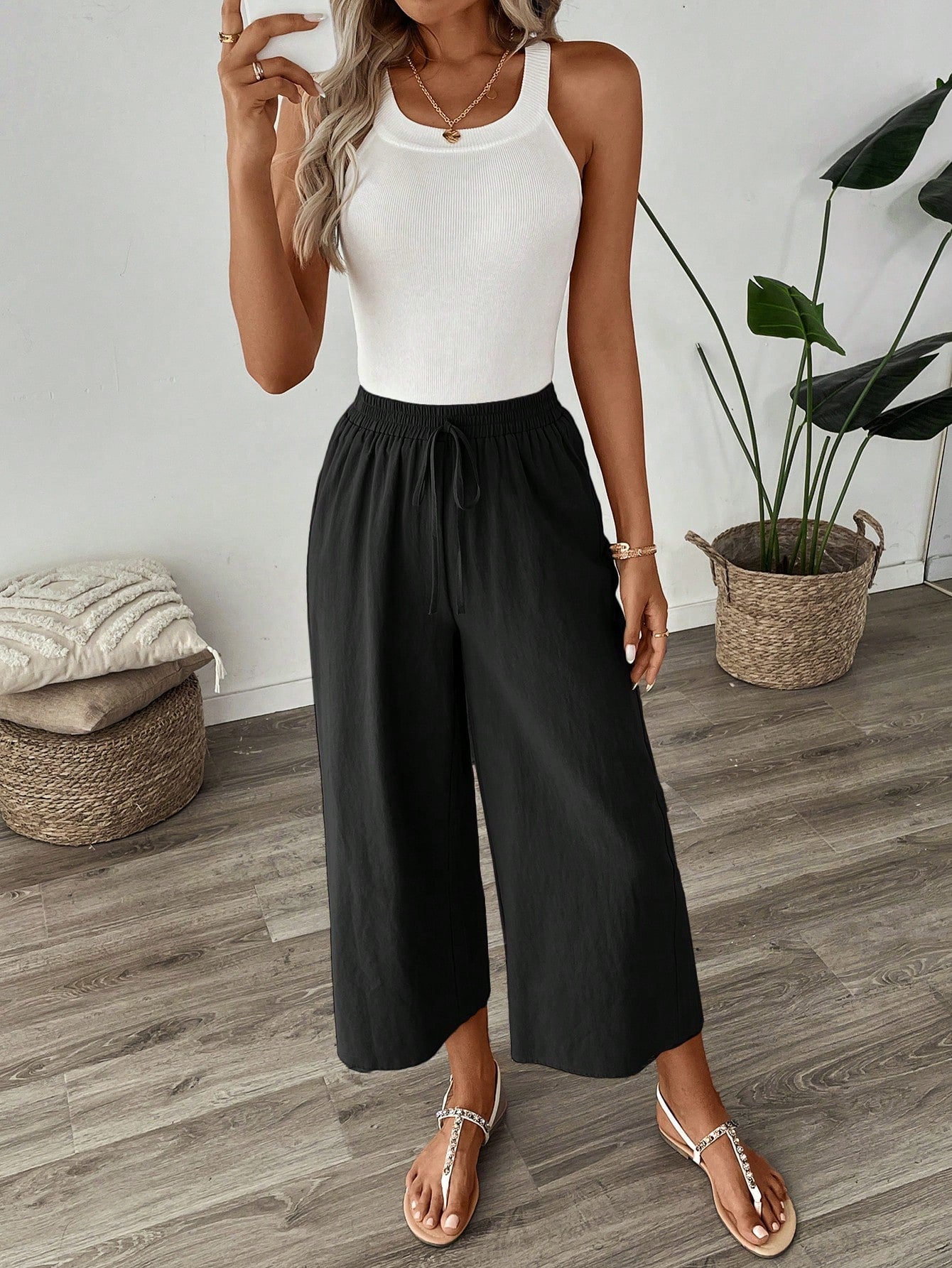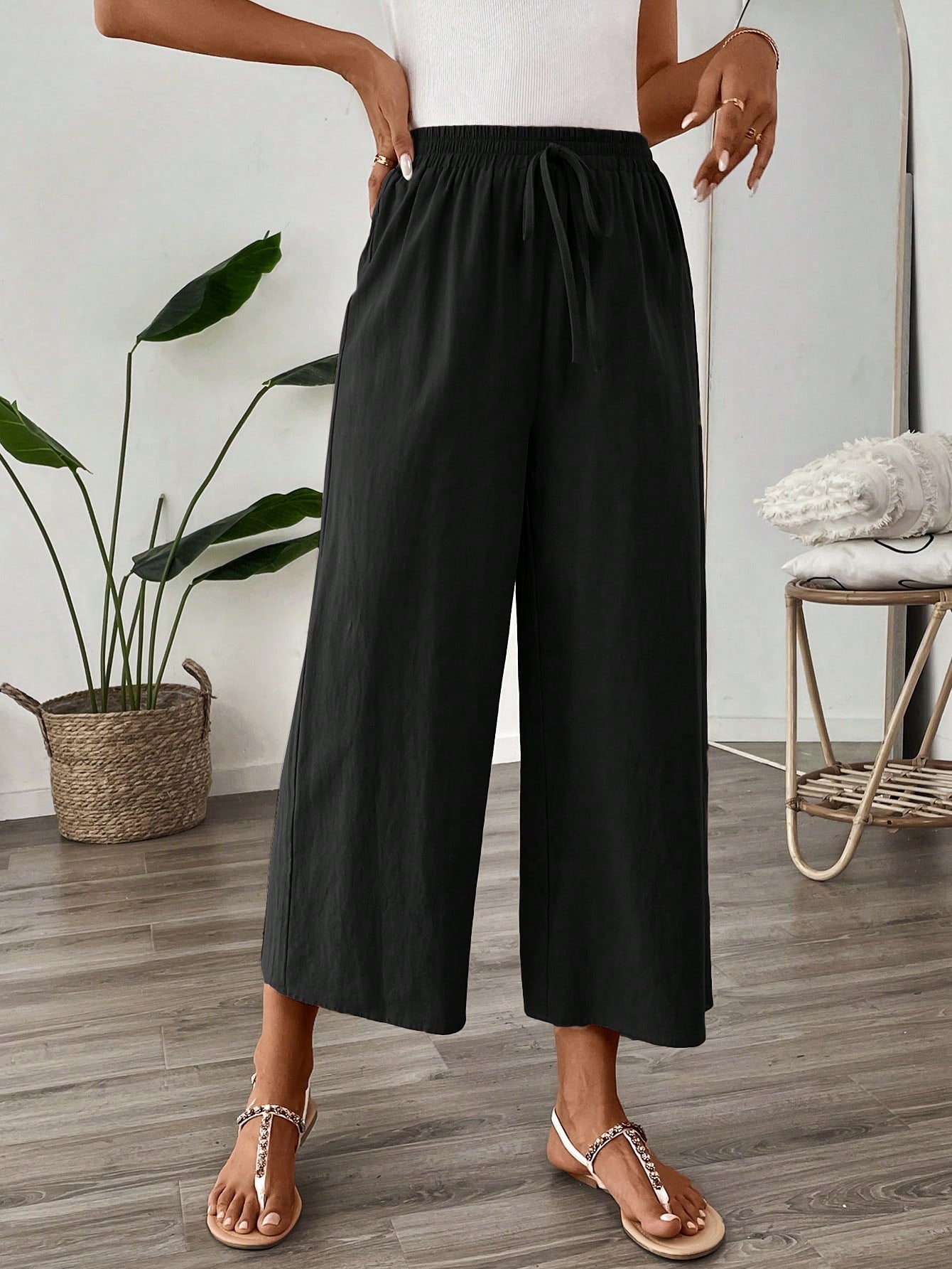 LUNE Linen Casual Khaki Cropped Pants -Autumn Work Trousers For Women