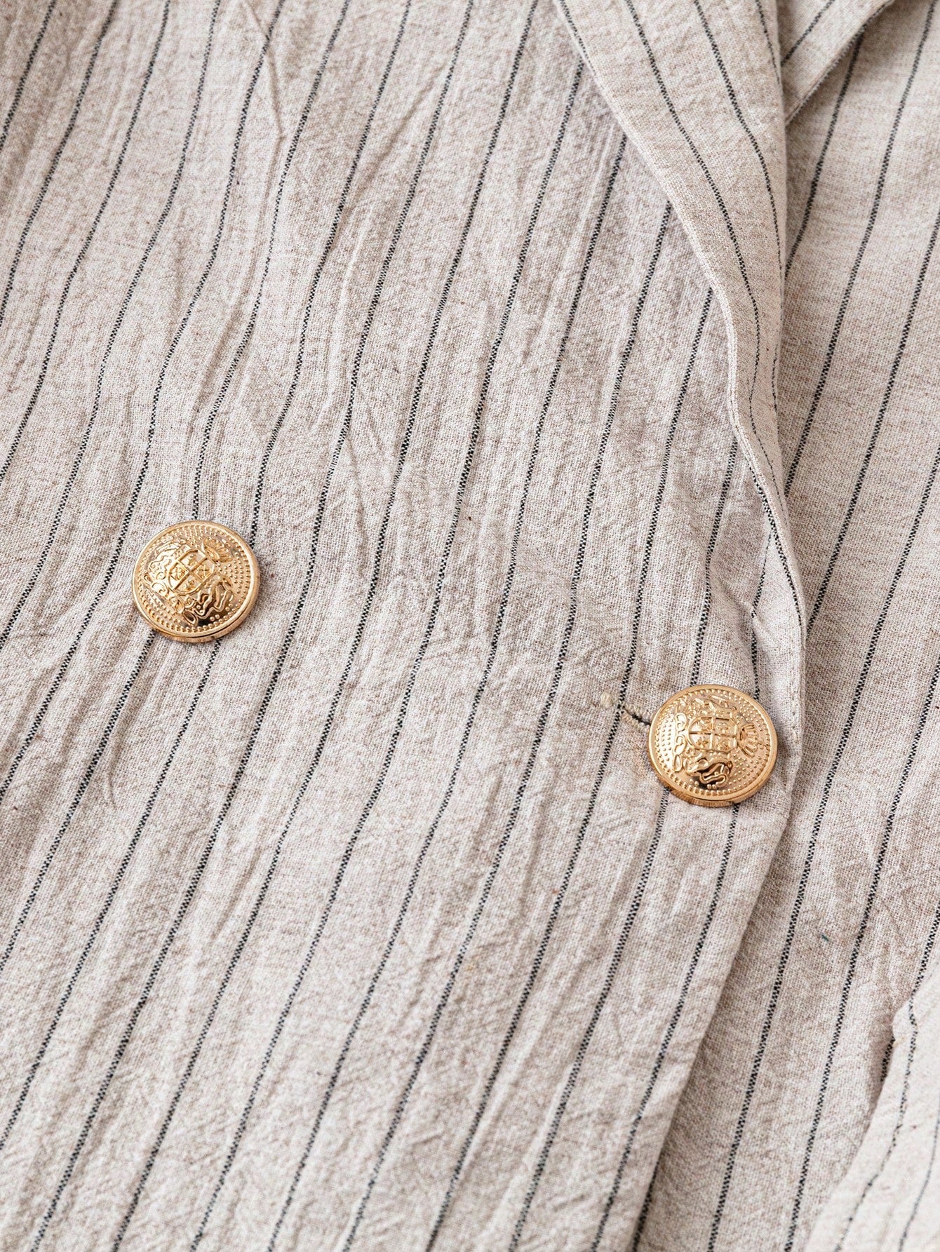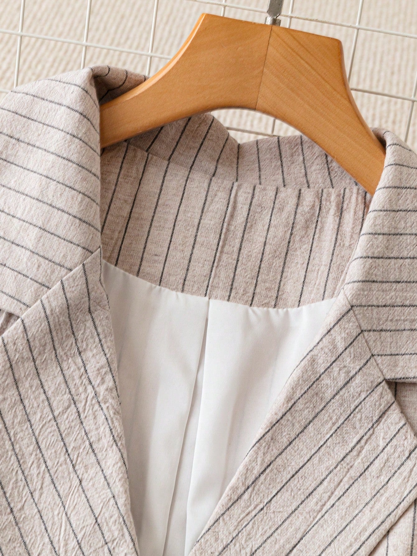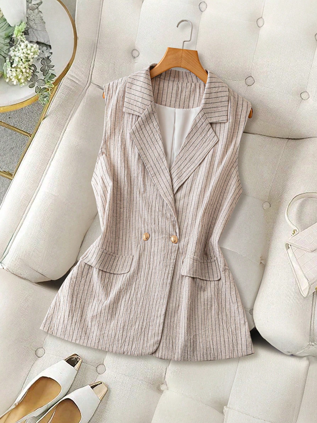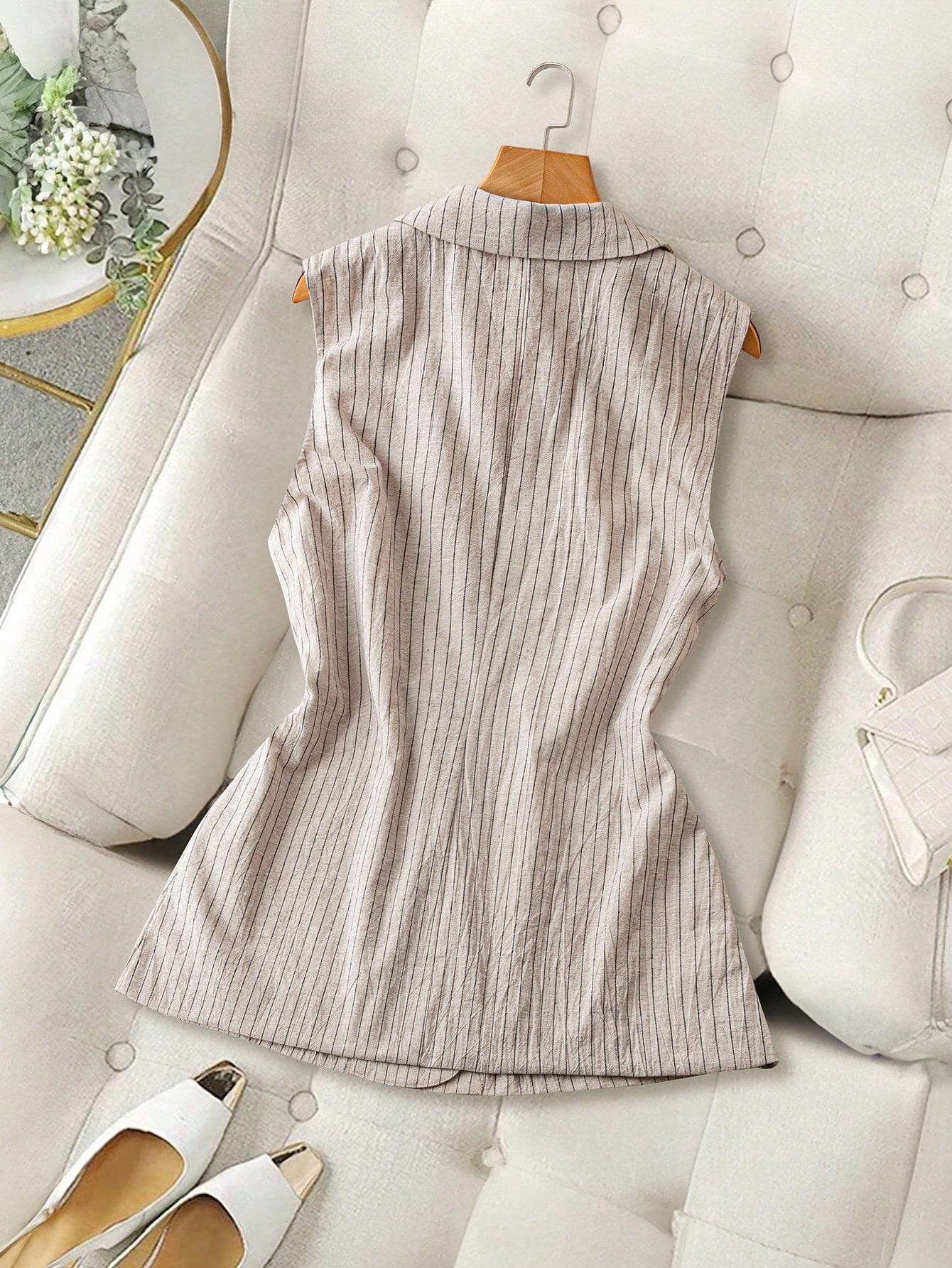 LUNE Plus Size Sleeveless Striped Casual Blazer, Minimalist Style For Everyday Wear Vacation Outfits