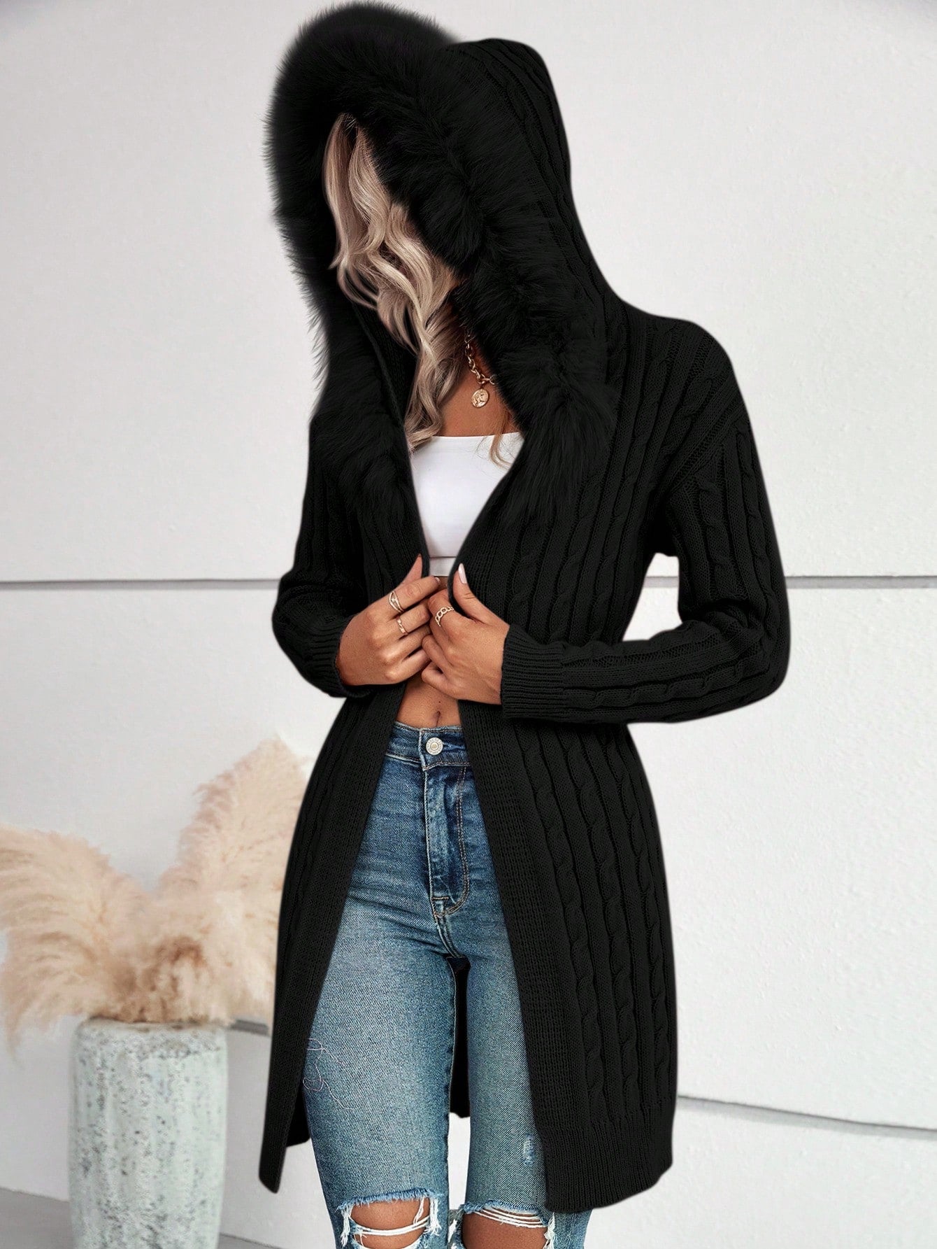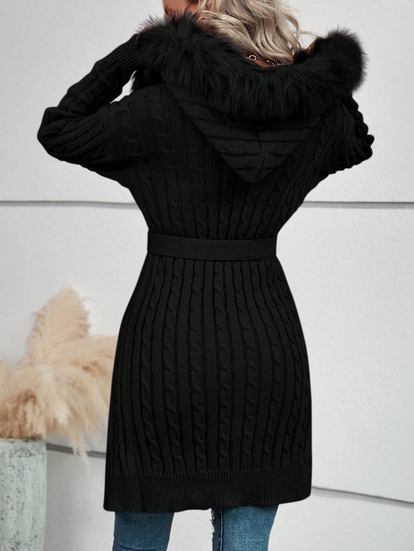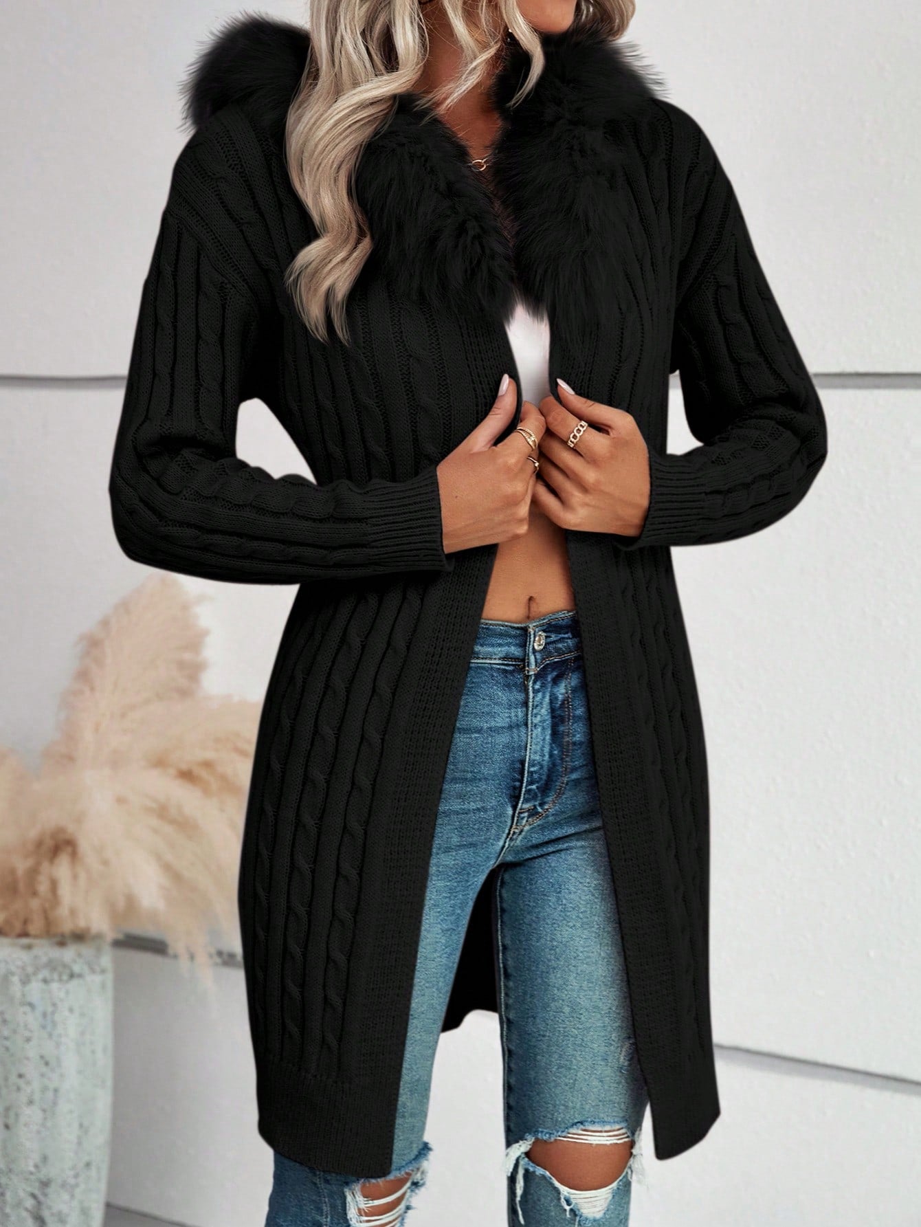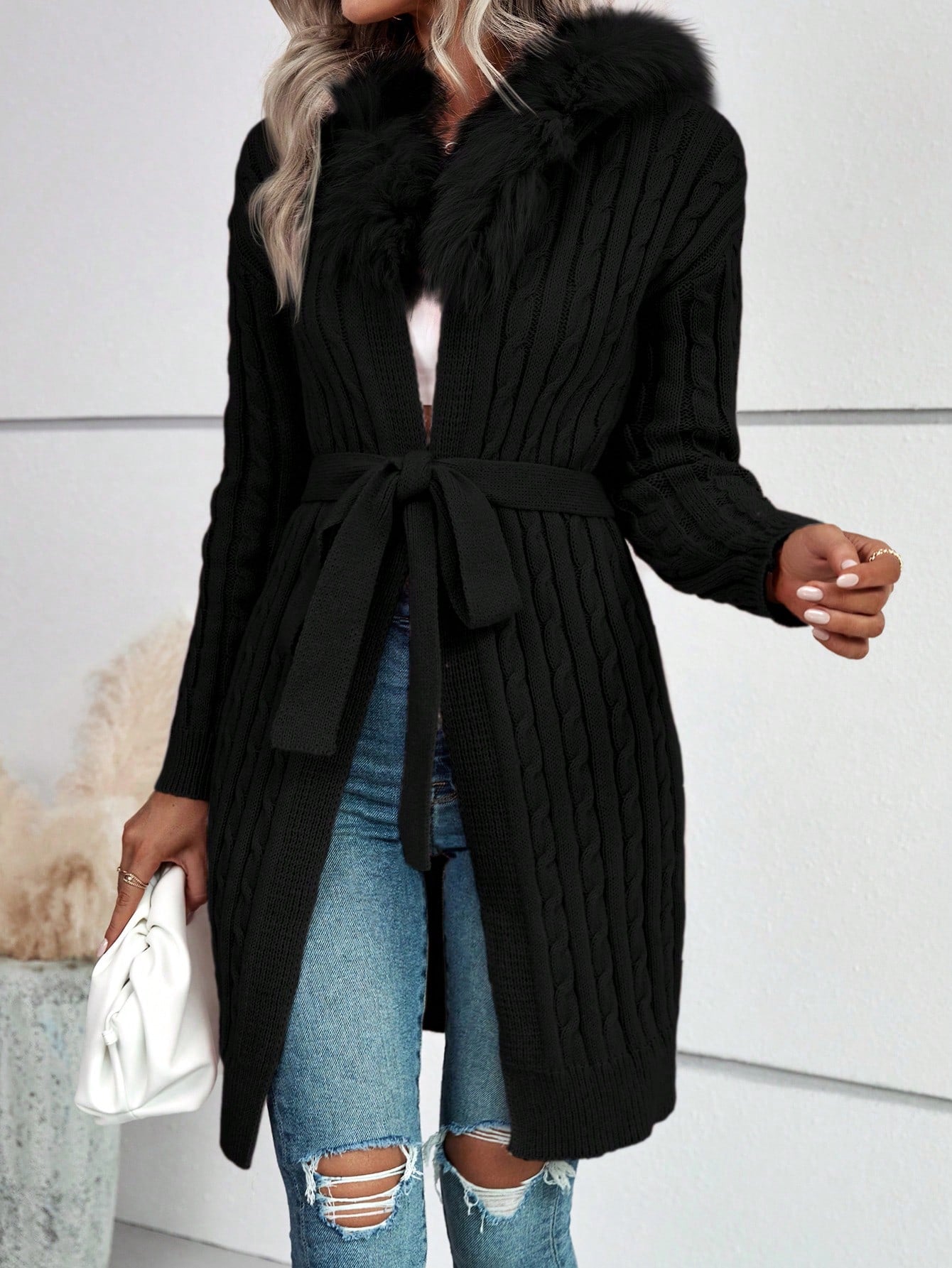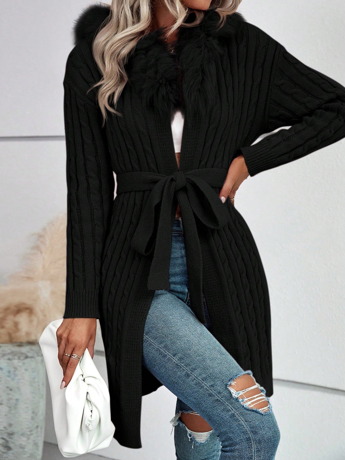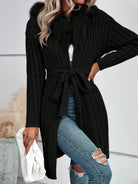 LUNE Solid Color Fluffy Knot Detail Long Sleeve Cardigan