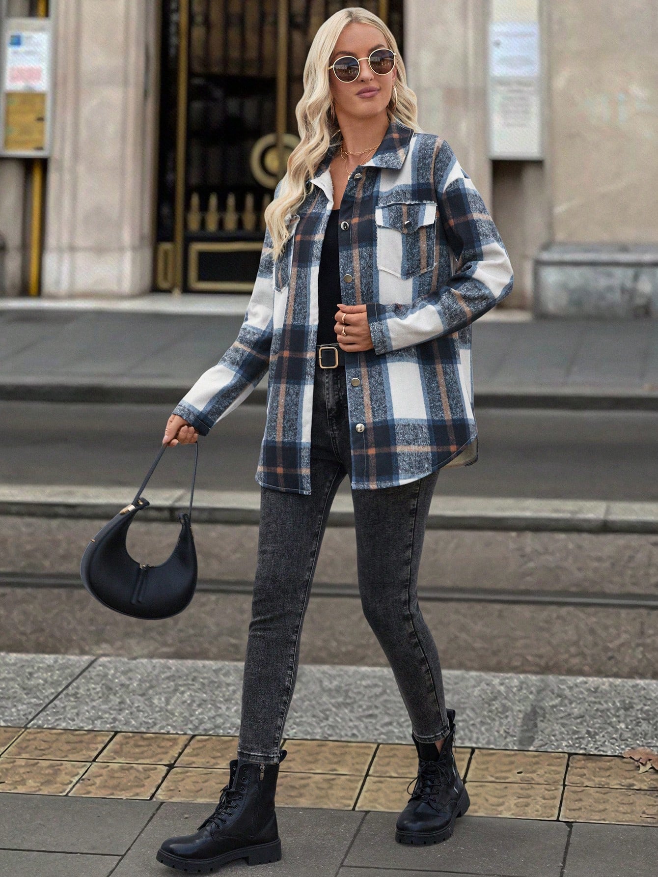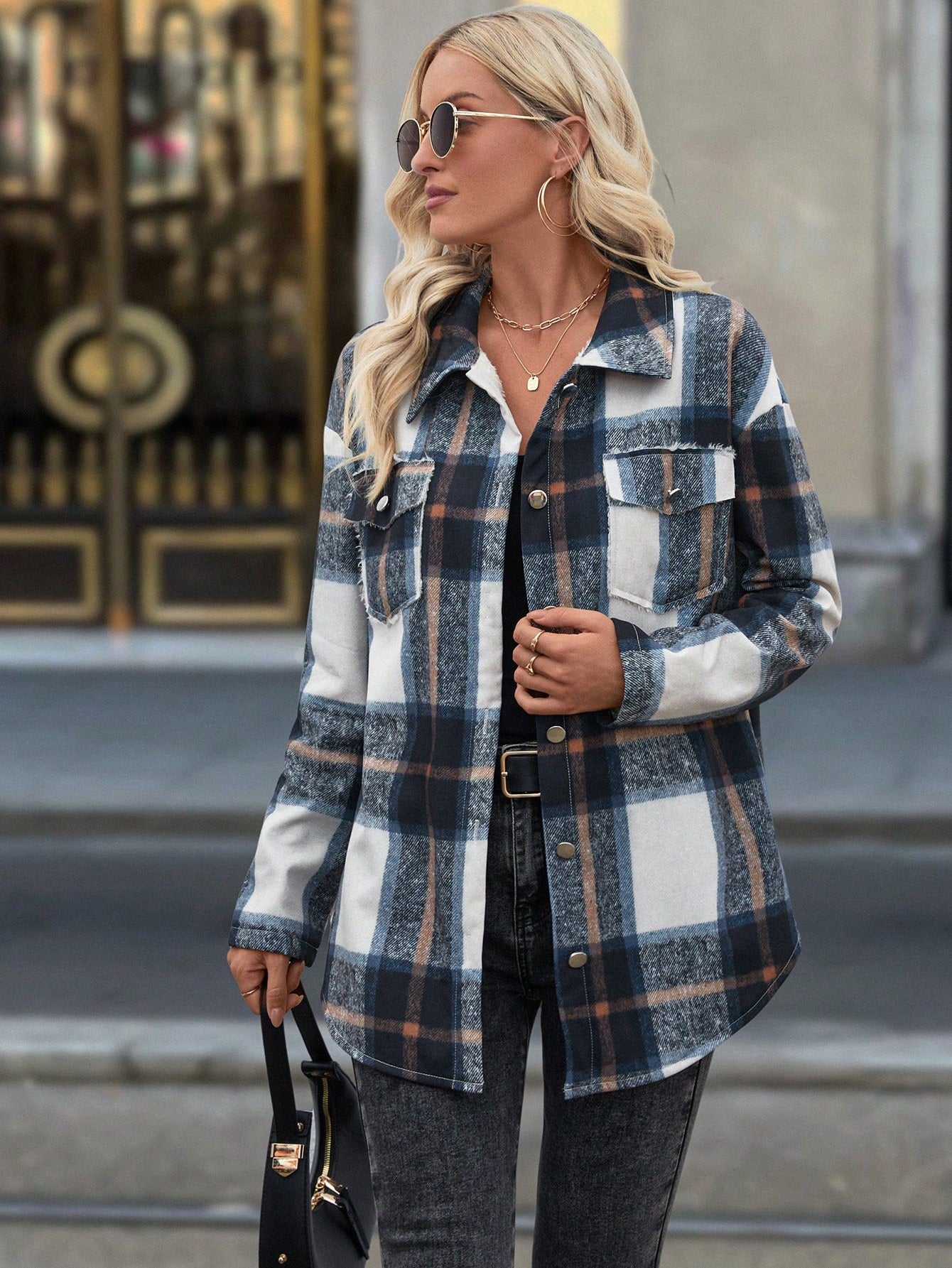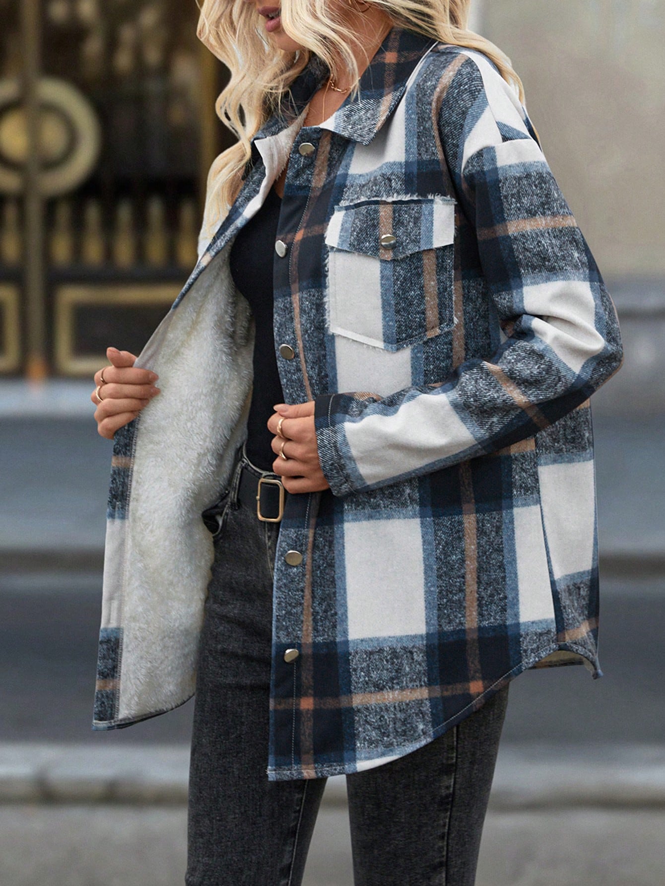 LUNE Women Plaid Long Sleeve Thermal Lined Oversized Casual Jacket For Autumn/Winter