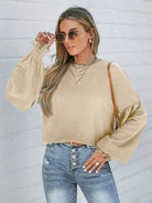 LUNE Women Plain Crew Neck Long Sleeve Casual Top
