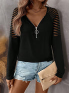 LUNE Women's Autumn Patchwork Cold-Shoulder Zip V-Neck Raglan Sleeve Casual Knit T-Shirt Fall