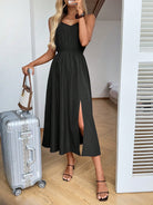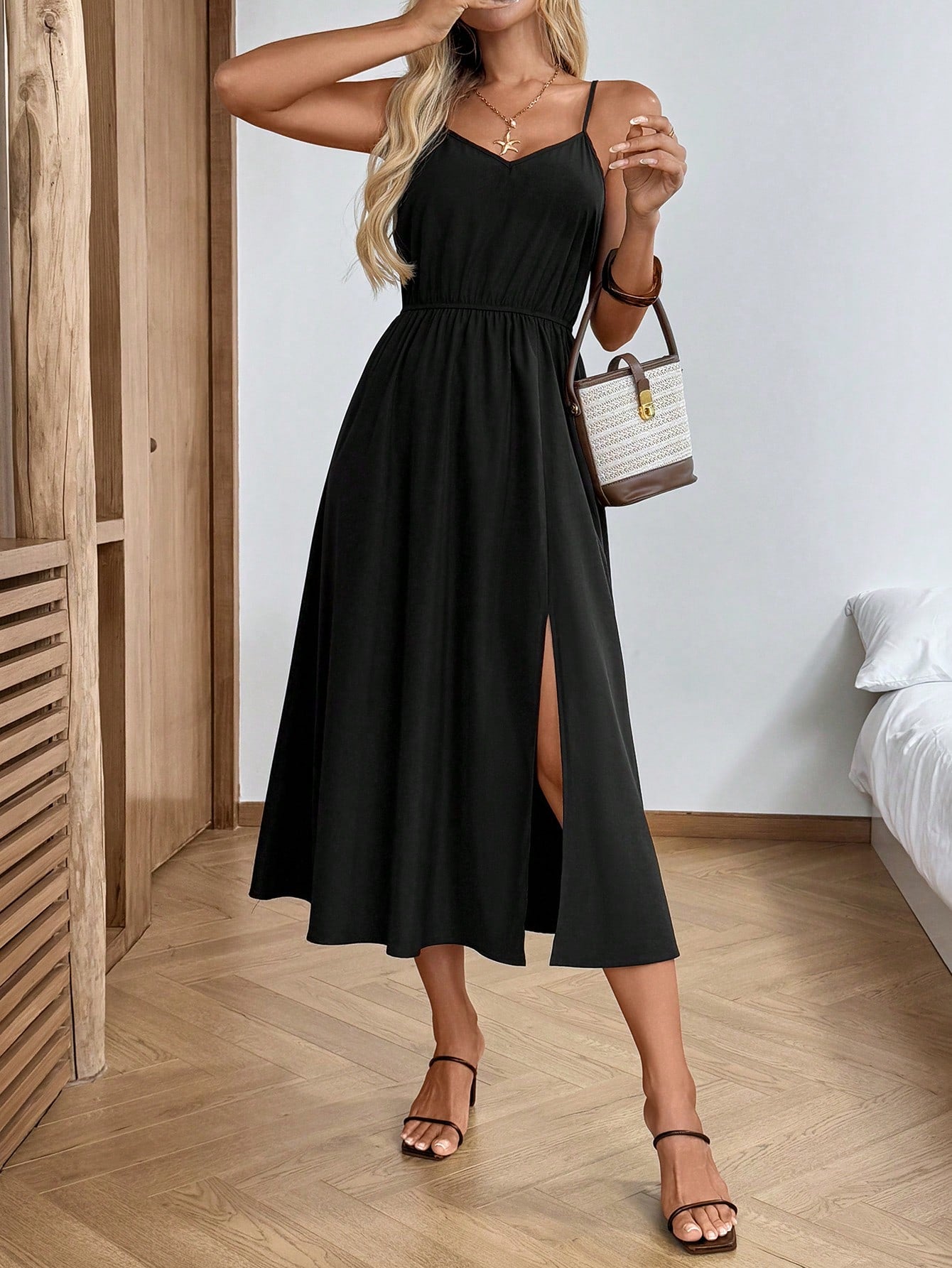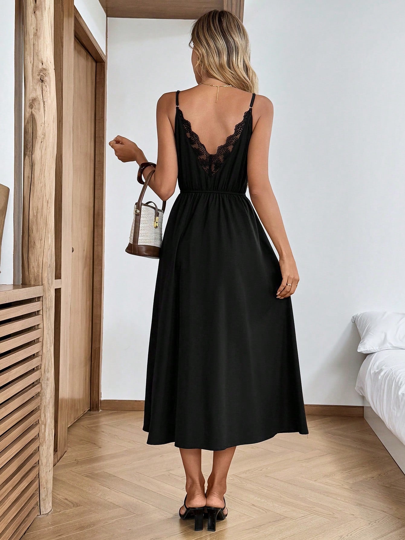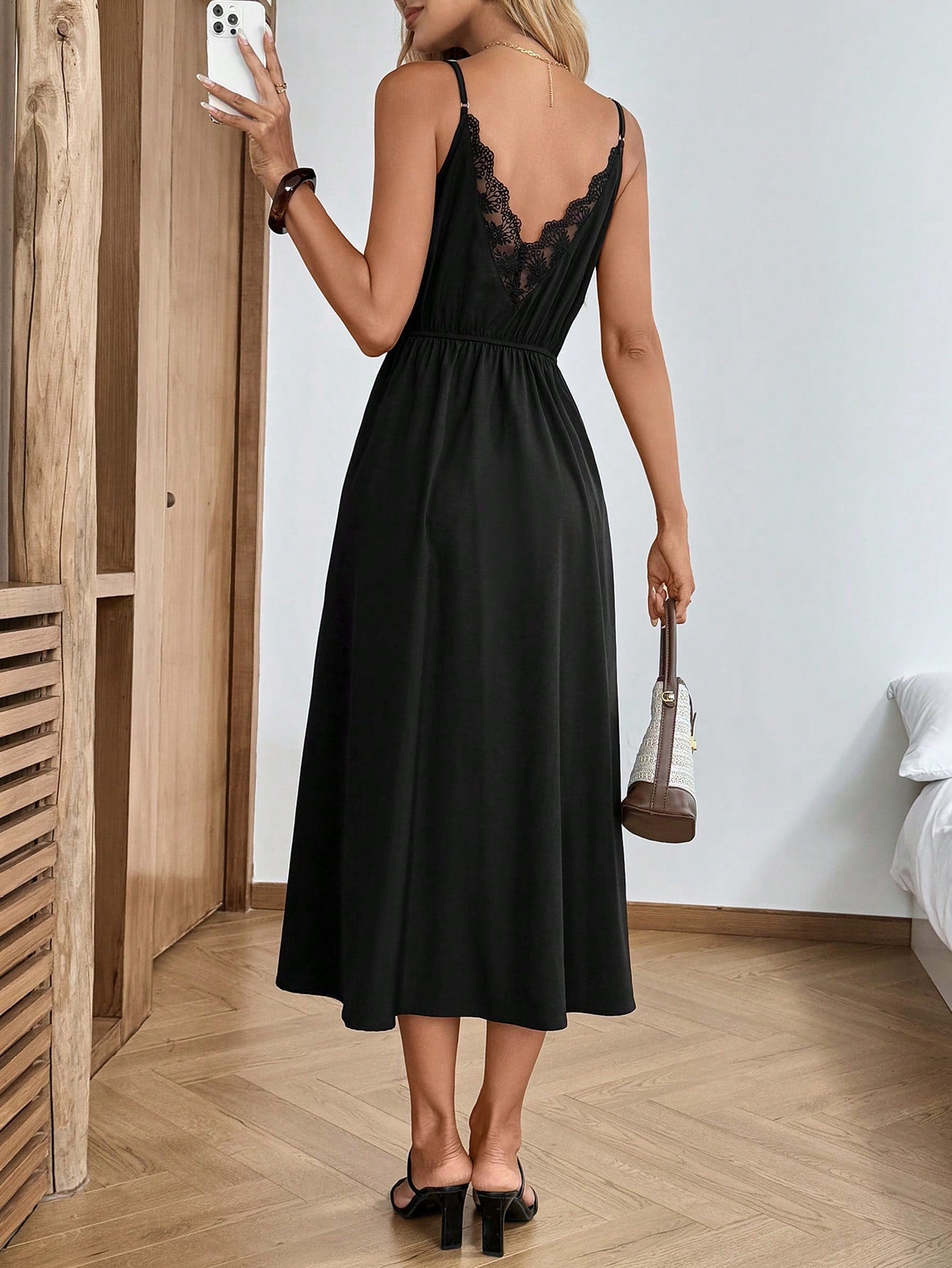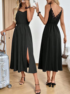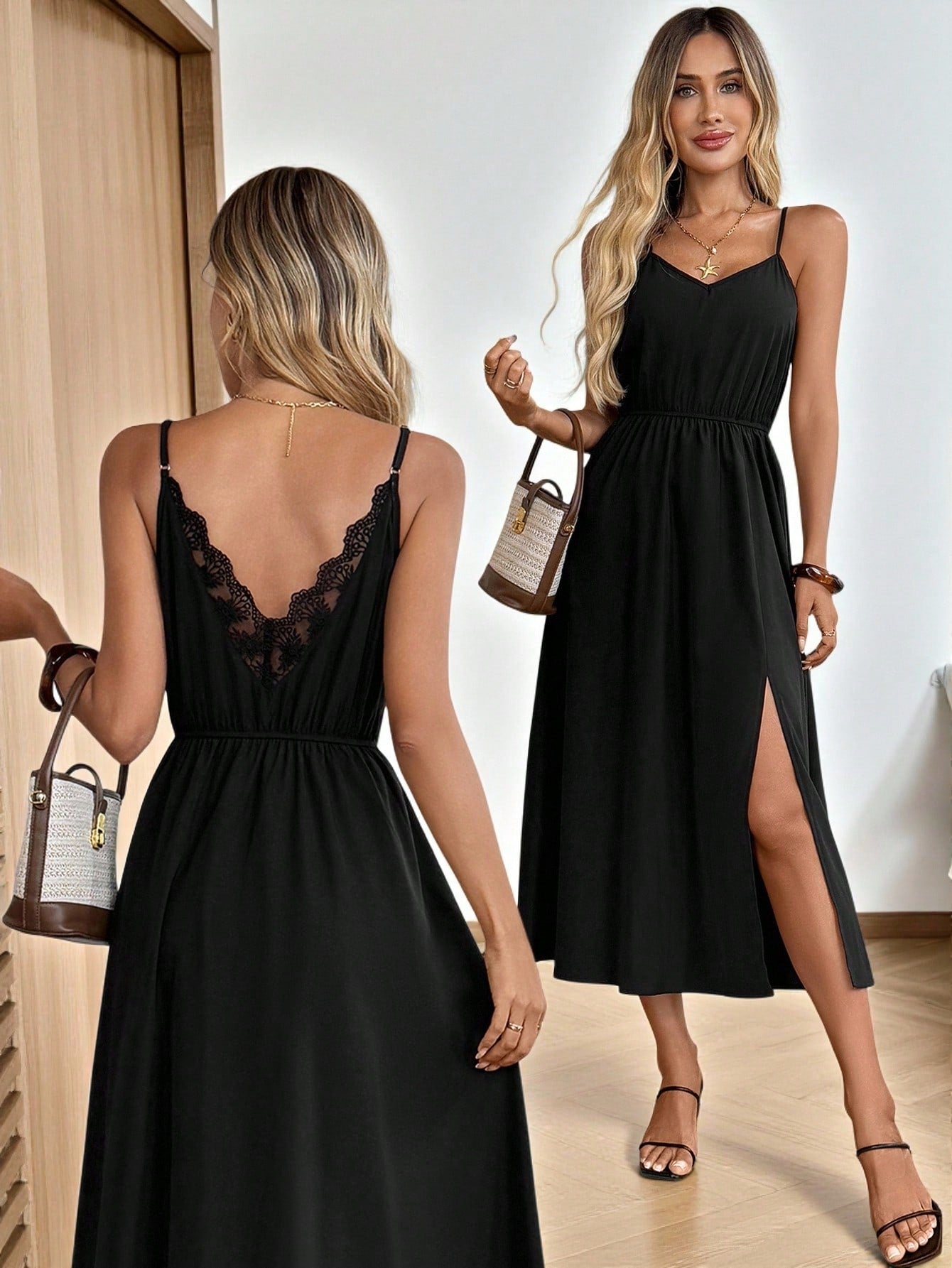 LUNE Women's Casual Solid Color Lace Patchwork Sleeveless Split Dress
