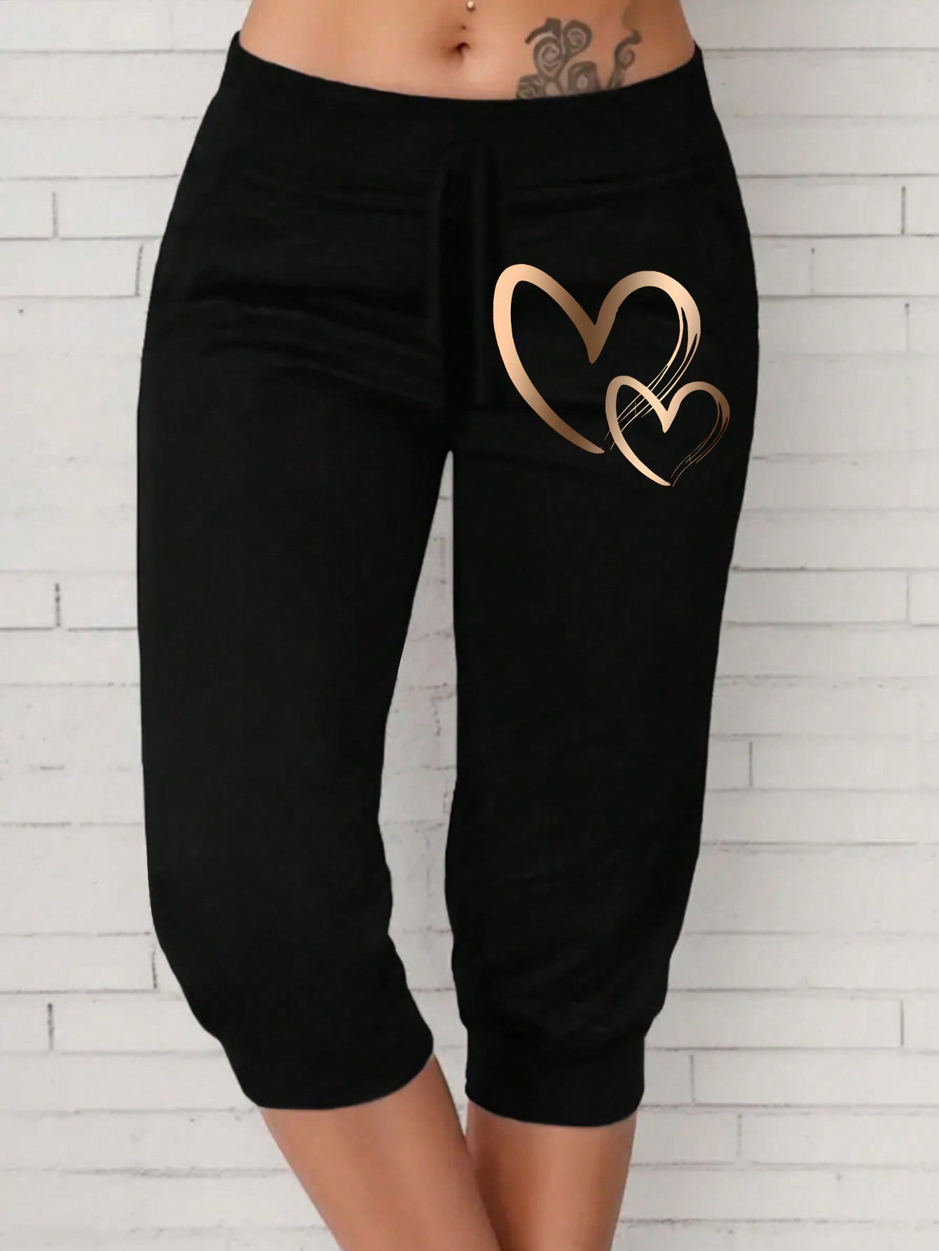 LUNE Women's Heart Print Drawstring Waist 3/4 Casual Pants