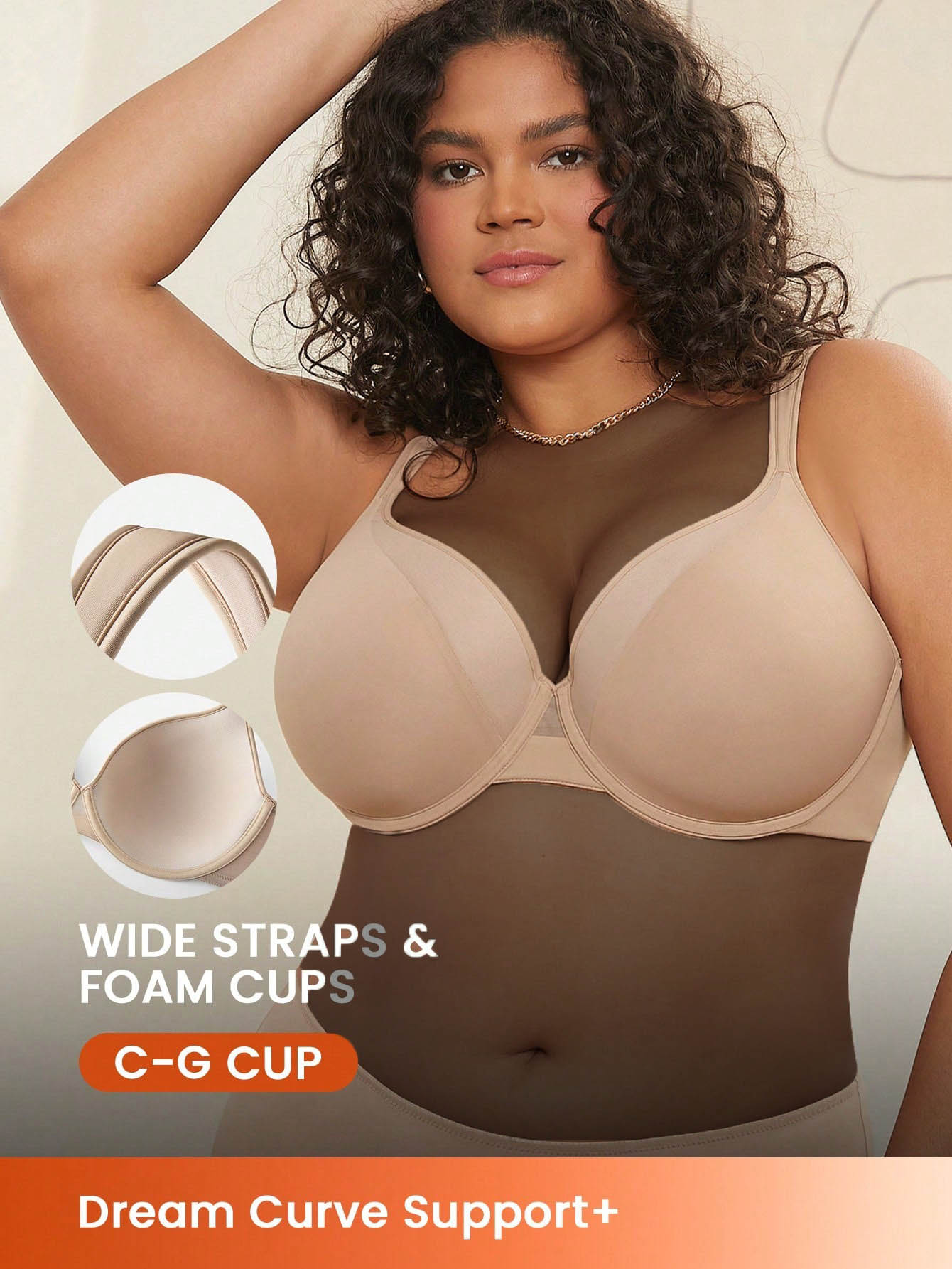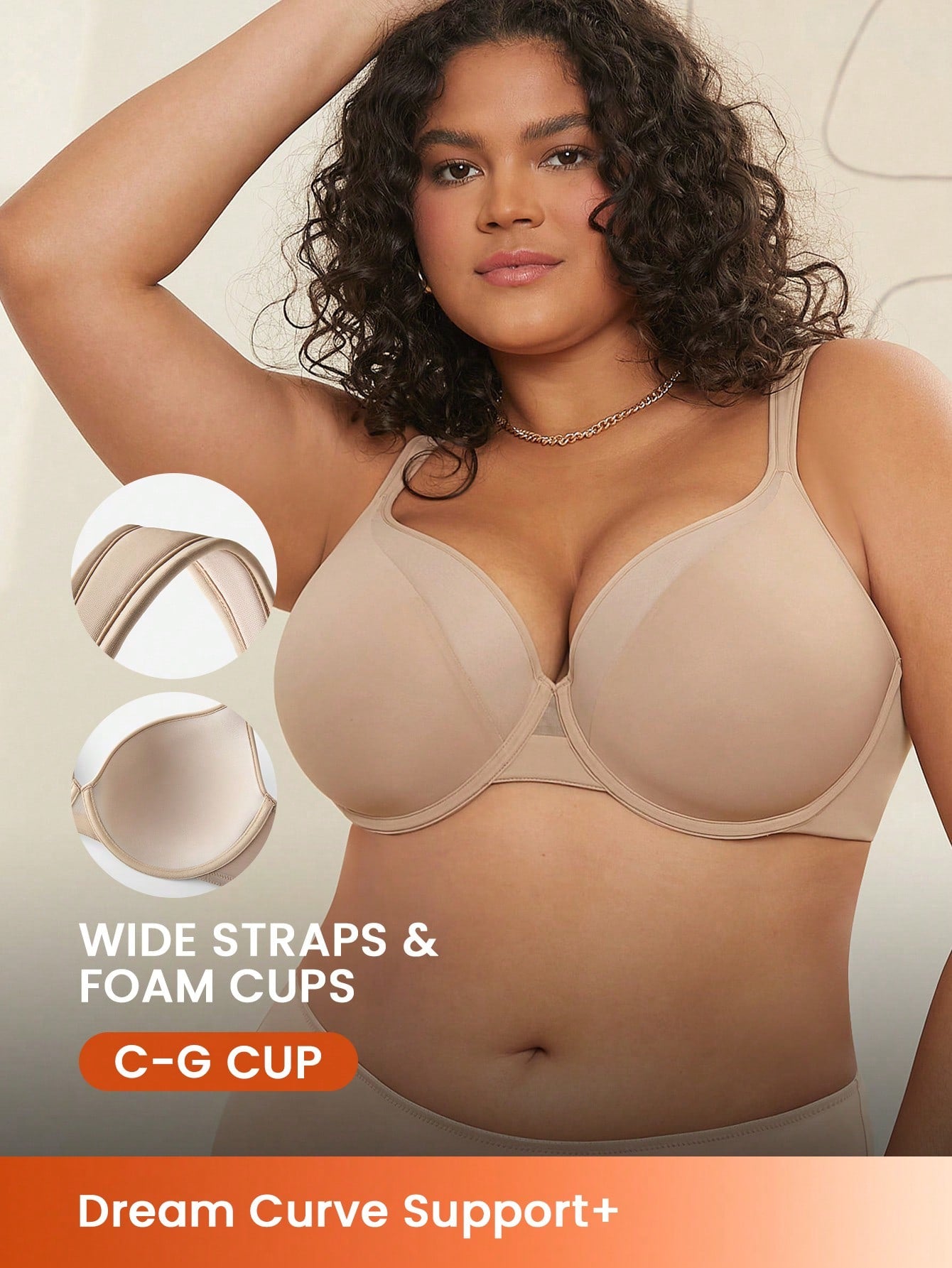 LUVLETTE Plus Dream Curve Support +Smooth Full Coverage Support Wide Strap Push Up T-Shirt Basic Bra