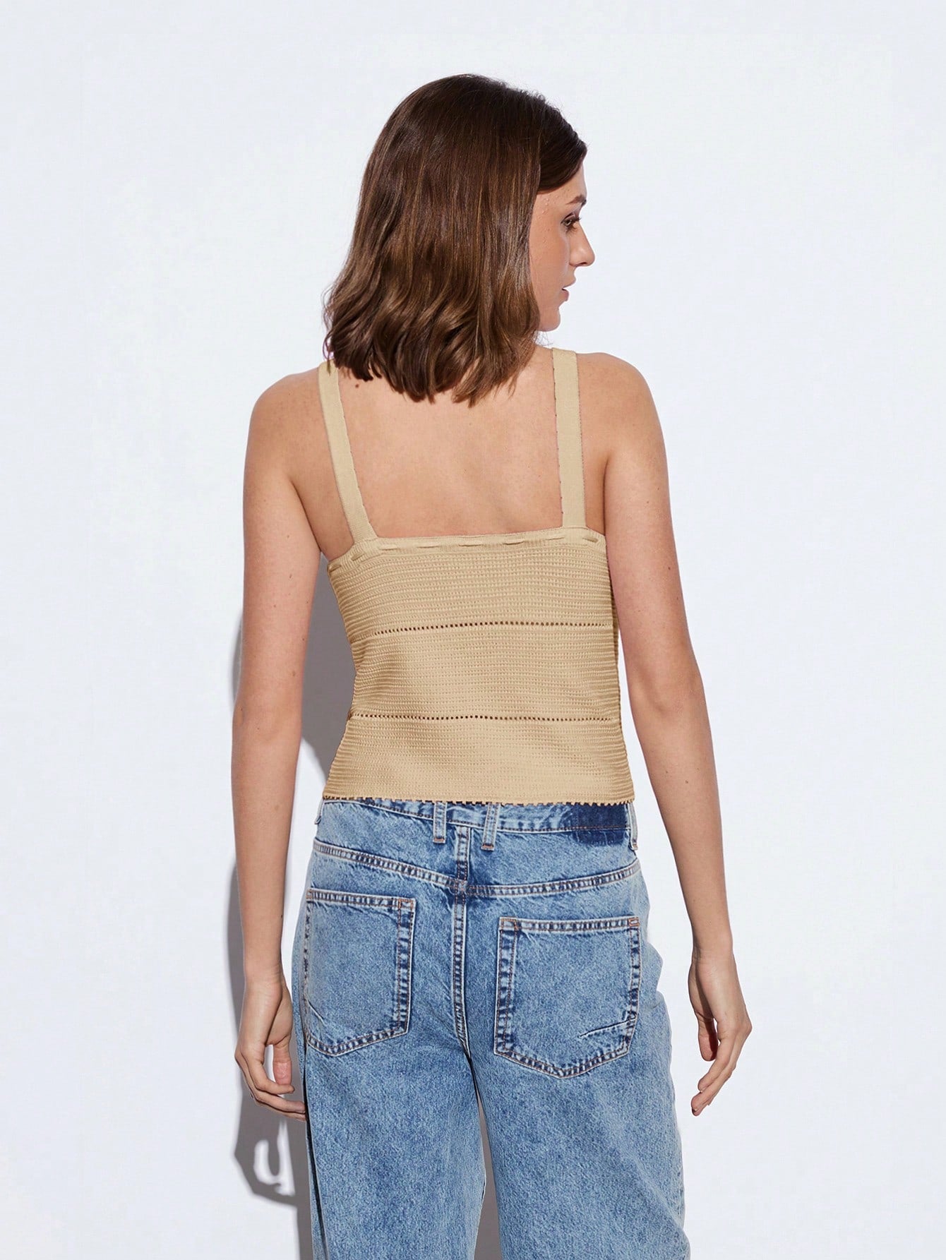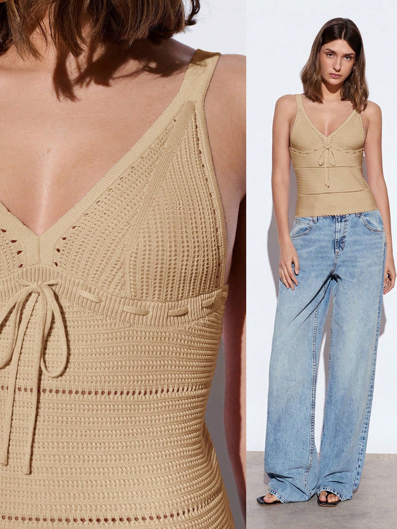 Maija Elegant Urban Modern Pink Crochet Waist Fitted Women Knitted Tank Top, Casual, Romantic, Suitable