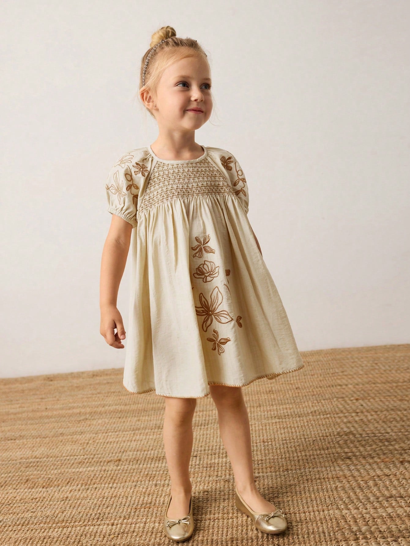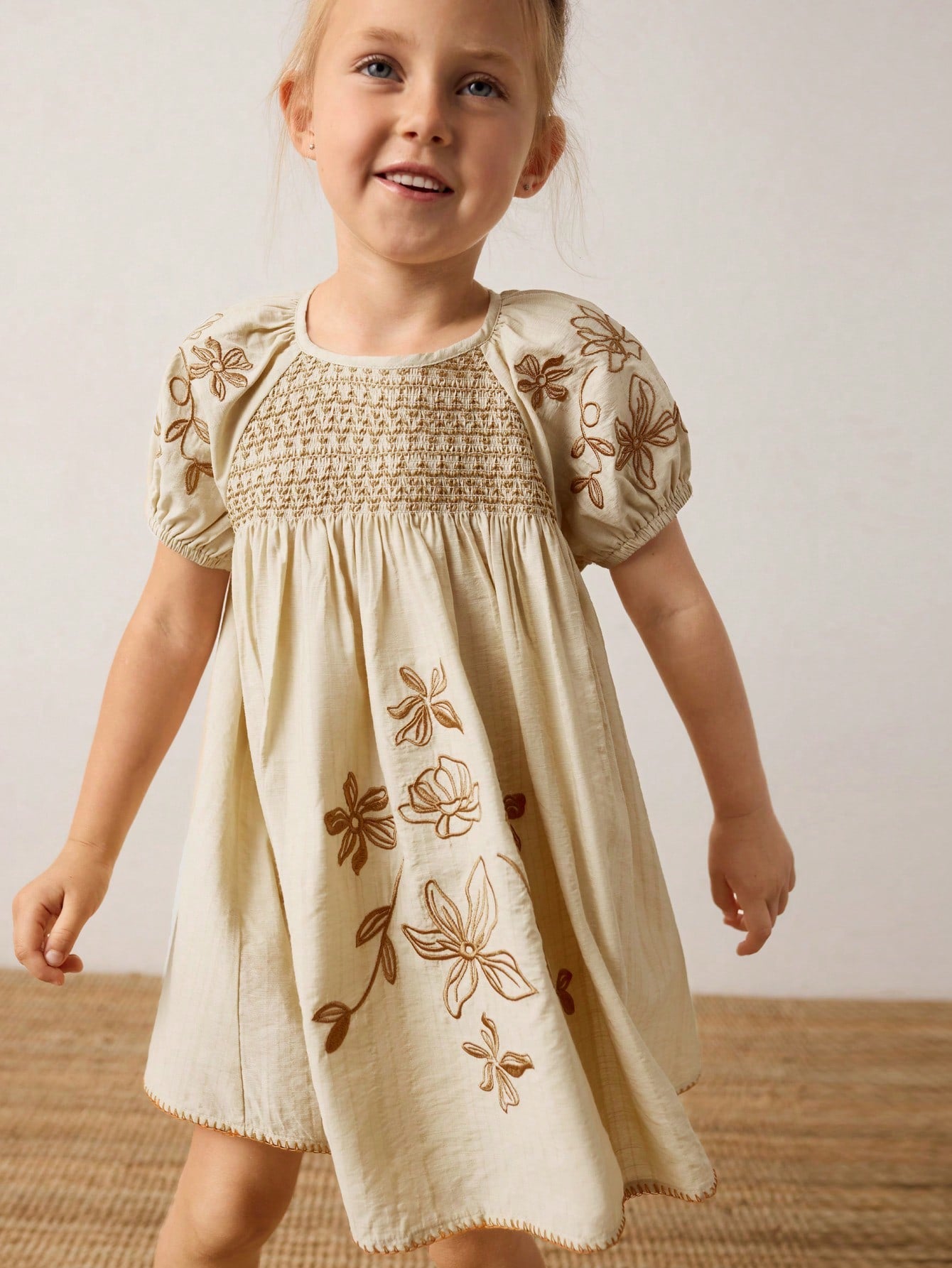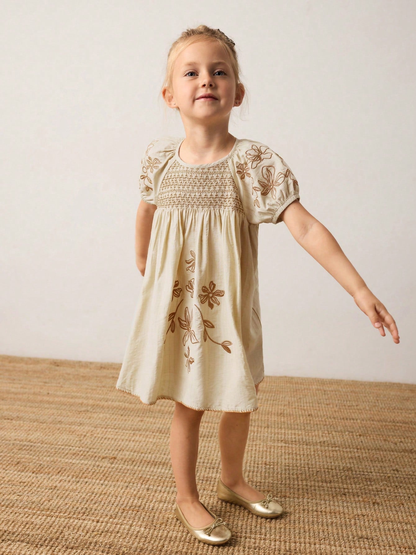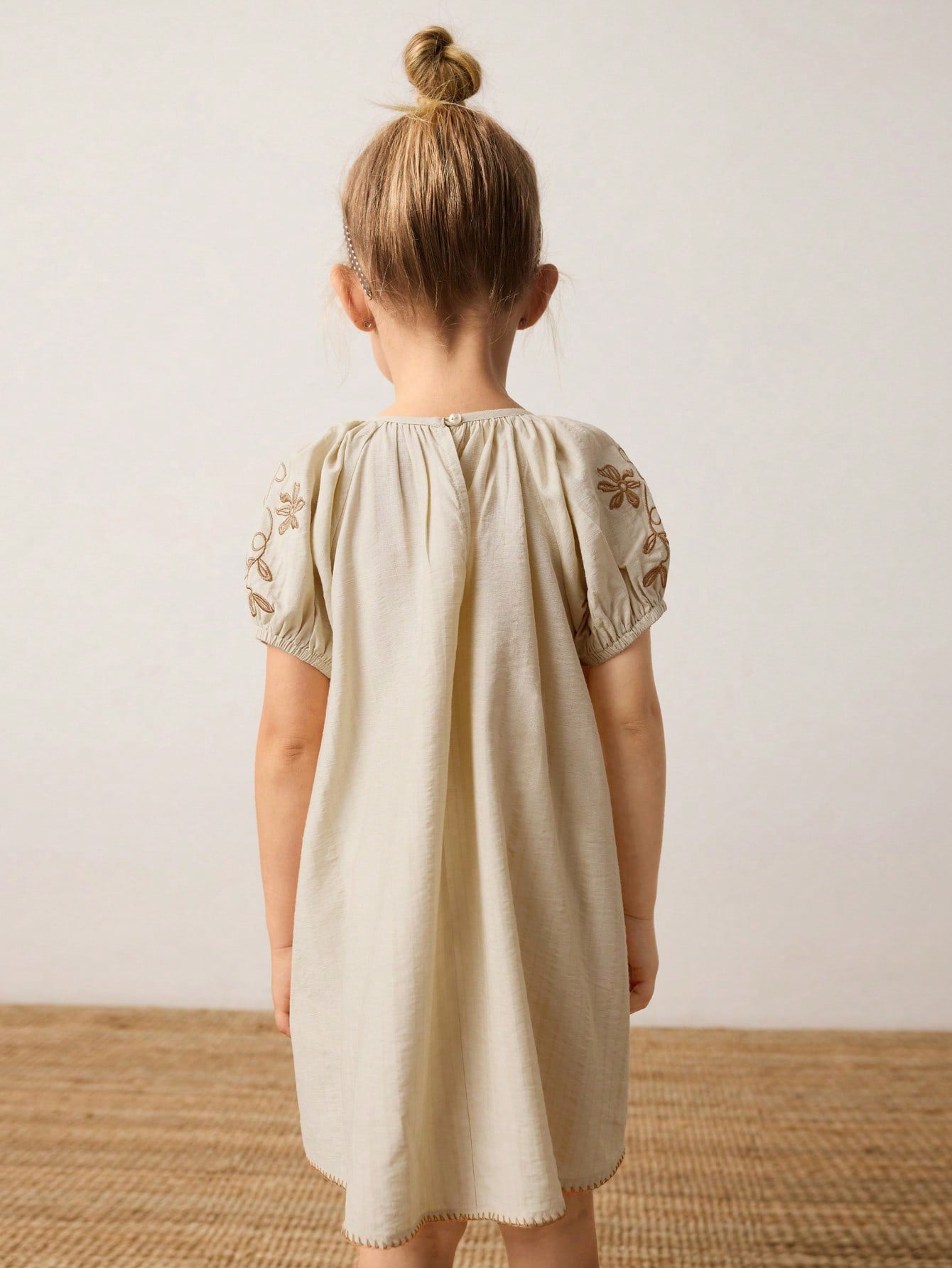 Maija Kids Maija Kids Loose Casual Flower Embroidered Shift Dress For Young Girls