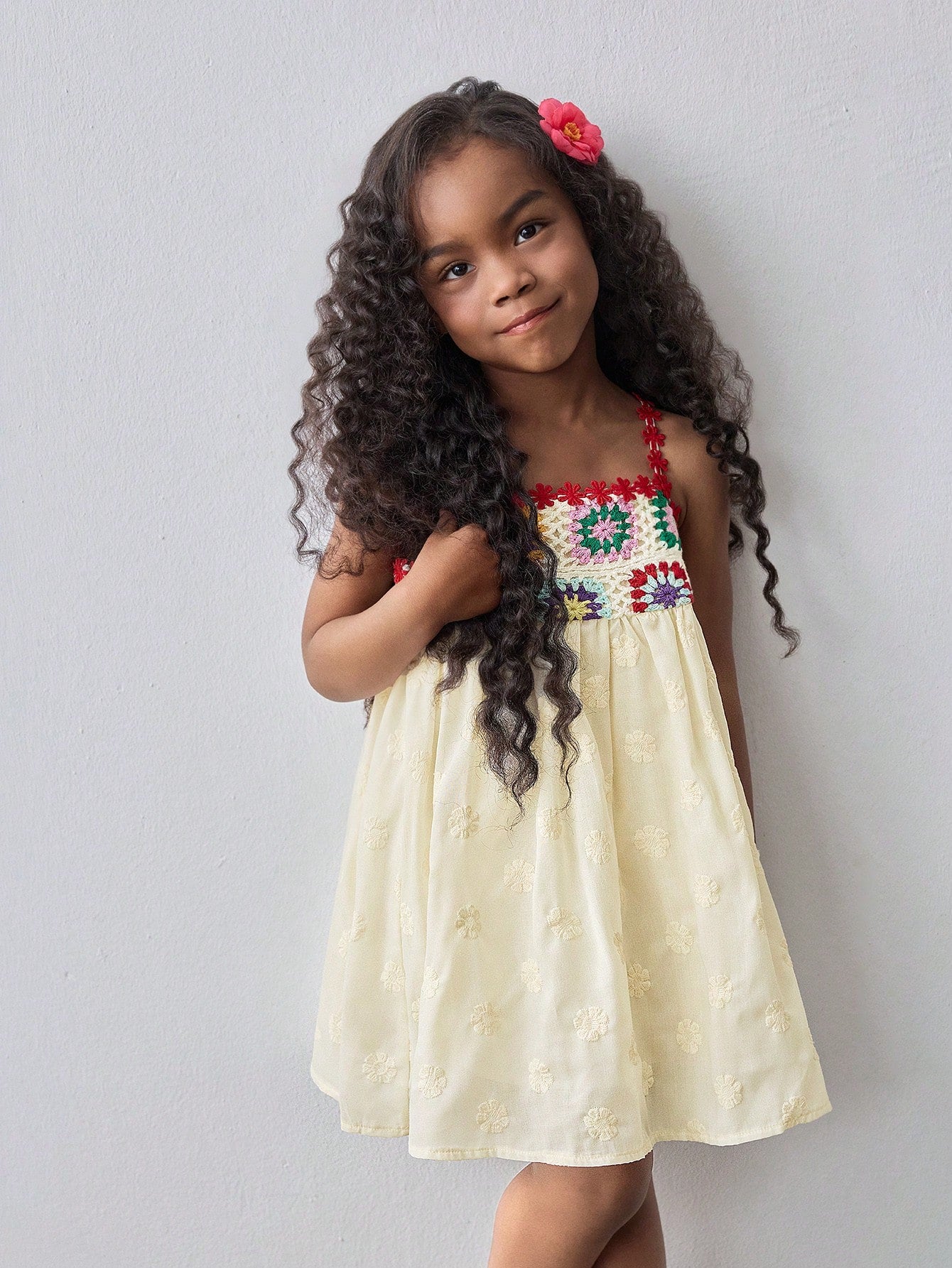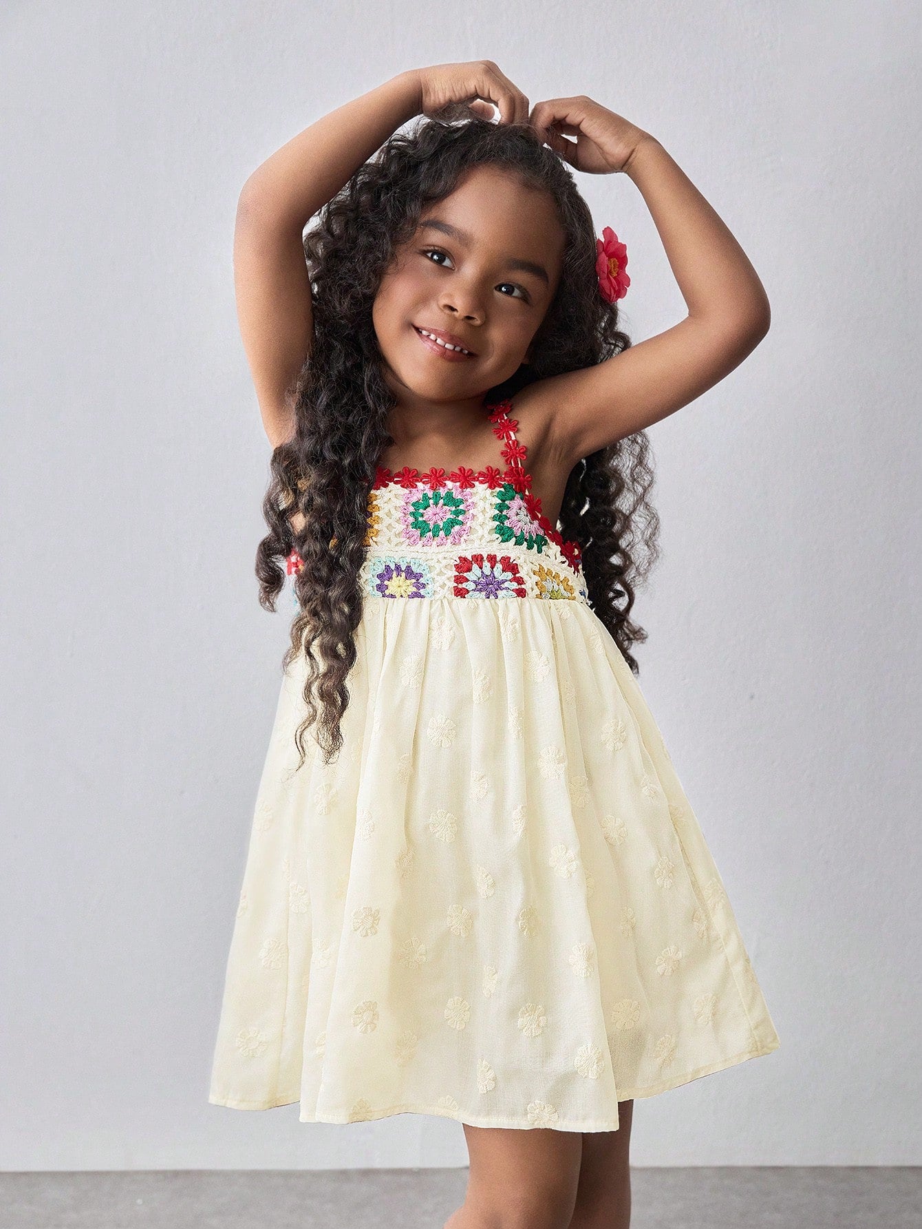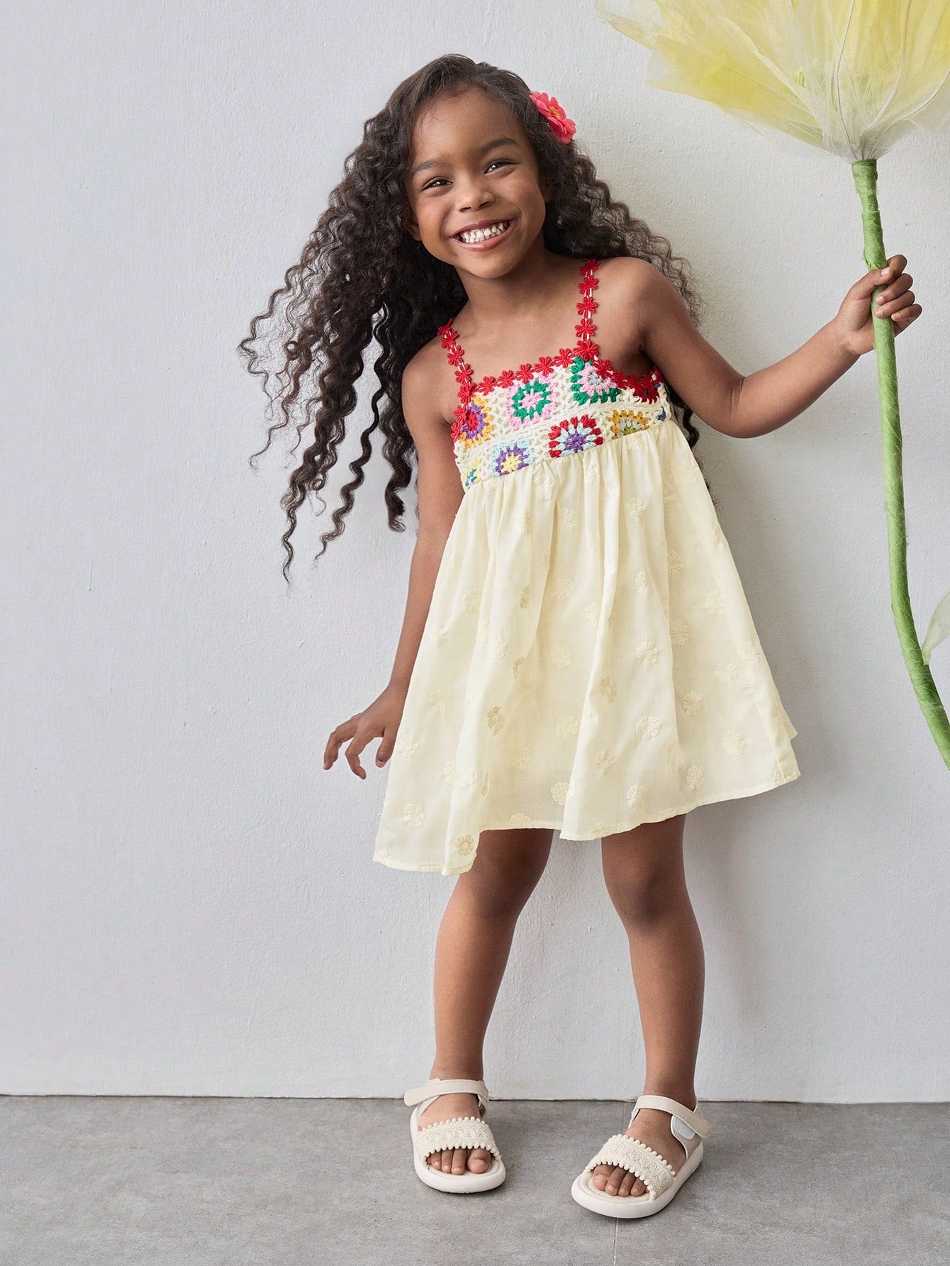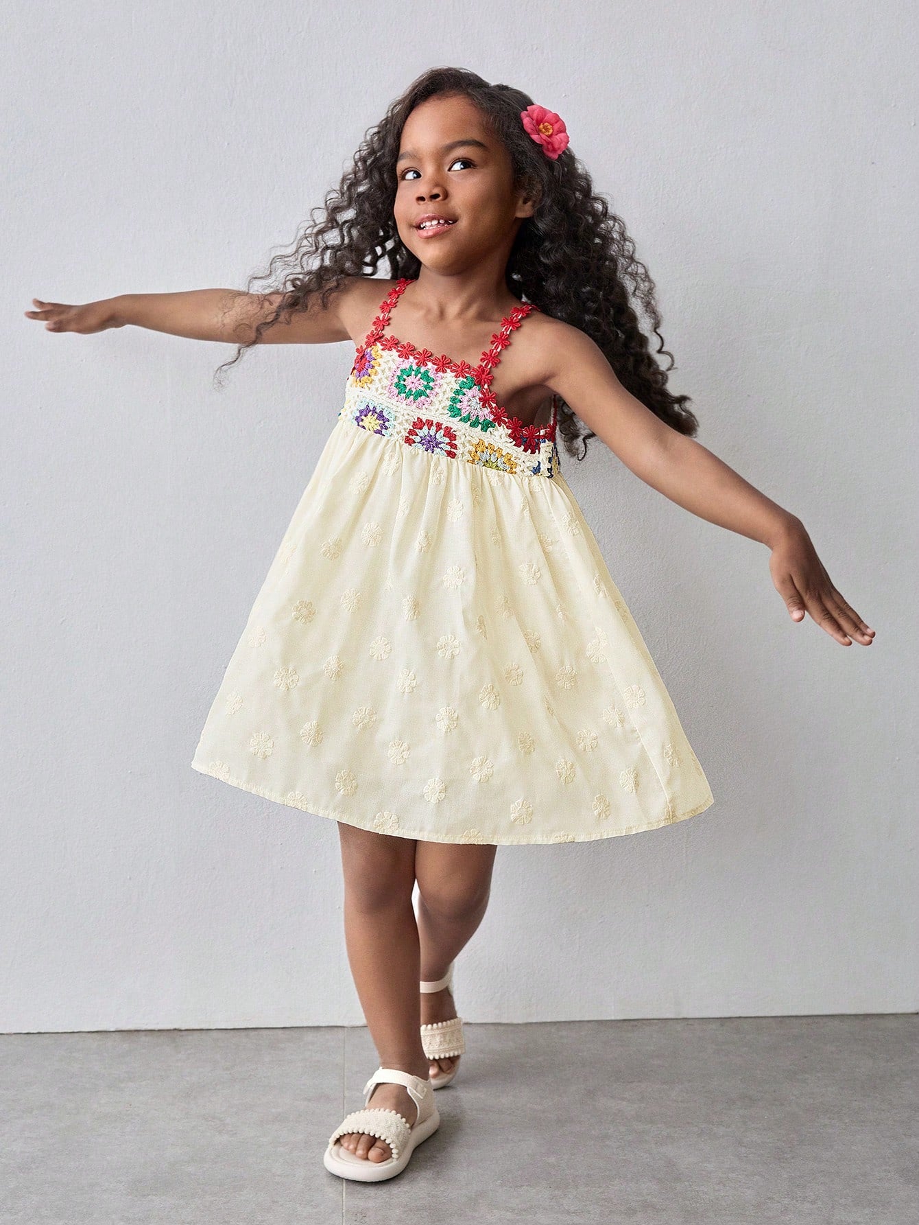 Maija Kids Maija Kids Young Girl Loose Casual Contrast Color Floral Pattern Camisole Dress