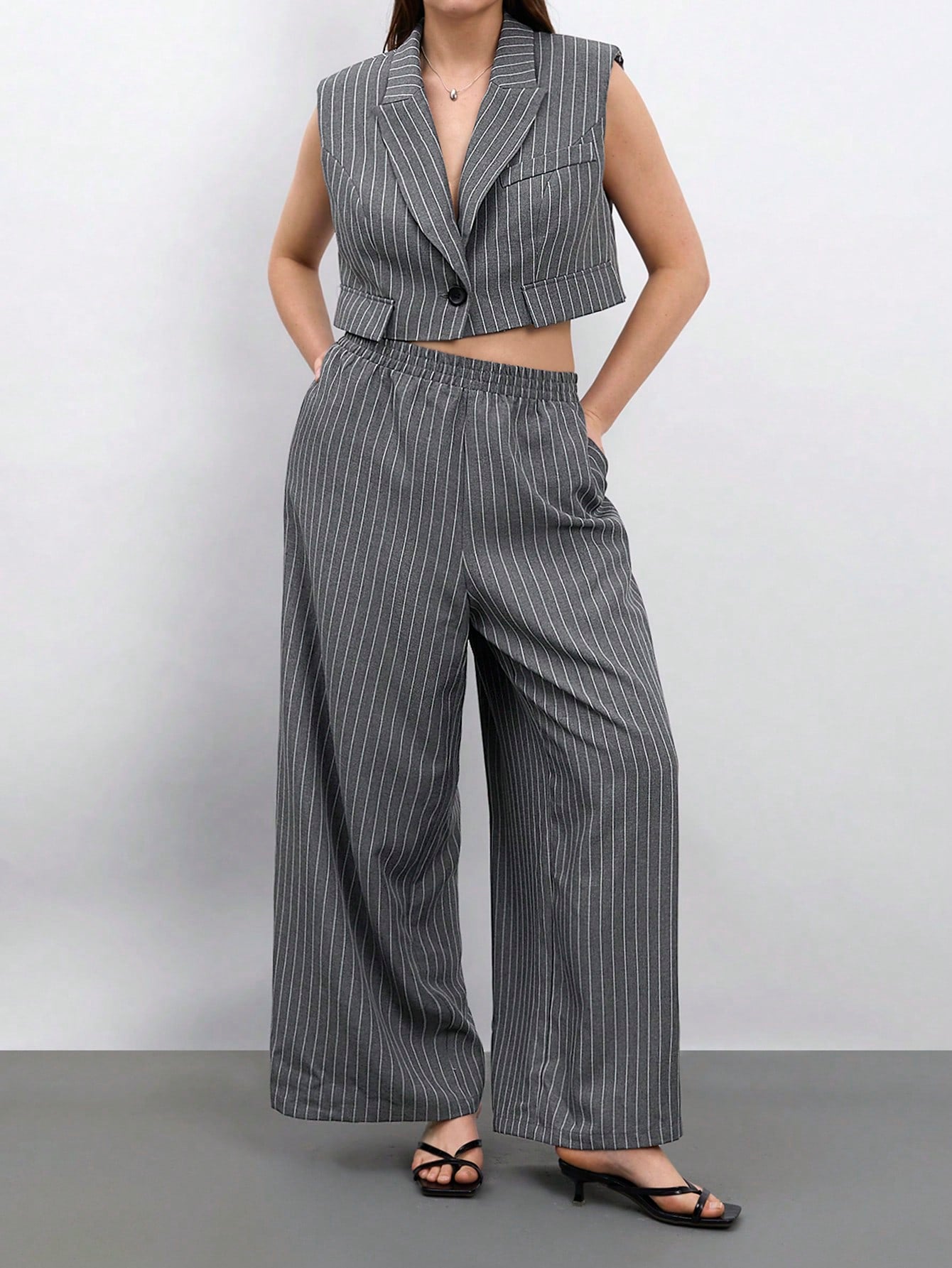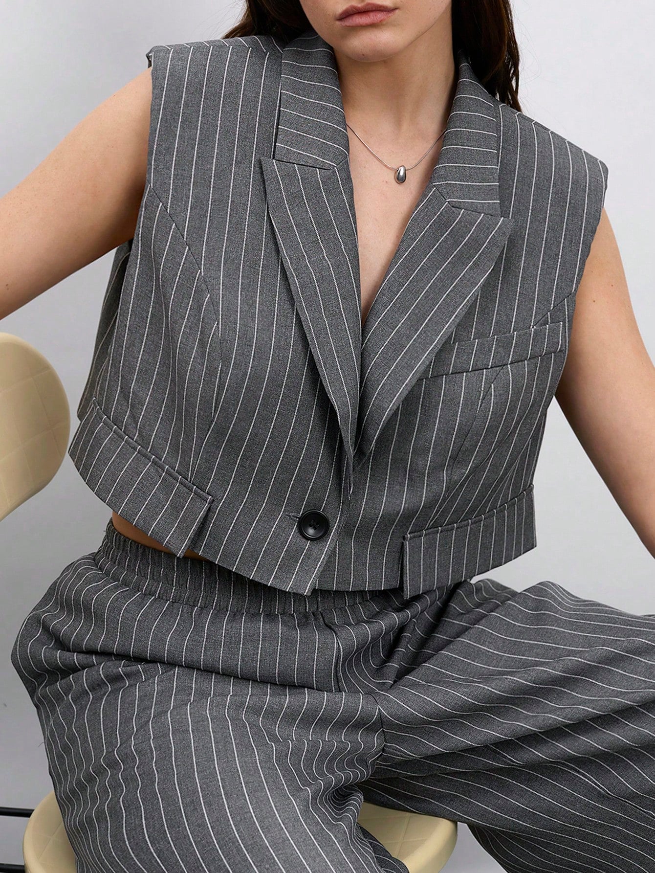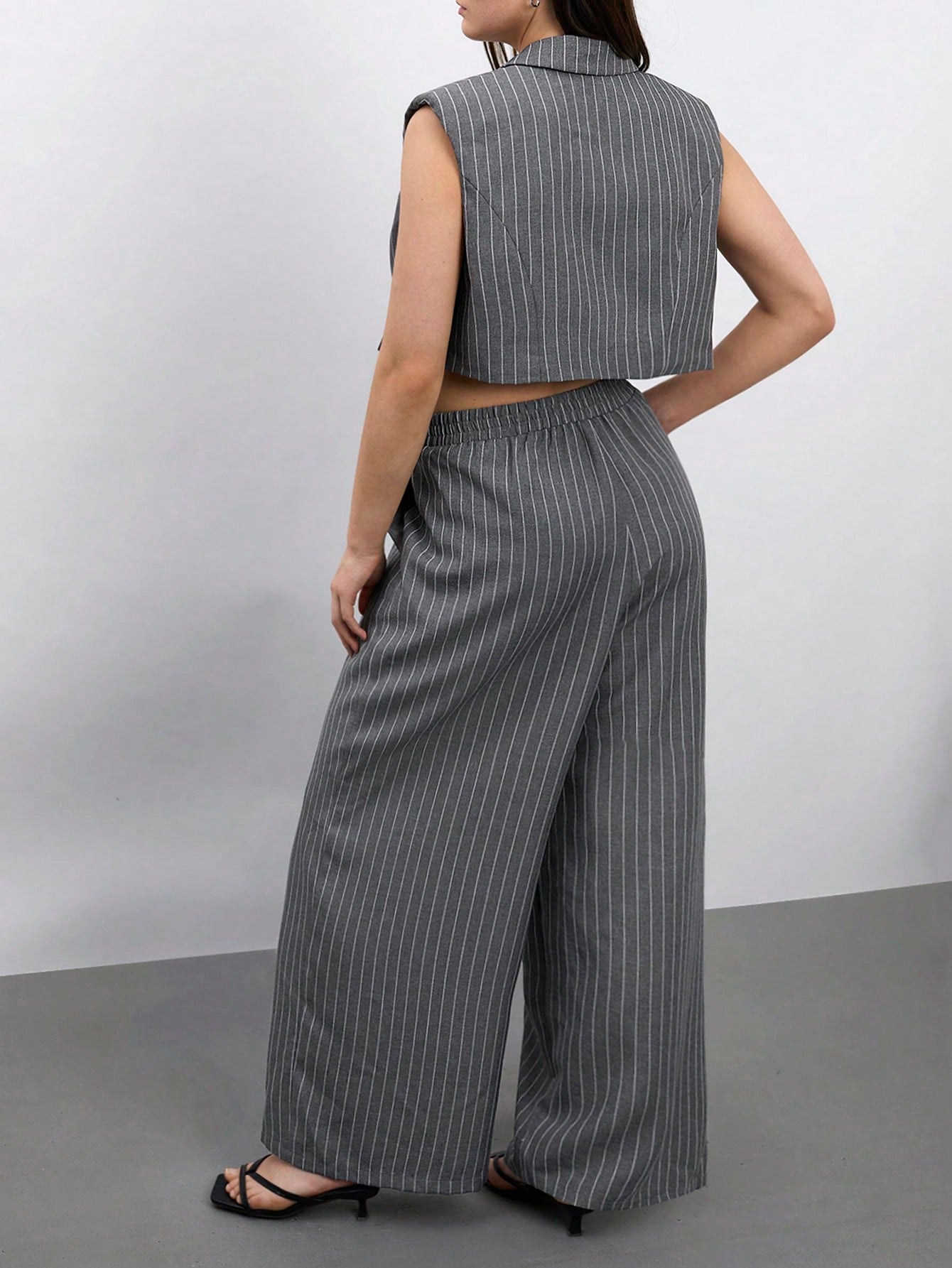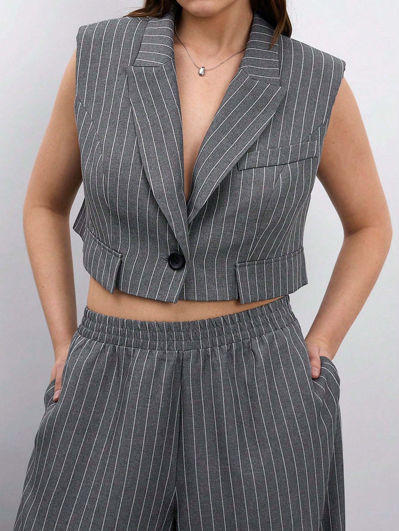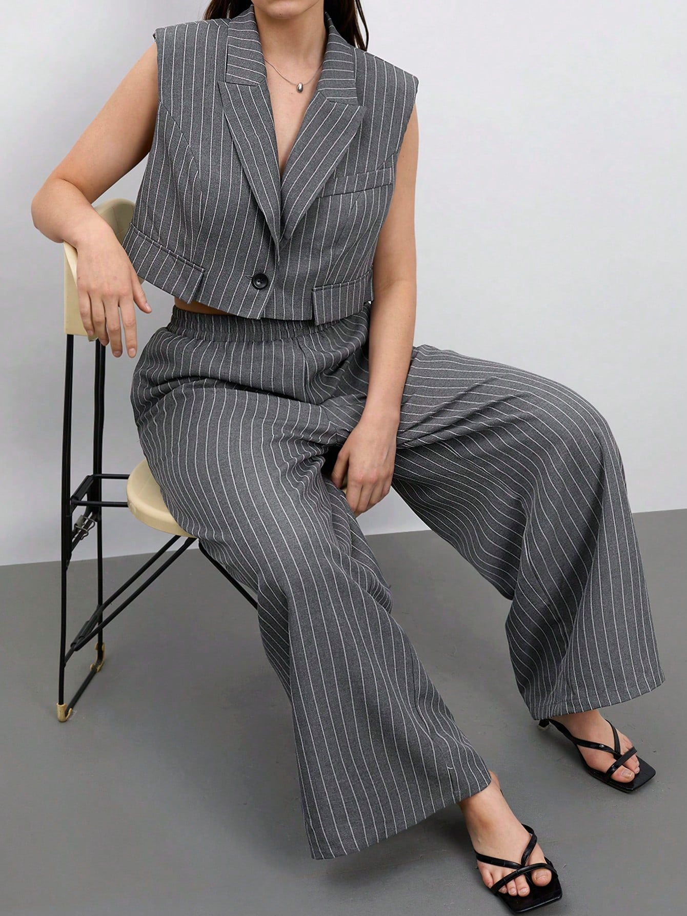 Maija Plus Size Striped Sleeveless Lapel Suit Suit Pants Elegant Fashion Sexy Urban Music Festival Daily