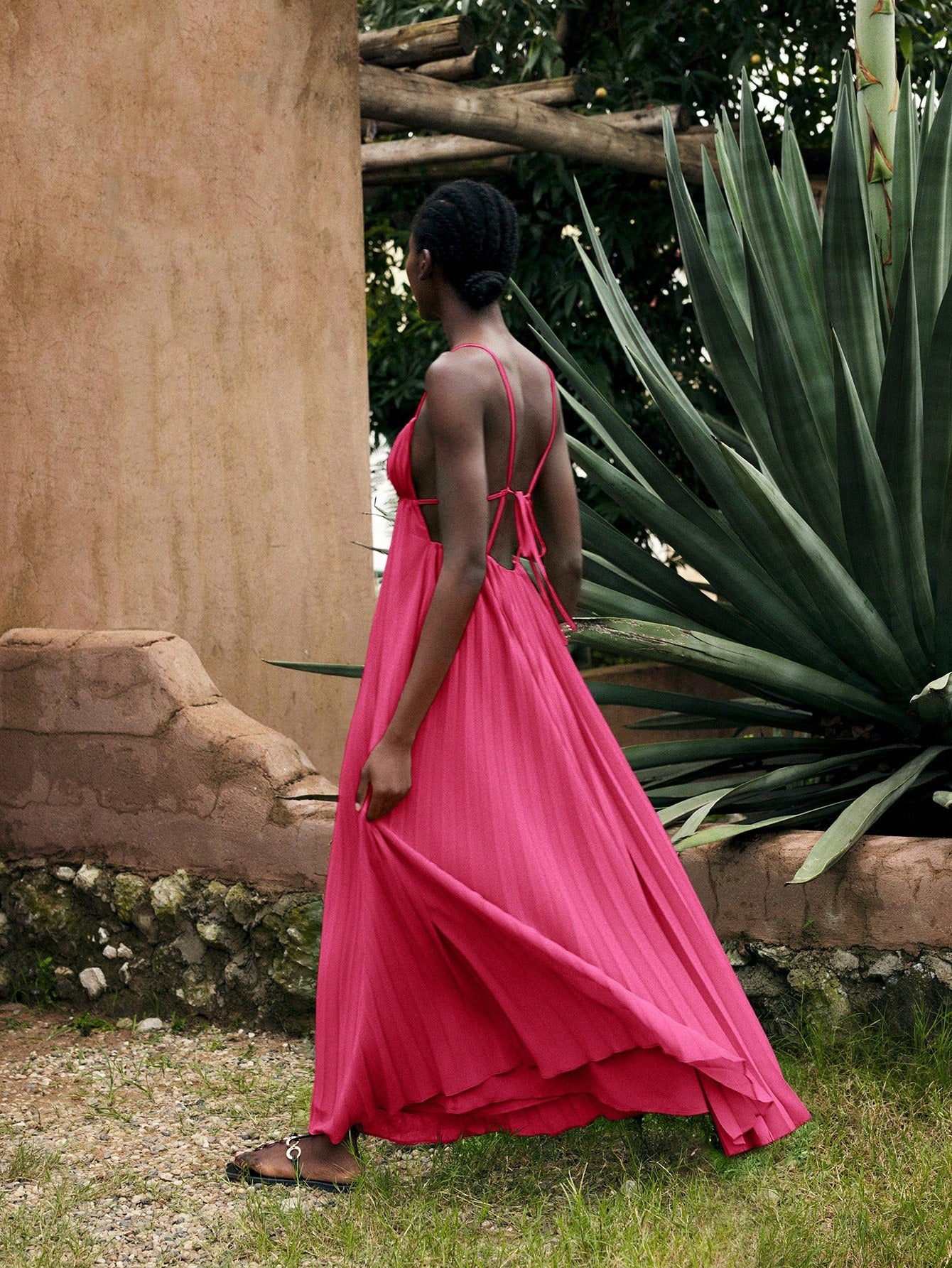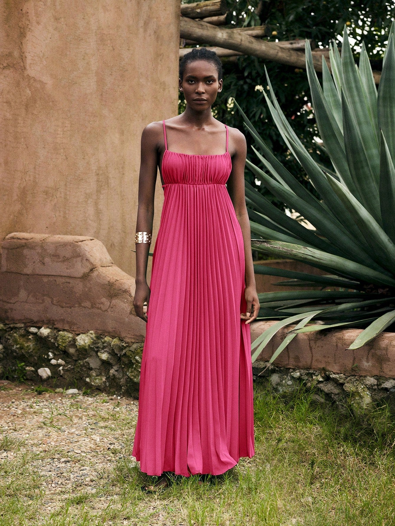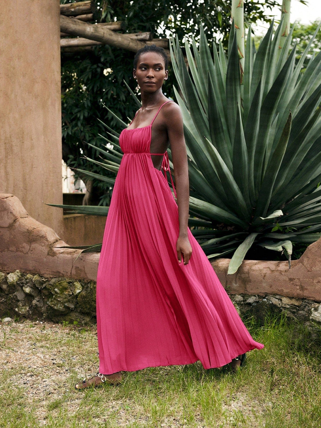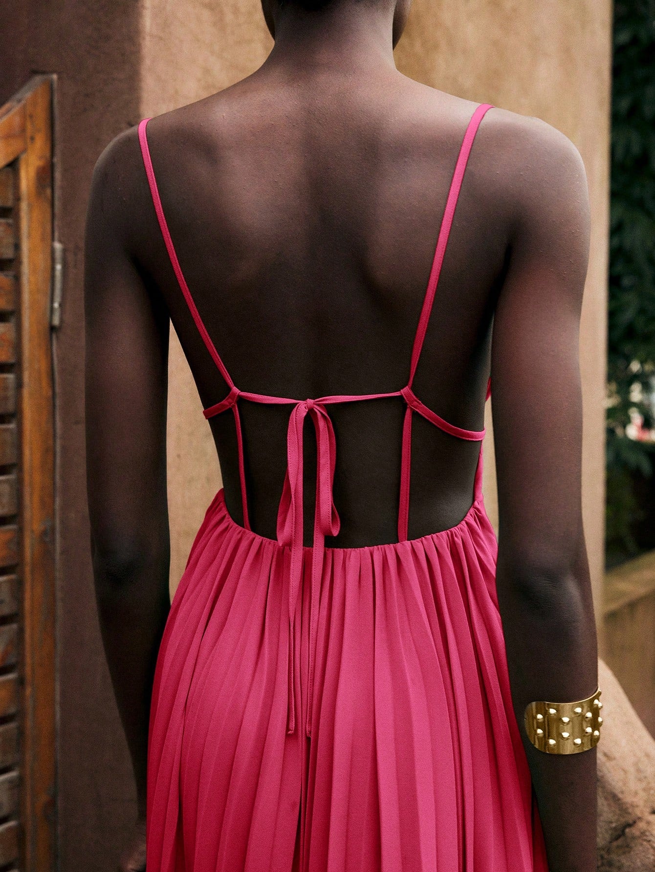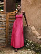 Maija Raspberry Color Women Summer Vacation Dress Casual Bohemian Solid Camisole Pleated Sleeveless