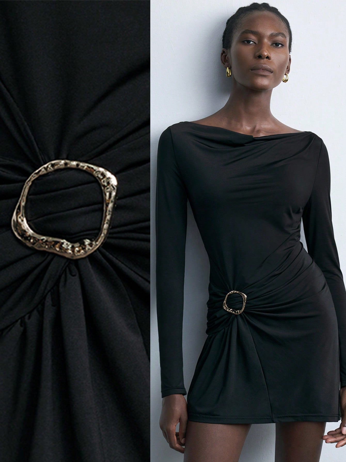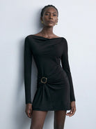Maija Women's Black Pleated Design Versatile New Elegant Urban Casual Party Dress