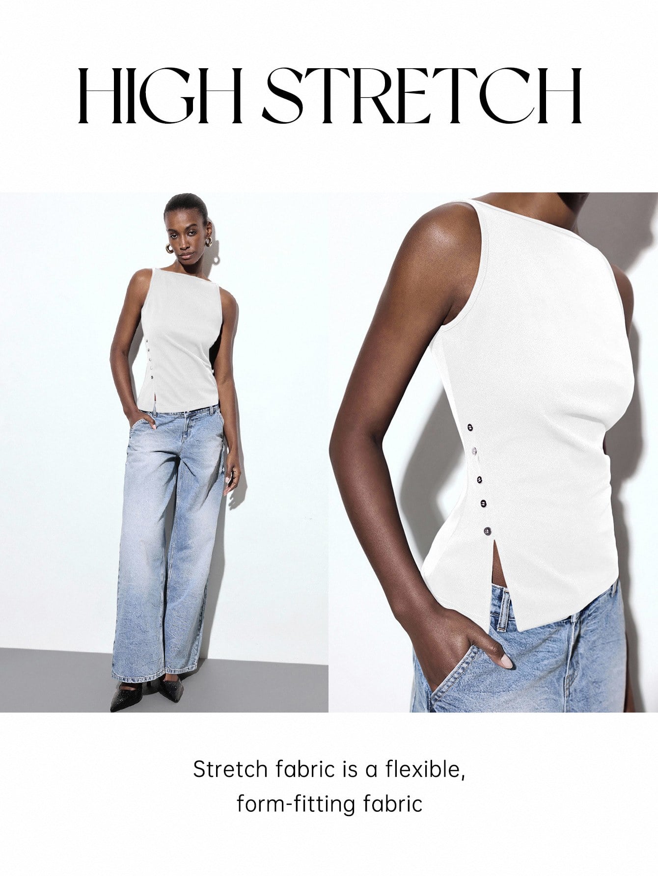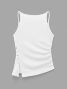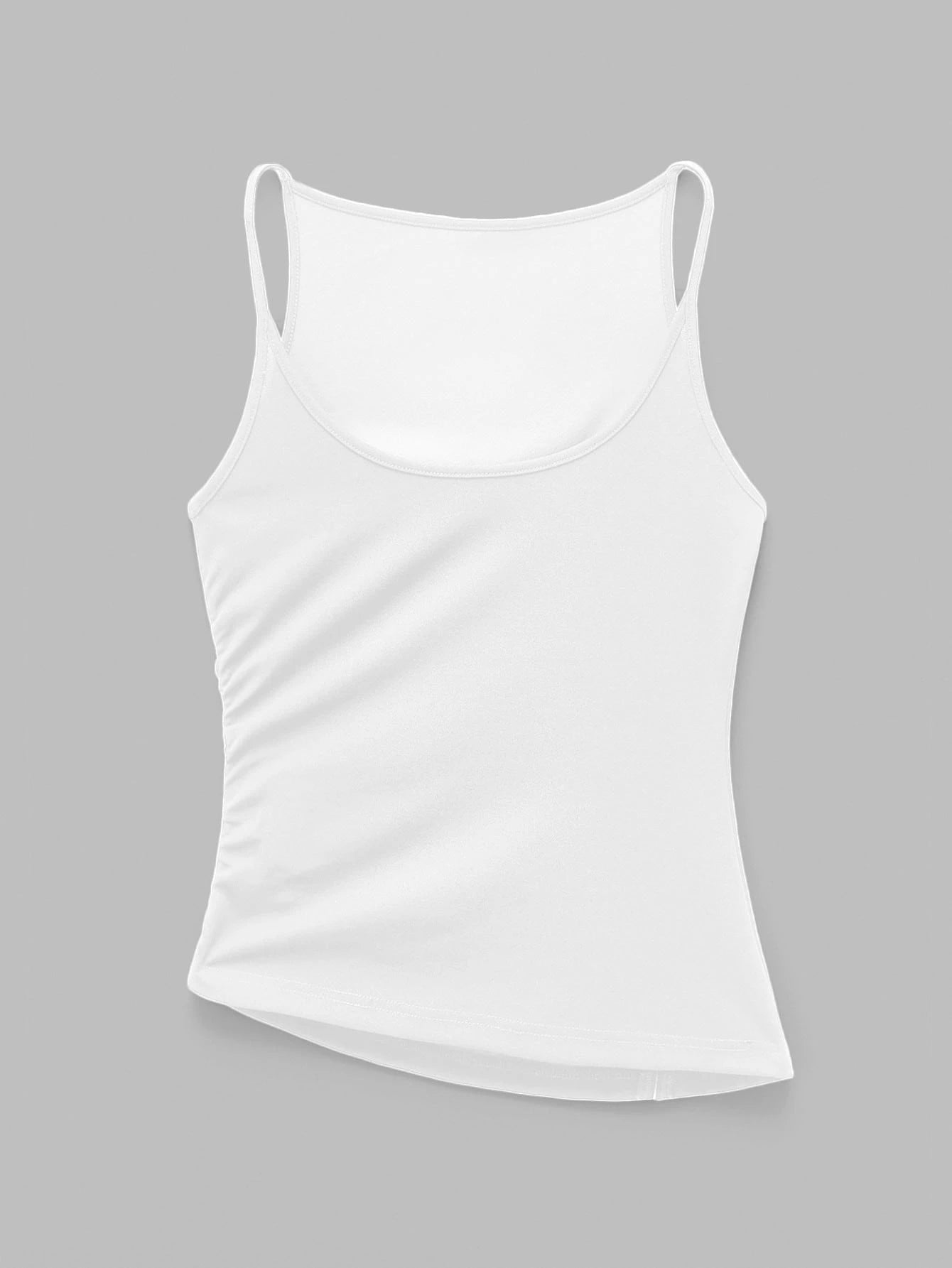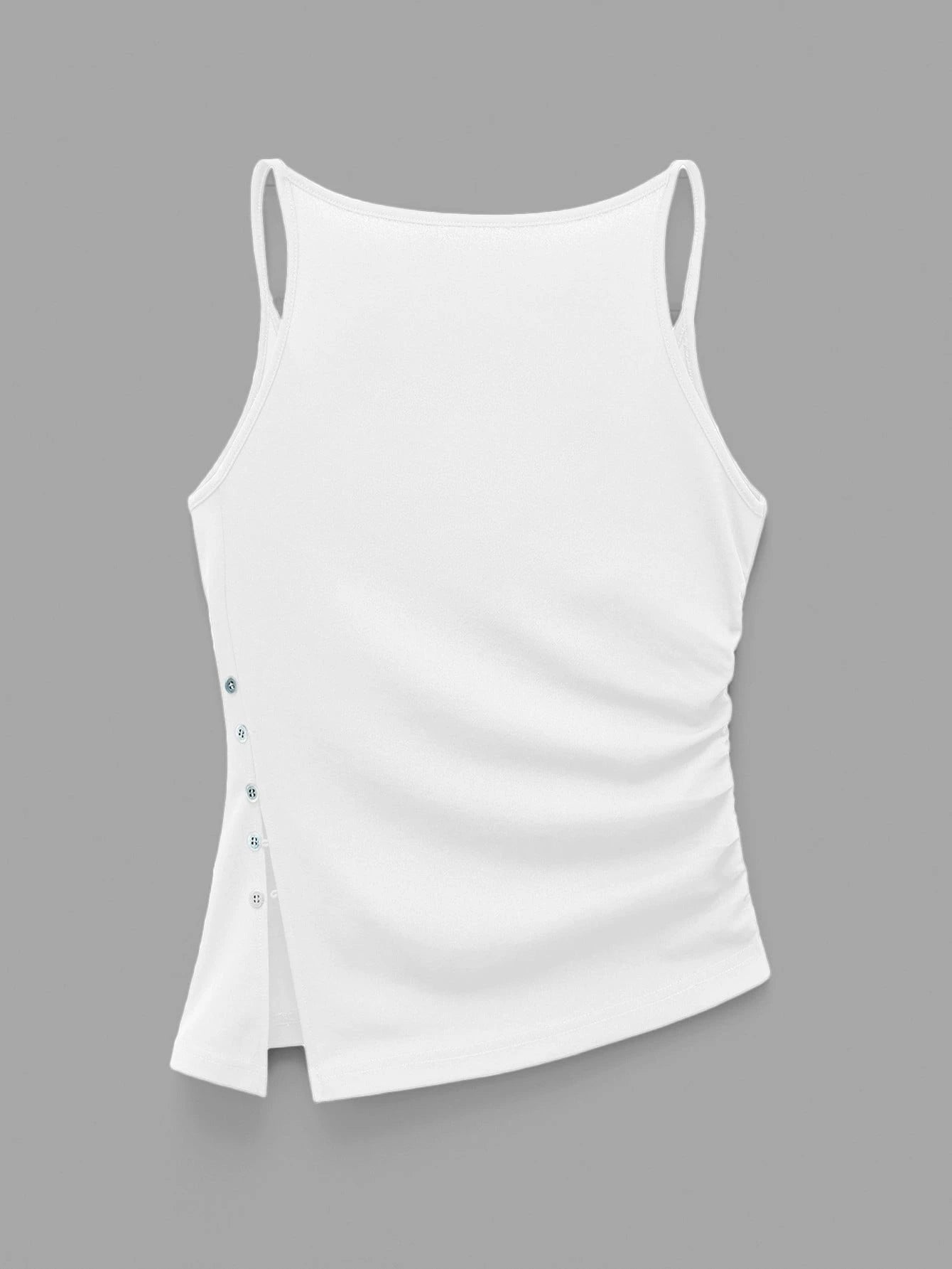 Maija Women's White Boat Neck Asymmetric Hem Open Side Ruched Cold Shoulder Tank Top