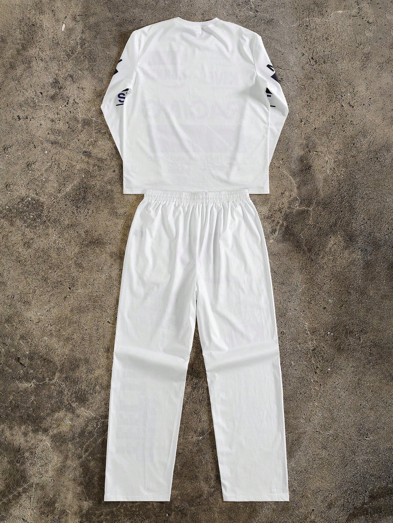 Manfinity EMRG Men's Racing Casual Minimalist Long Sleeve T-Shirt And Pants Set, Daily Wear