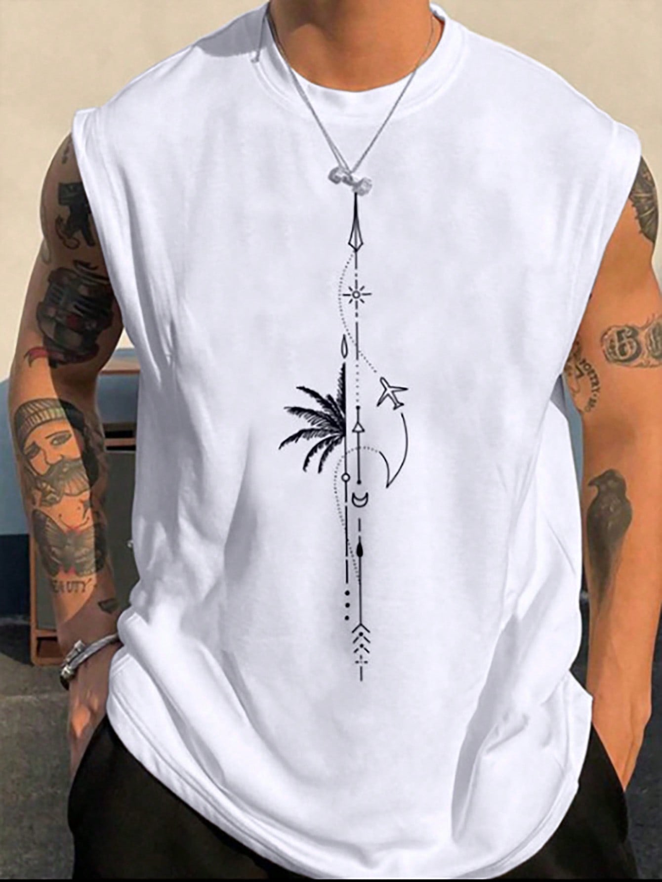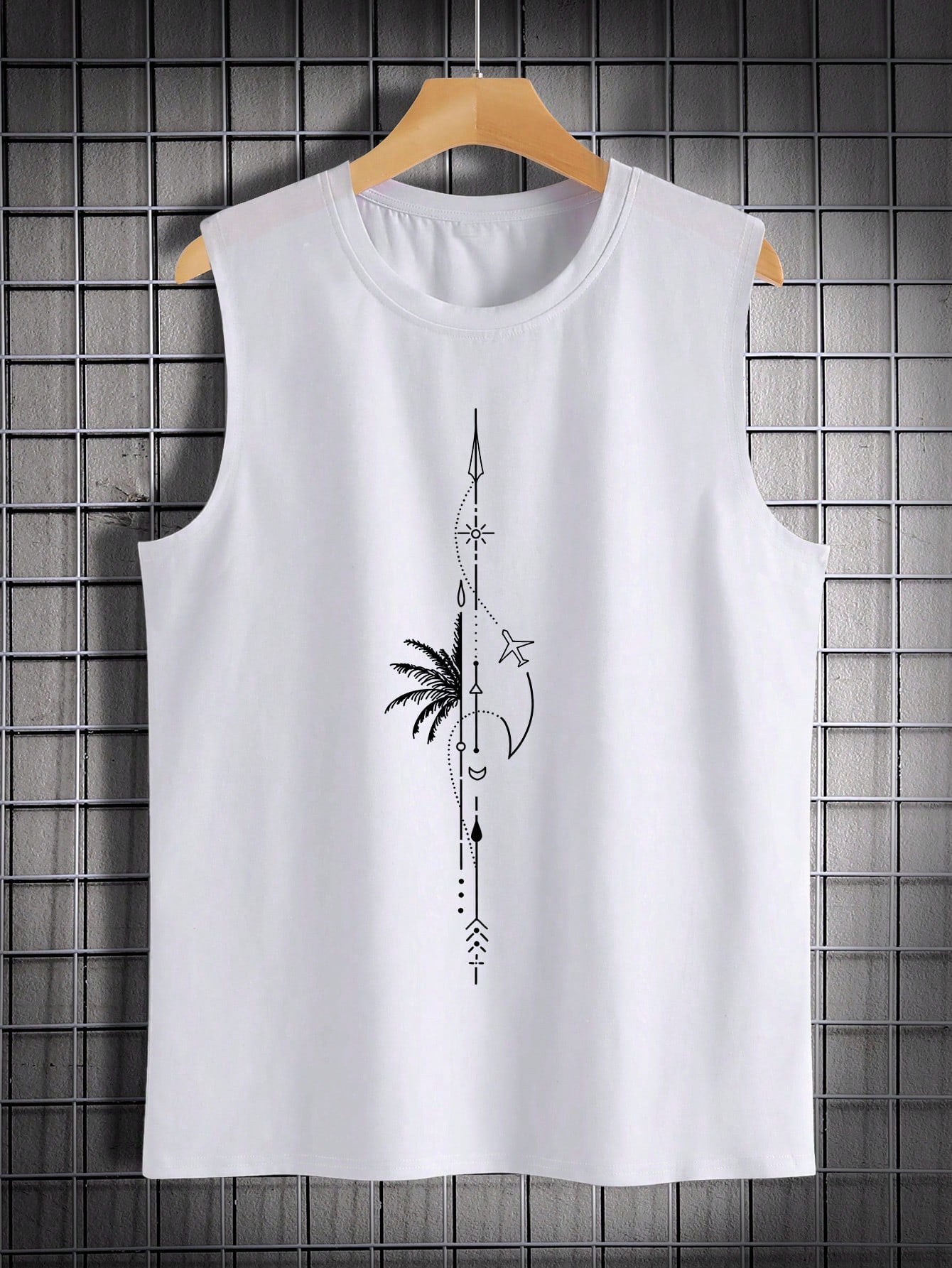 Manfinity Homme Men's Airplane Pattern Printed Graphic Vintage Casual Sleeveless Tank Top, For Vacation,