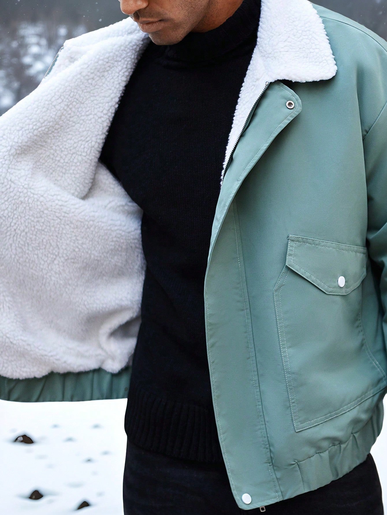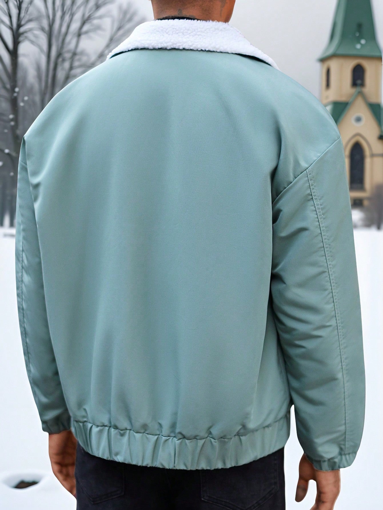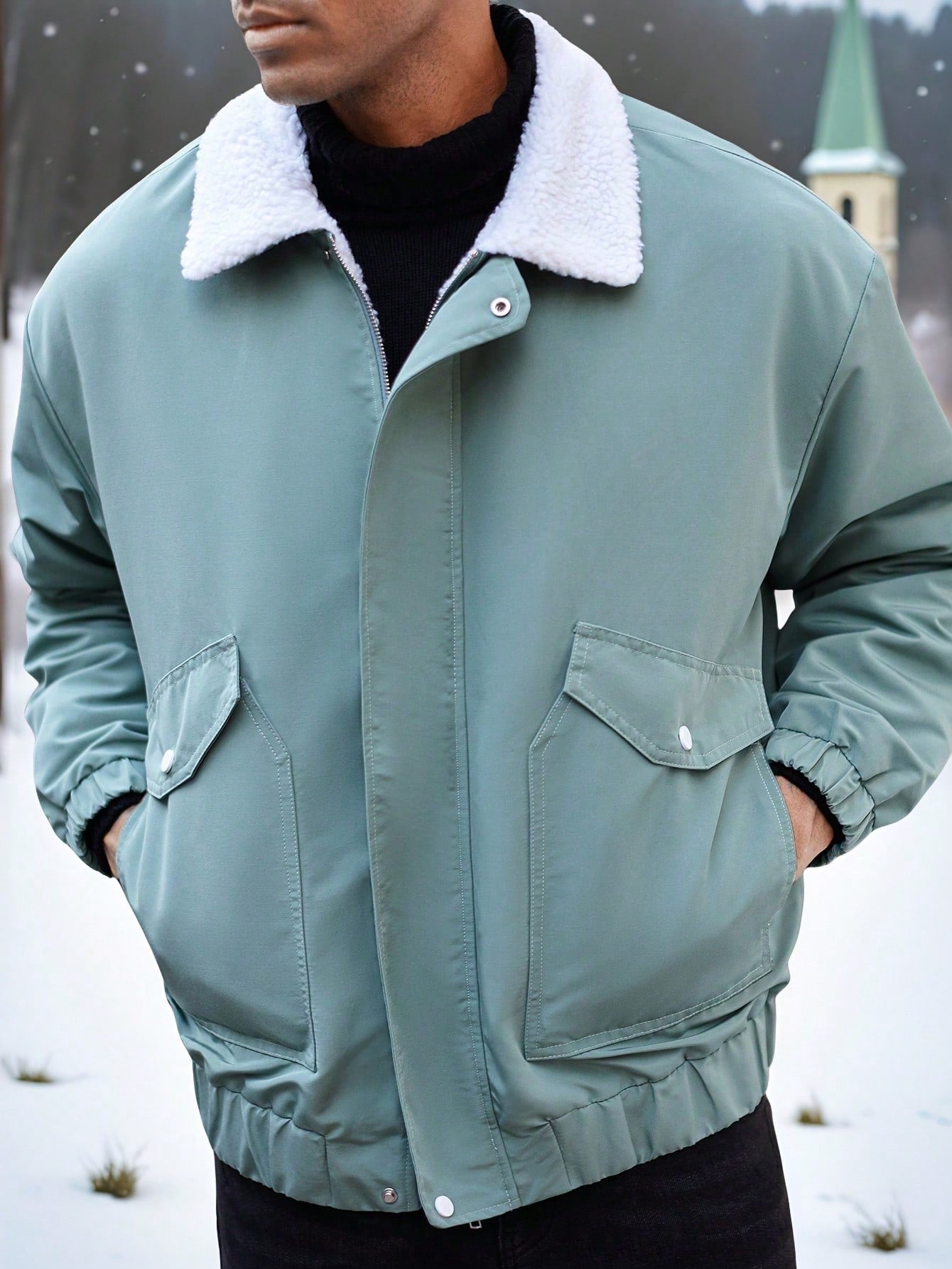 Manfinity Homme Men's Autumn/Winter Casual Contrast Color Fur Collar Thermal Lined Padded Coat