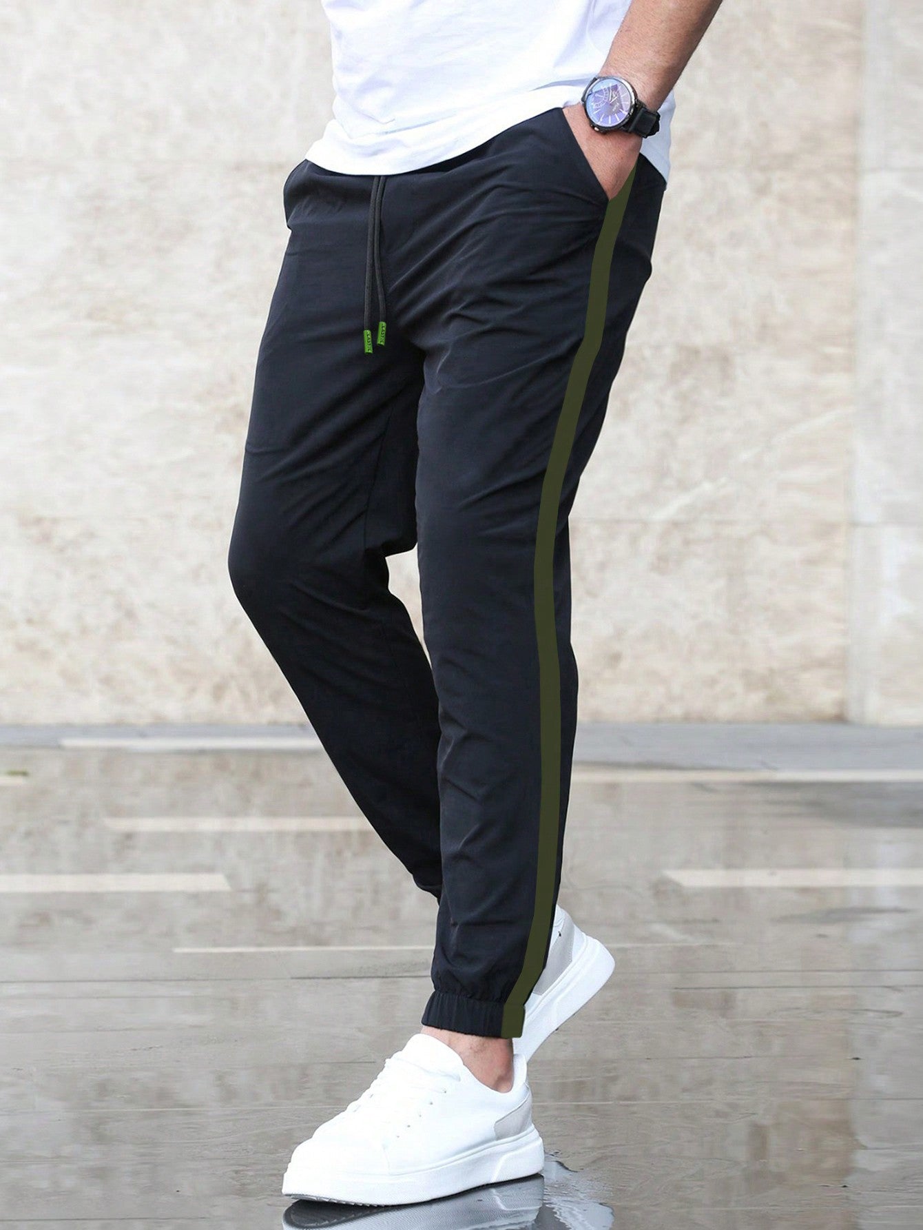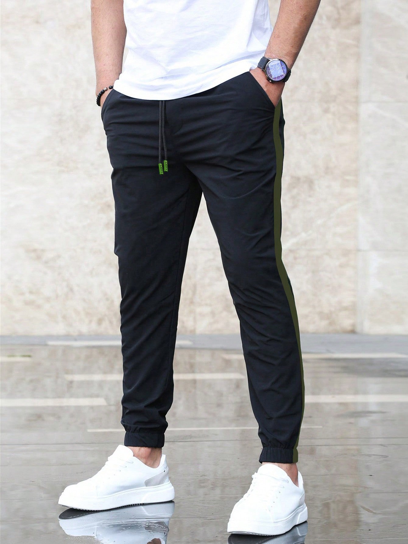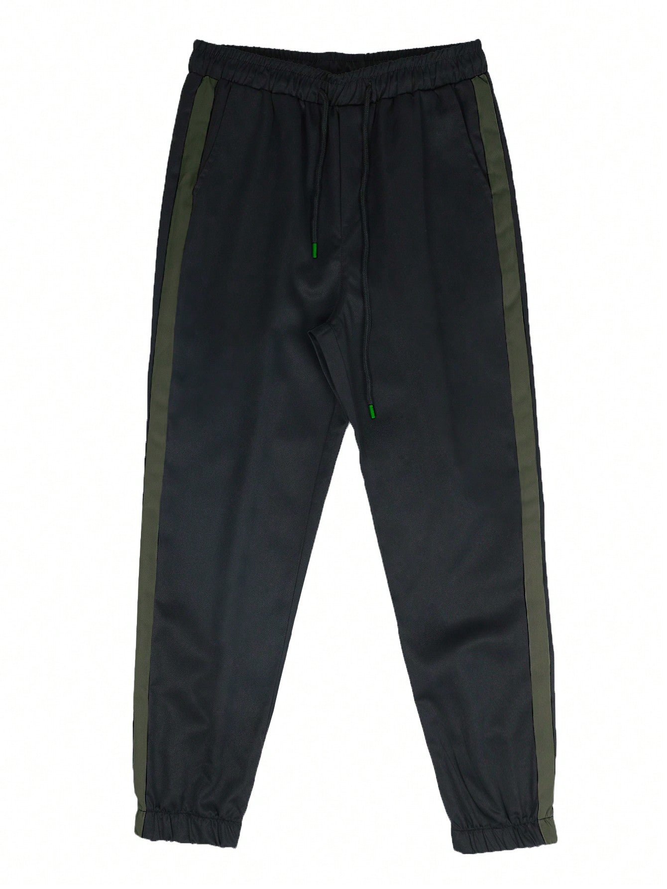 Manfinity Homme Men's Casual Sweatpants With Color Blocking Drawstring Waist And Cuffed Hem