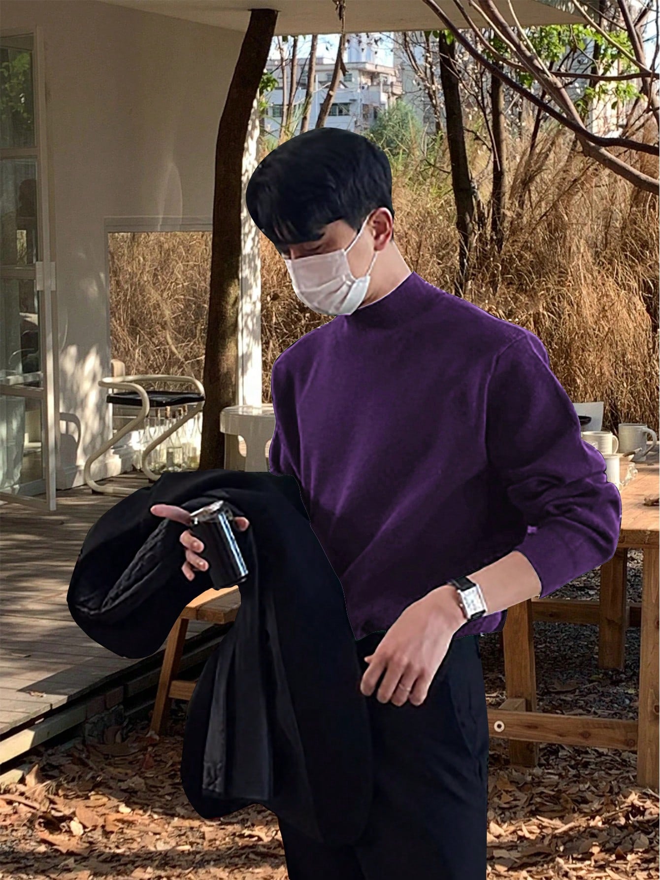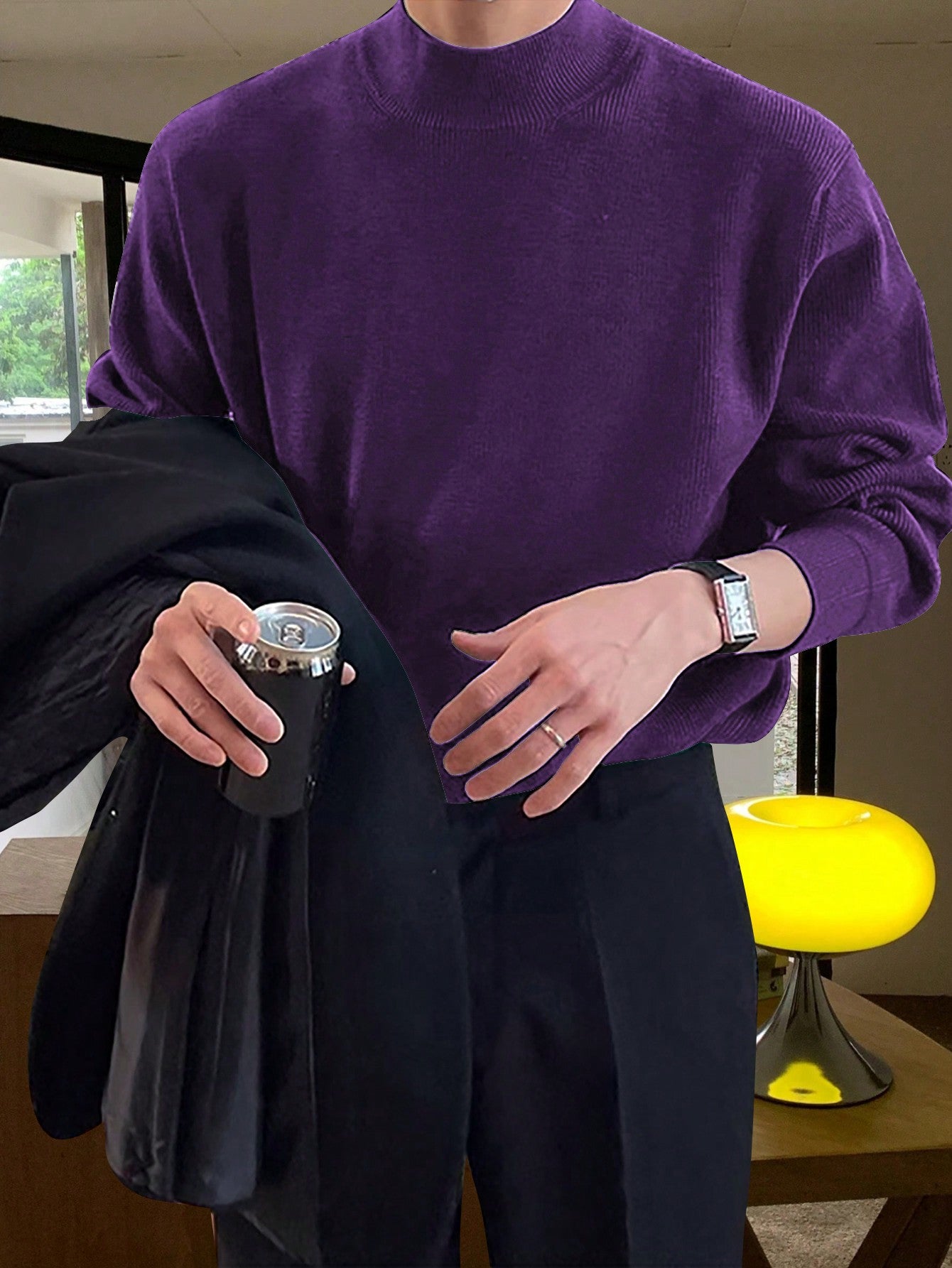 Manfinity Hypemode Men's Casual Everyday Simple Solid Color Ribbed Knit Sweater, Autumn/Winter