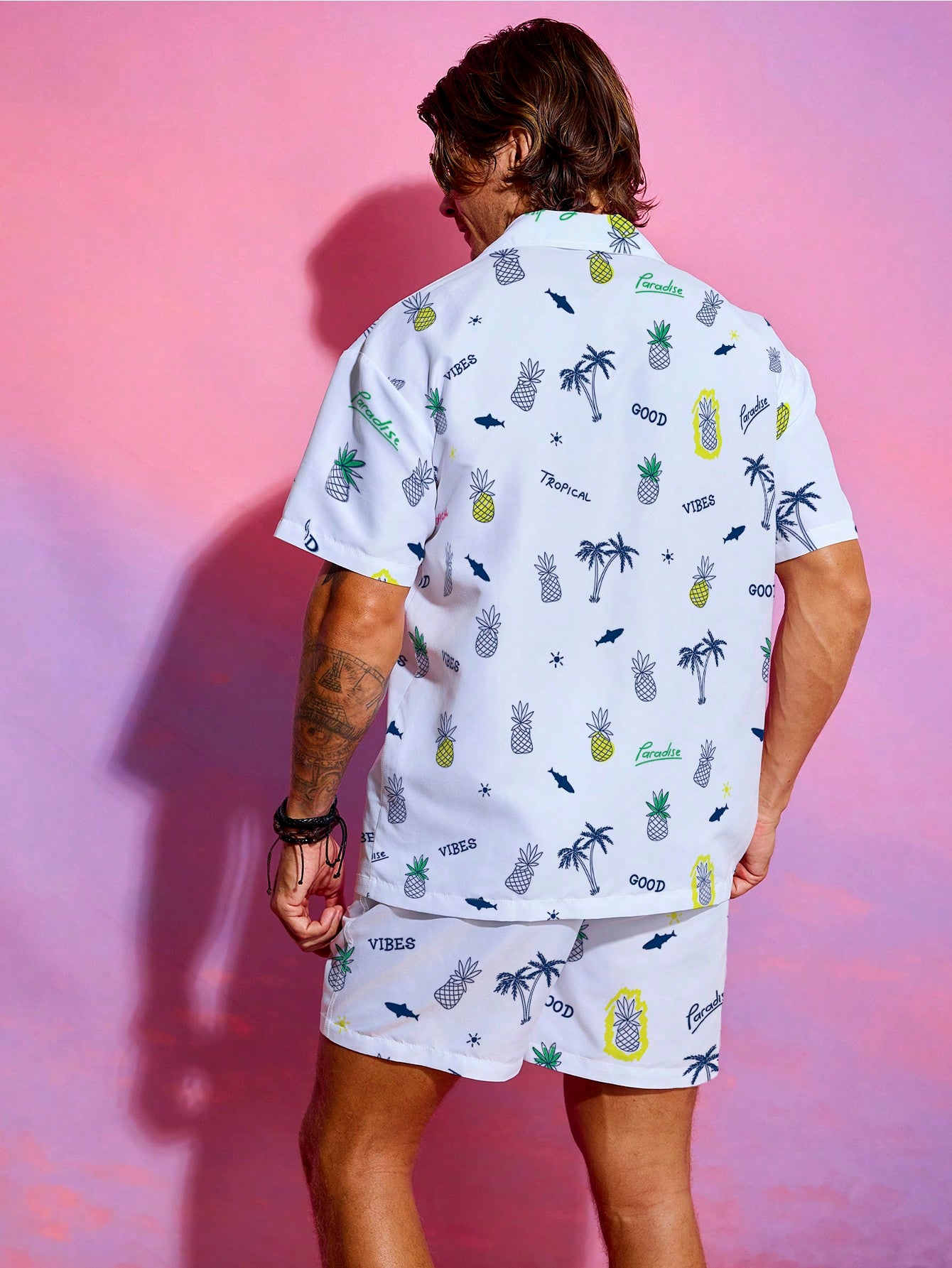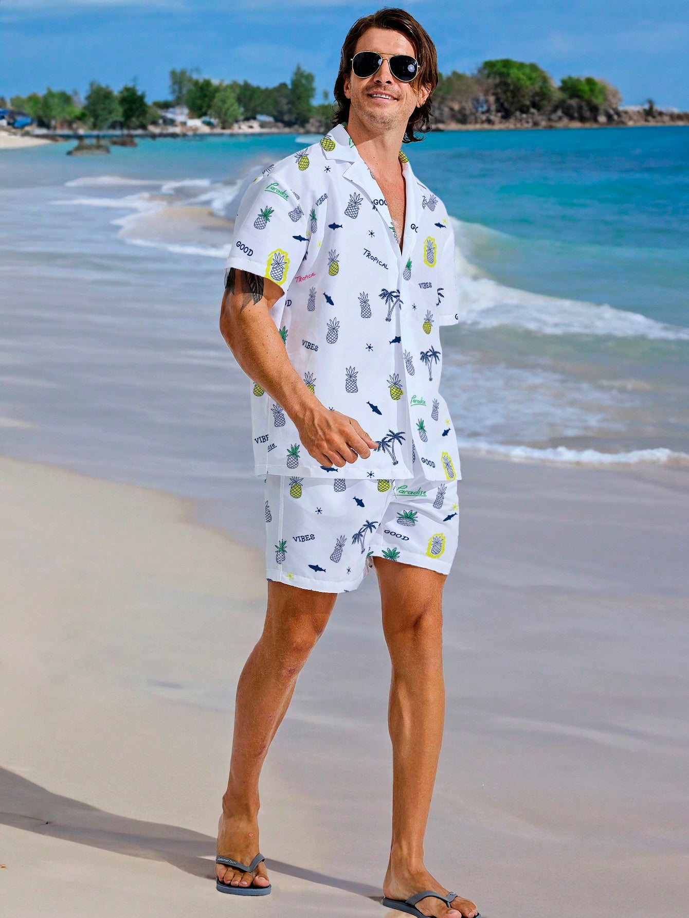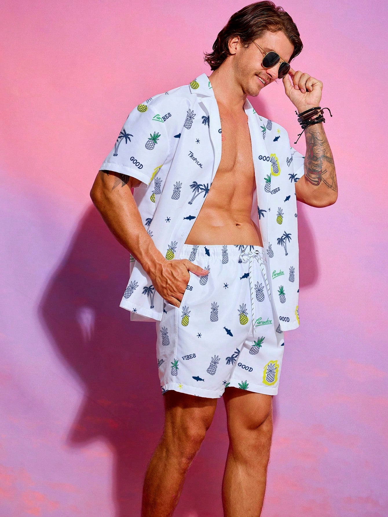 men Manfinity Men's Plus Size Random Printed Simple Daily Beachwear Set