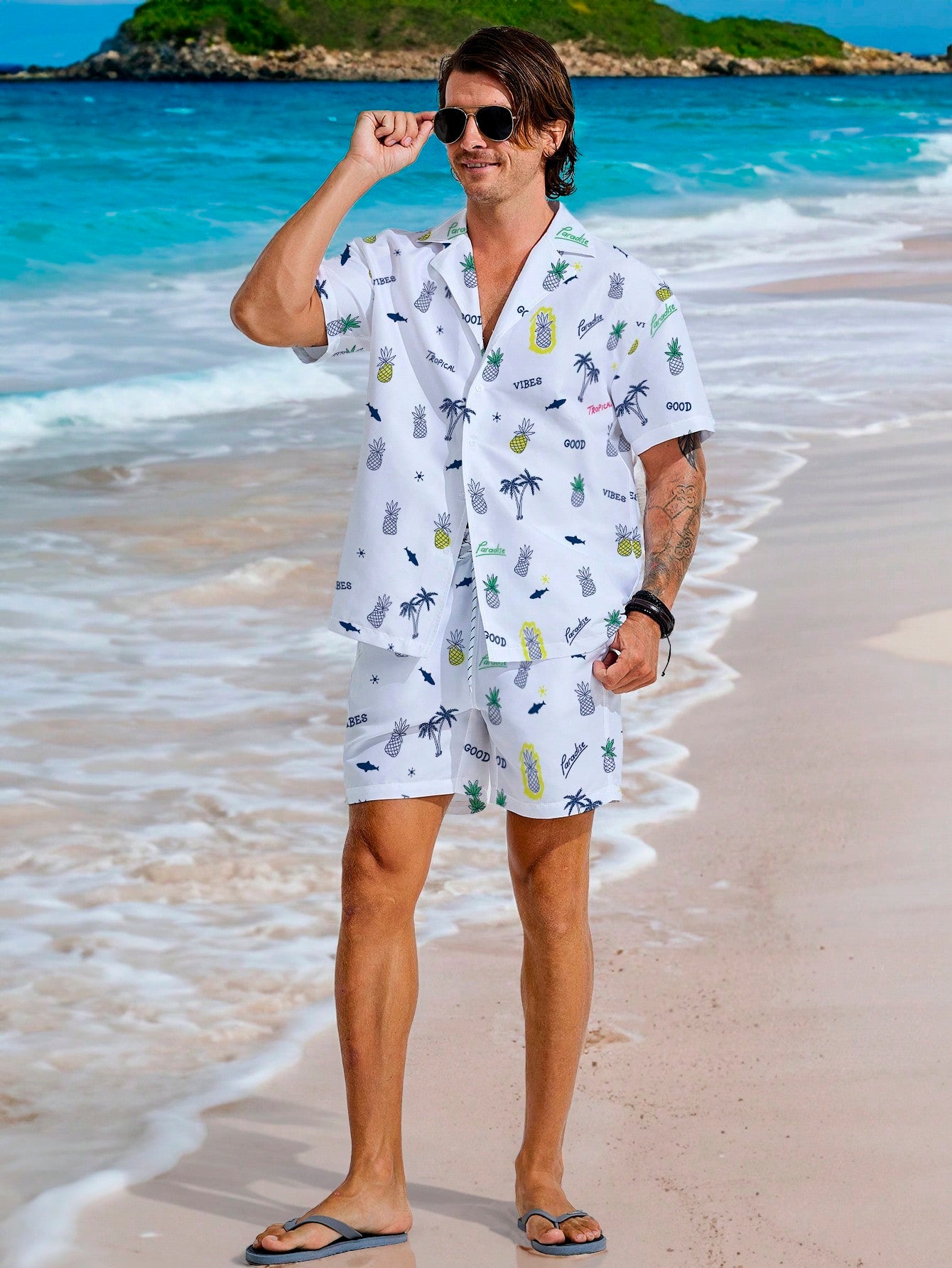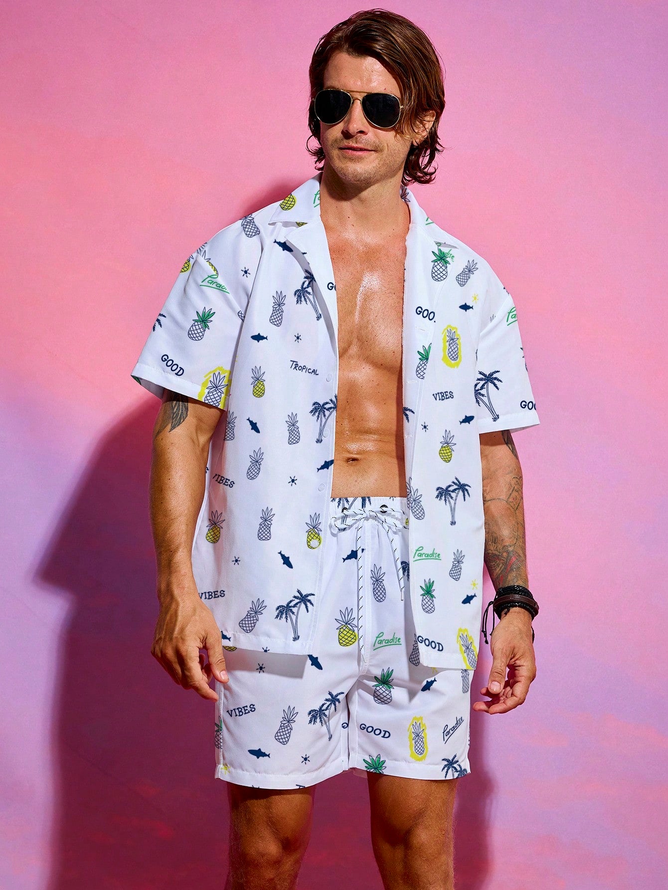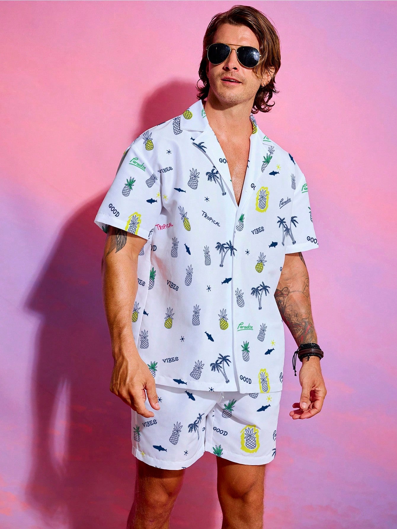men Manfinity Men's Plus Size Random Printed Simple Daily Beachwear Set