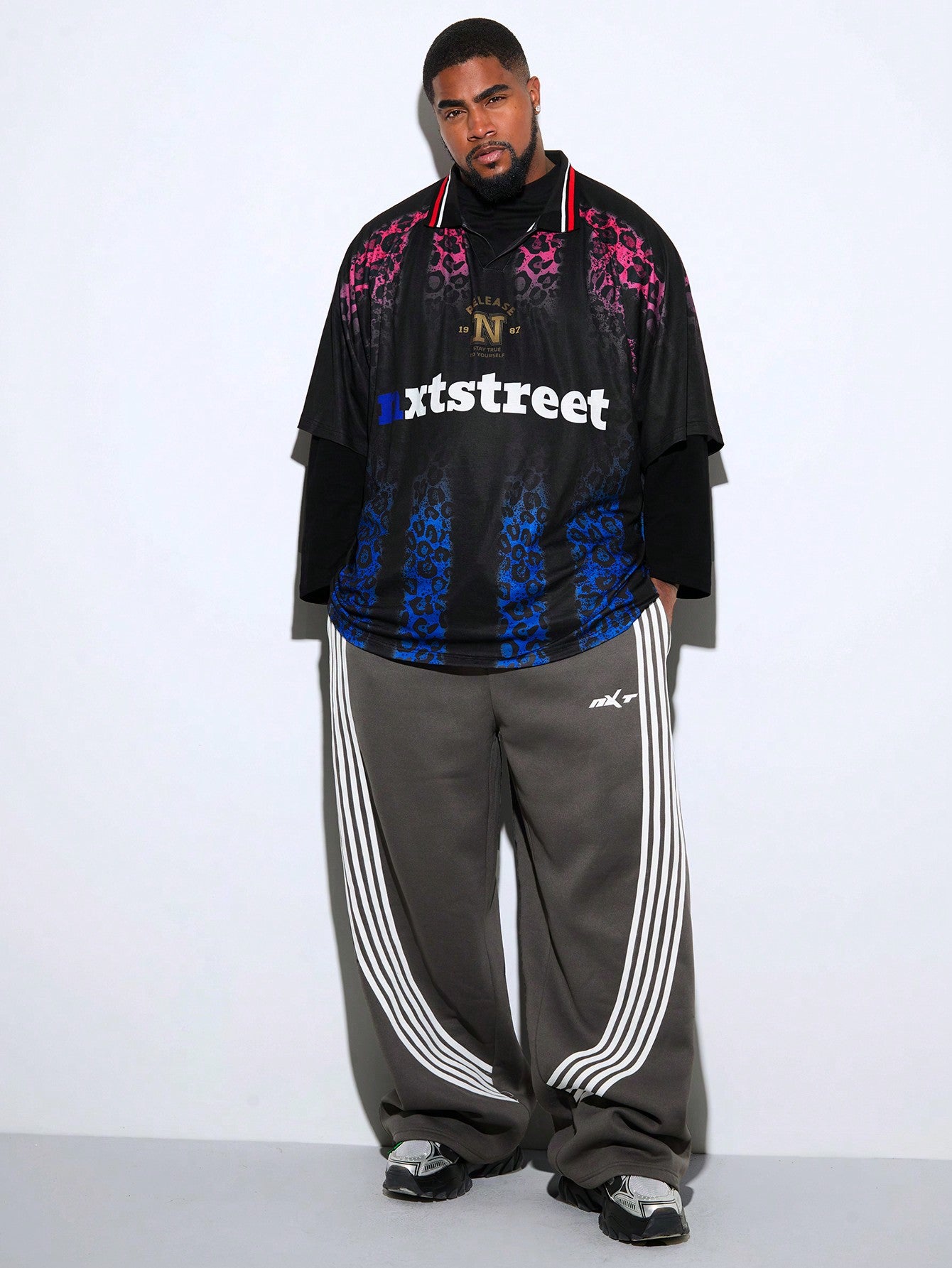Manfinity VCAY Men Plus Size Urban Knitted Loose Ombre Leopard Print Letter Graphic Collar Polo Shirt,
