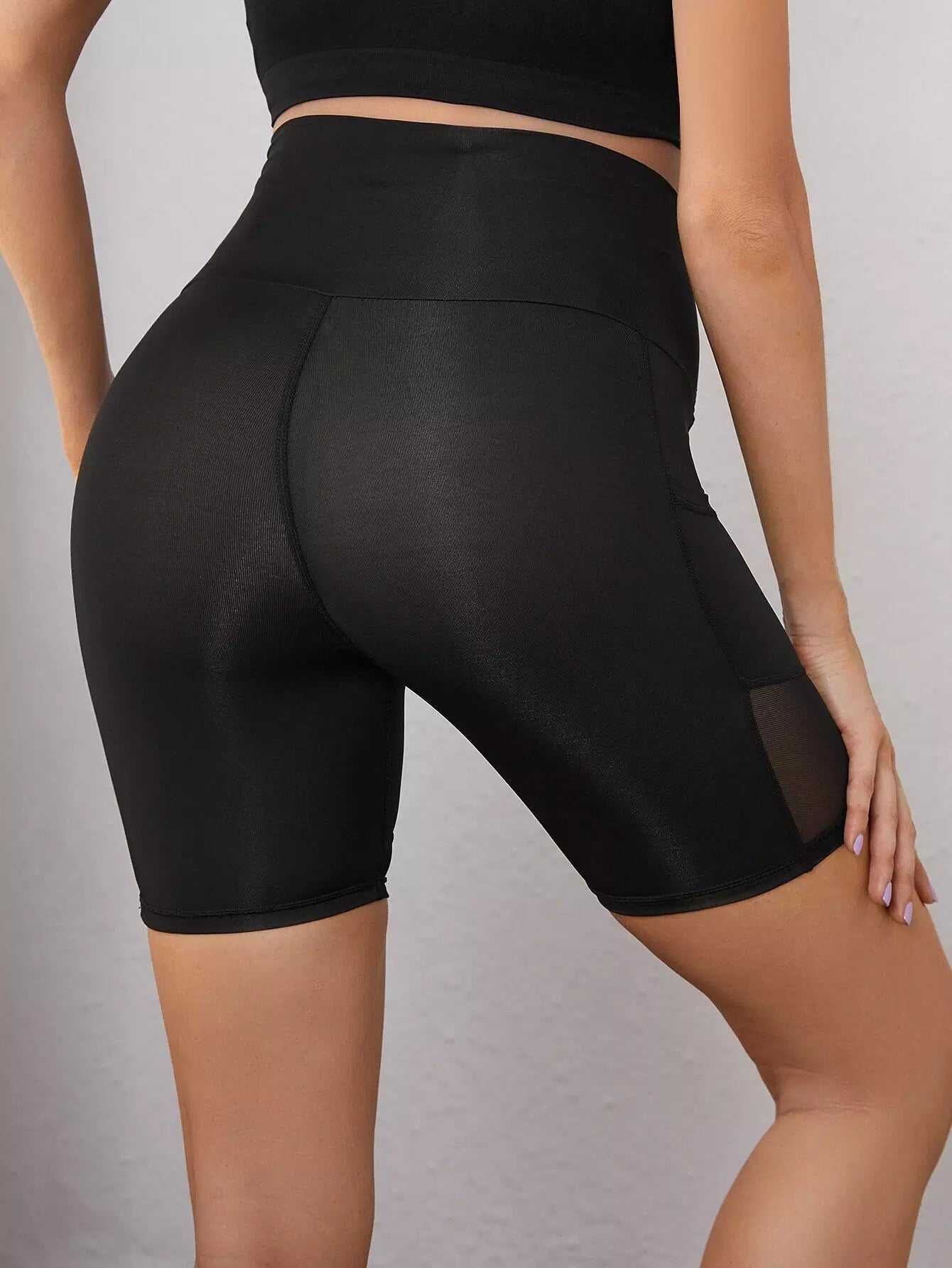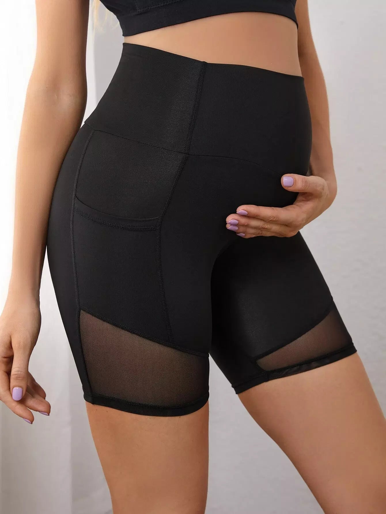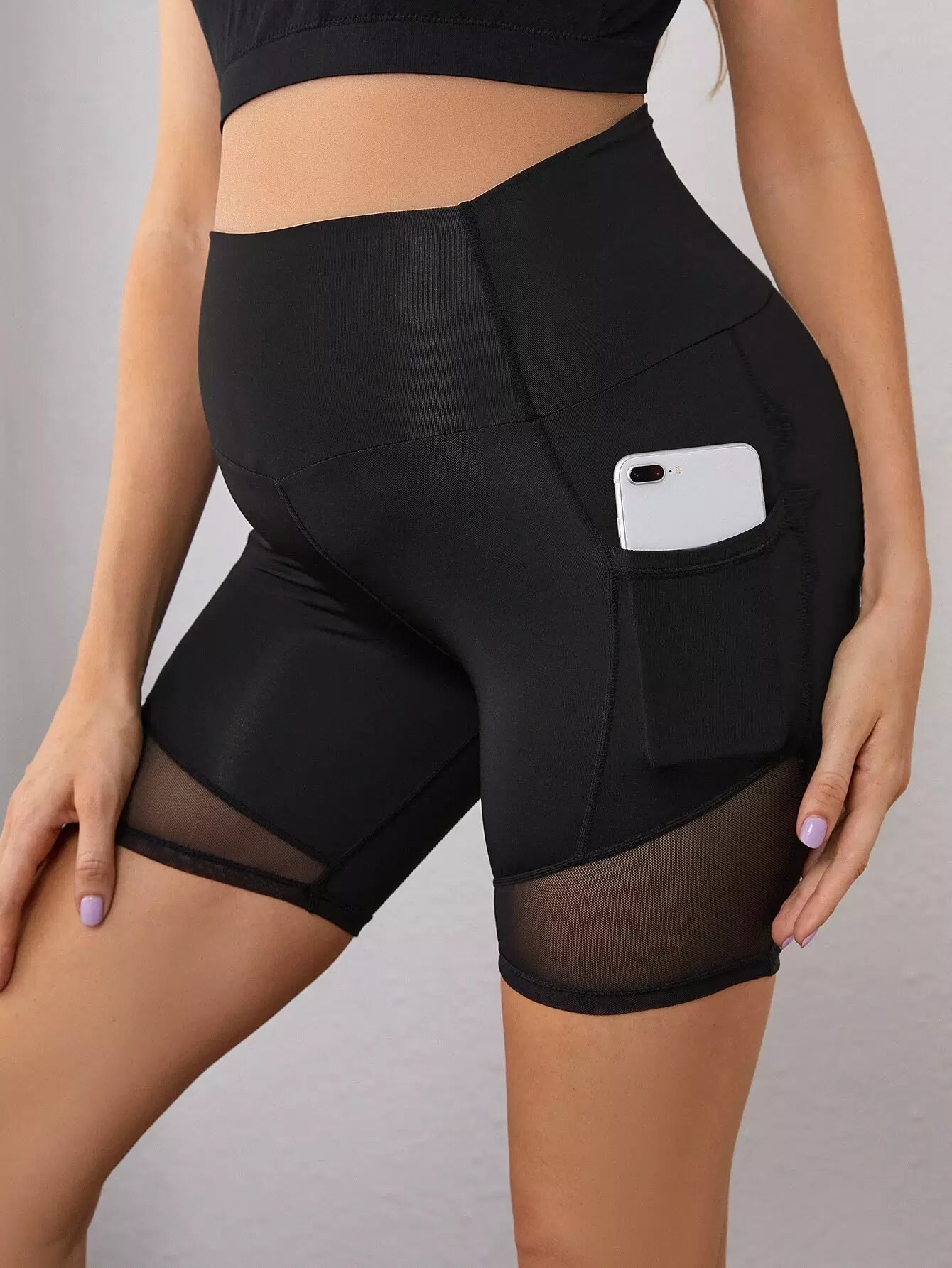 Maternity Contrast Mesh Biker Shorts With Phone Pocket