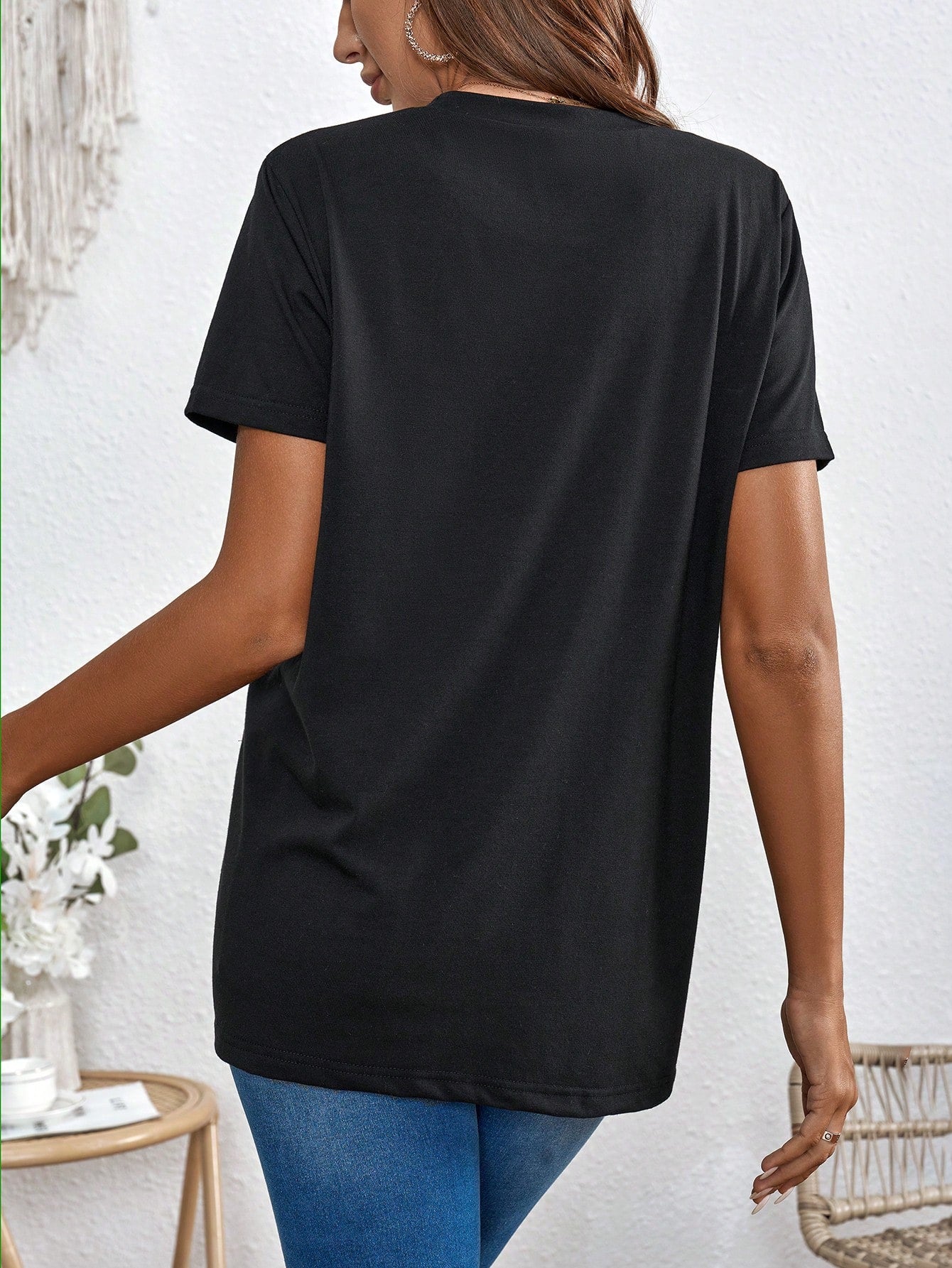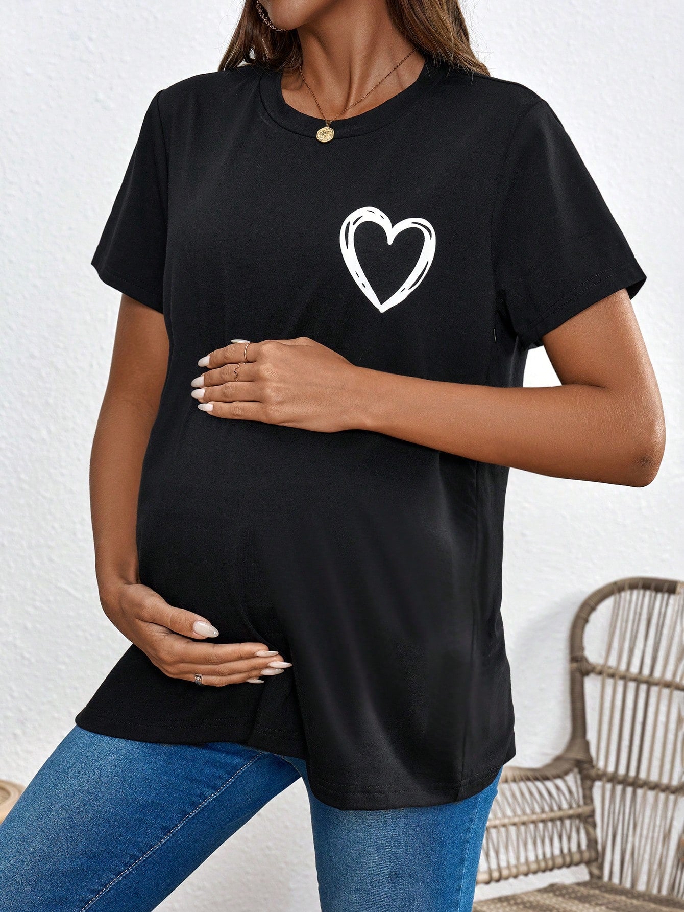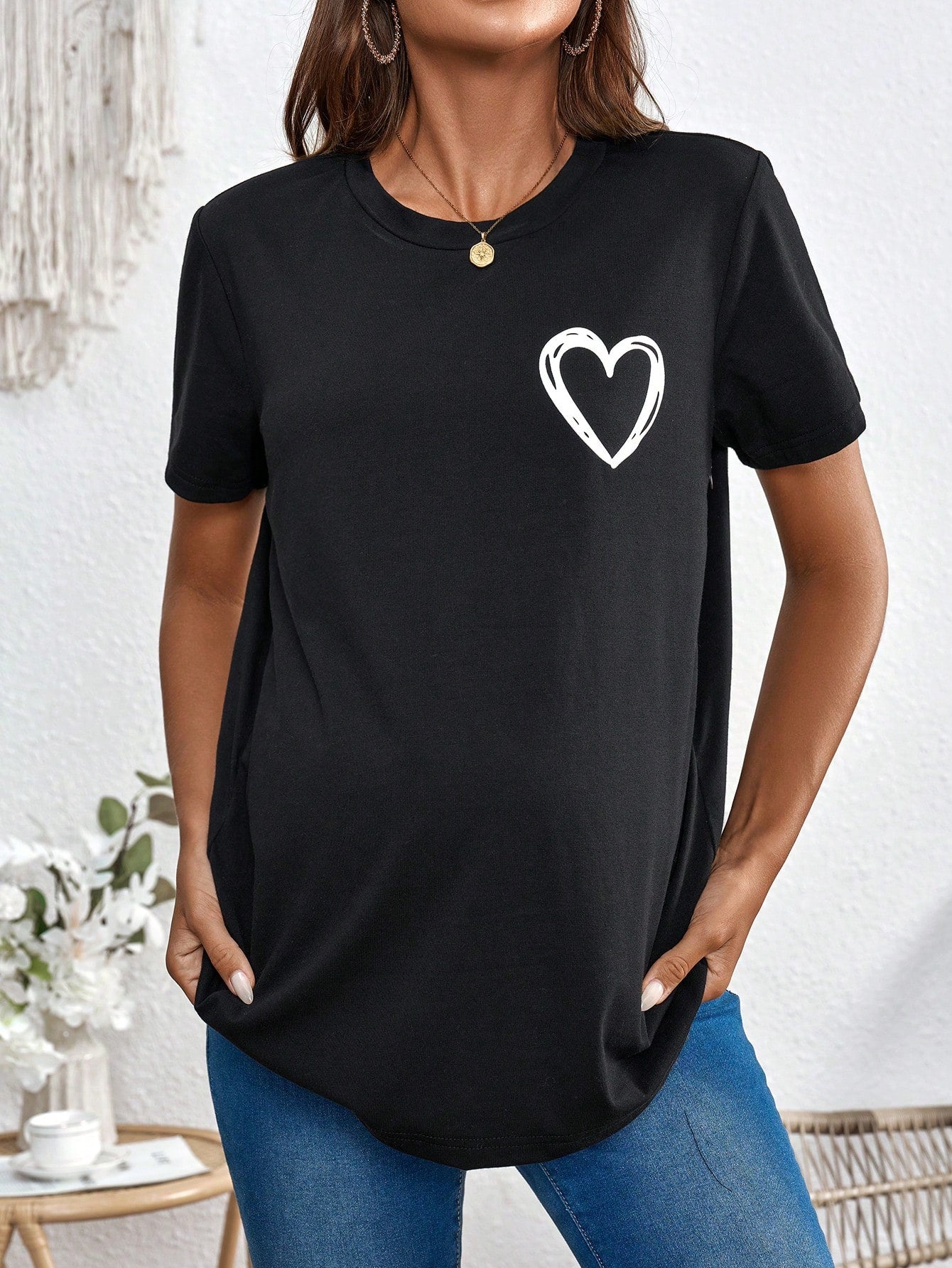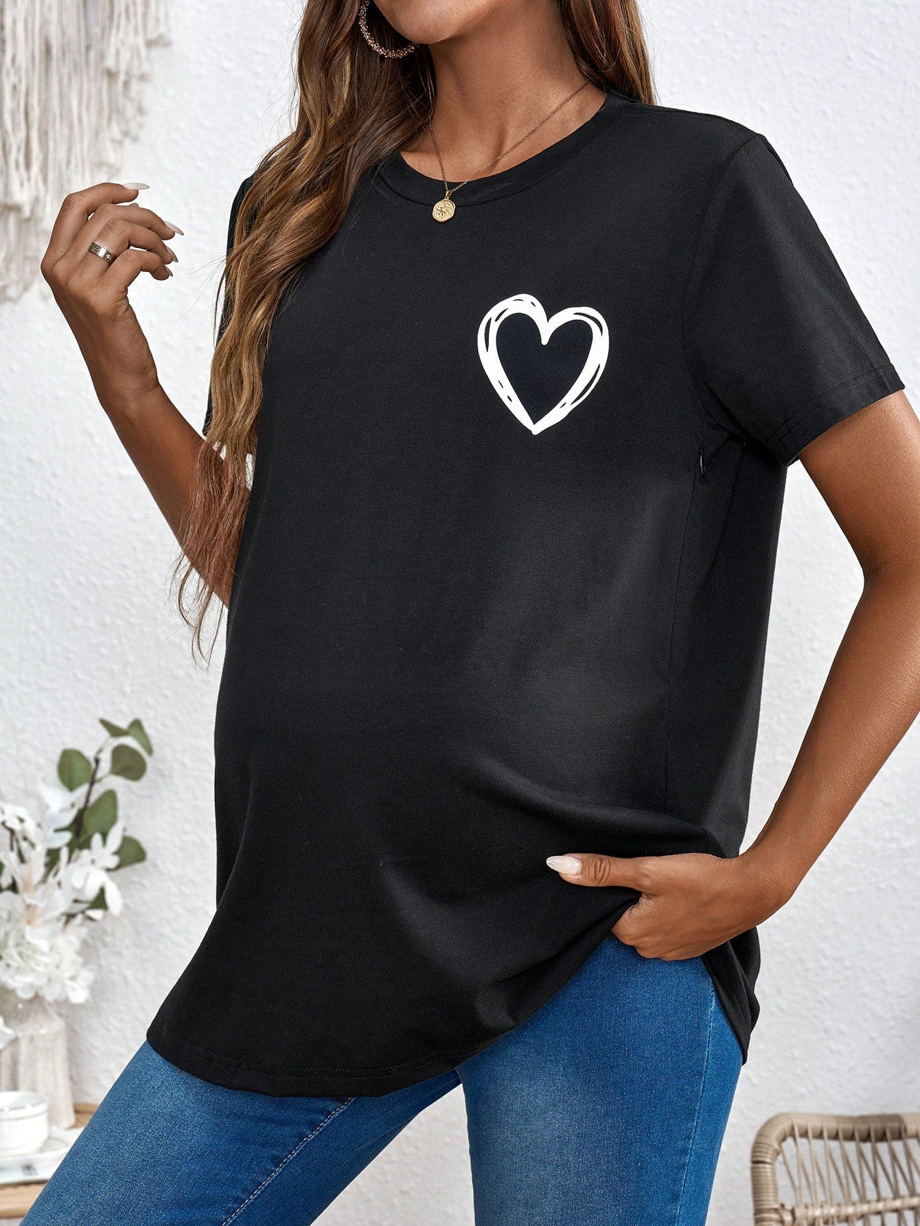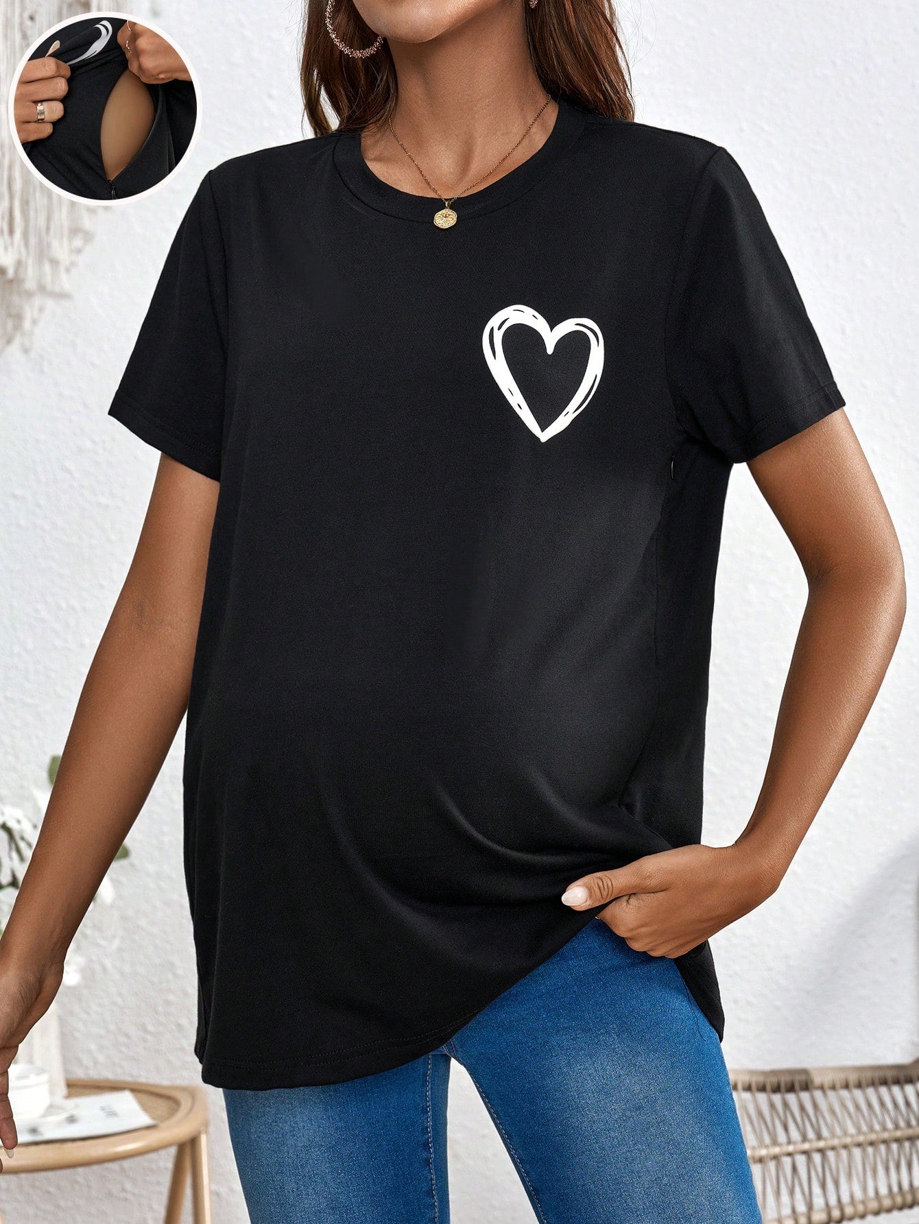 Maternity Heart Print Round Neck Short Sleeve Nursing Casual T-Shirt