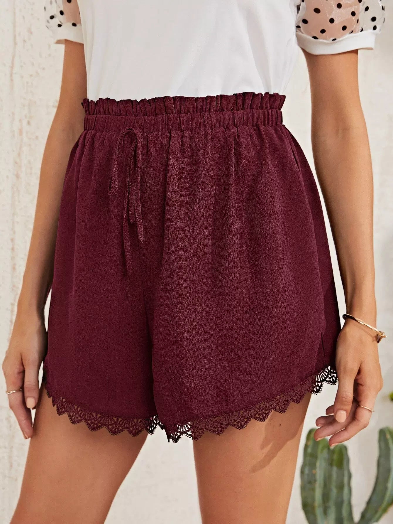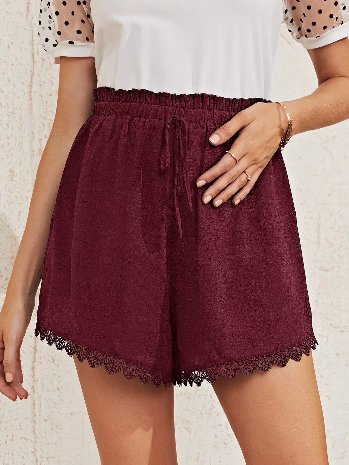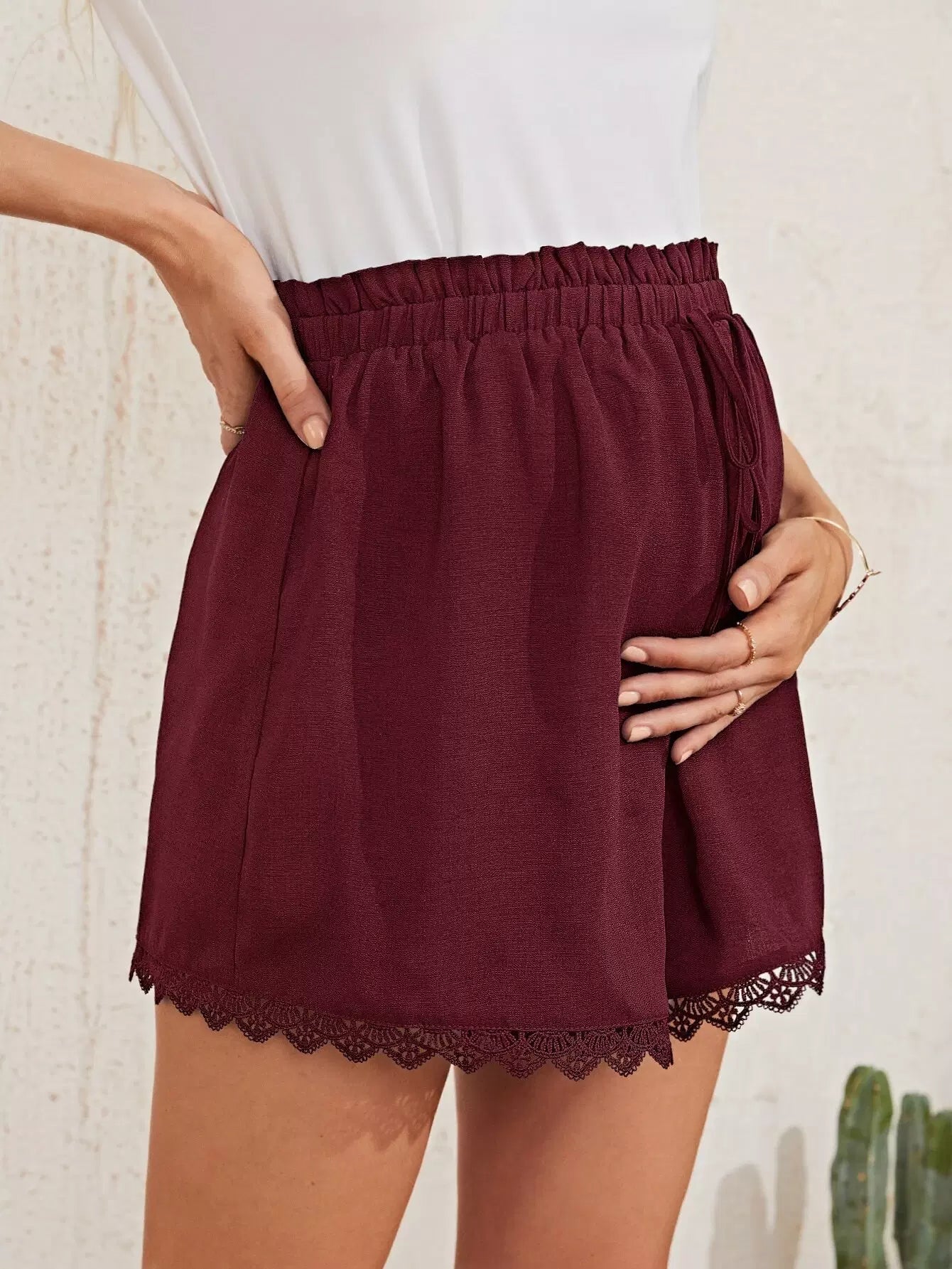Maternity Paperbag Waist Lace Trim Shorts