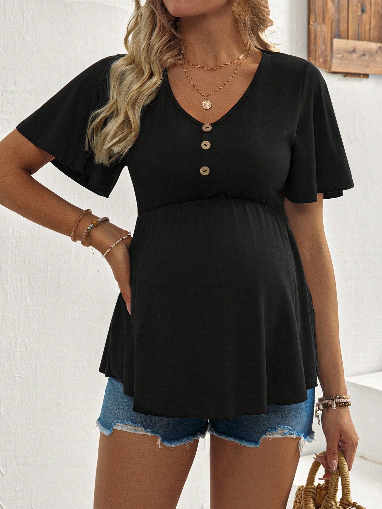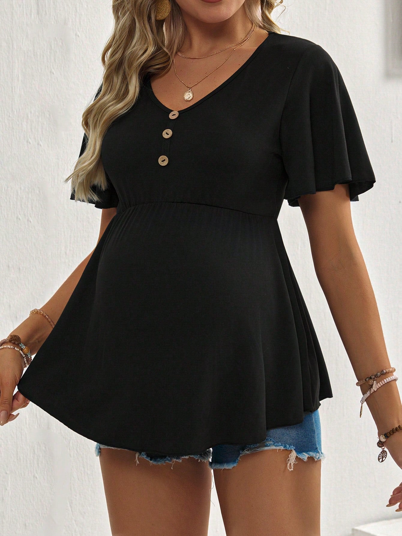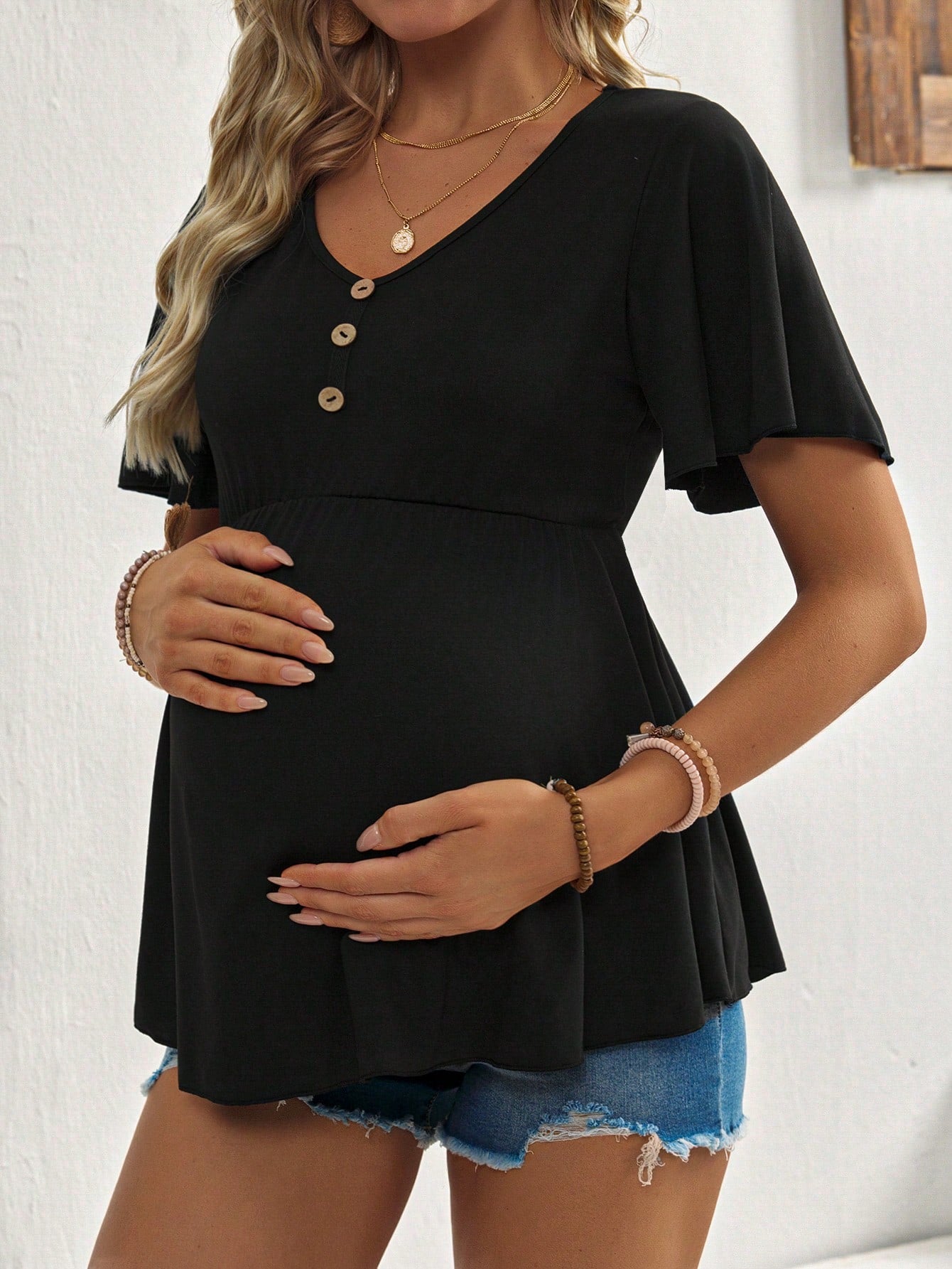 Maternity Simple Color Short Sleeve T-Shirt