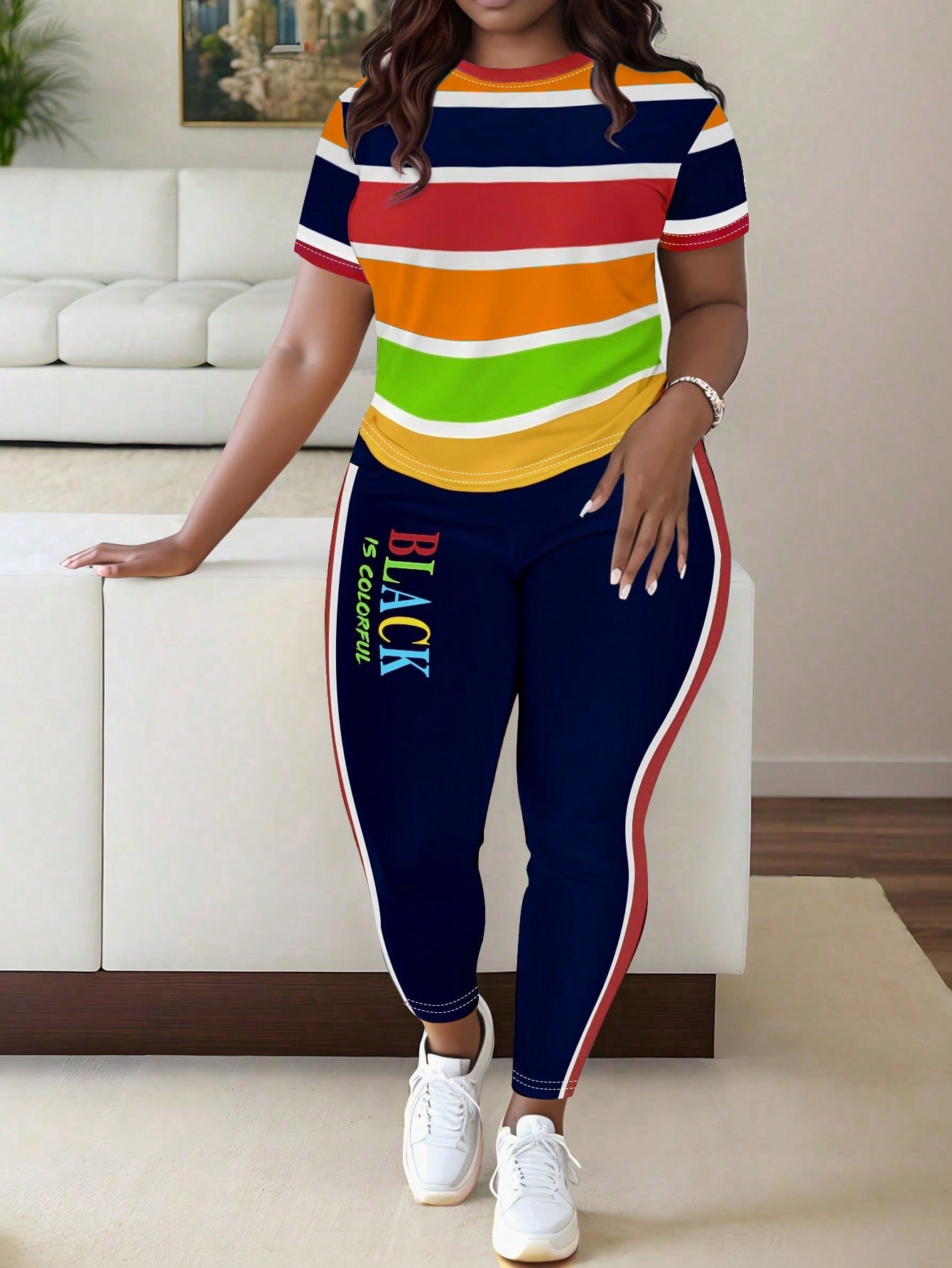 Maweii Plus Size Fashion Colorful Striped Print 2pcs Set