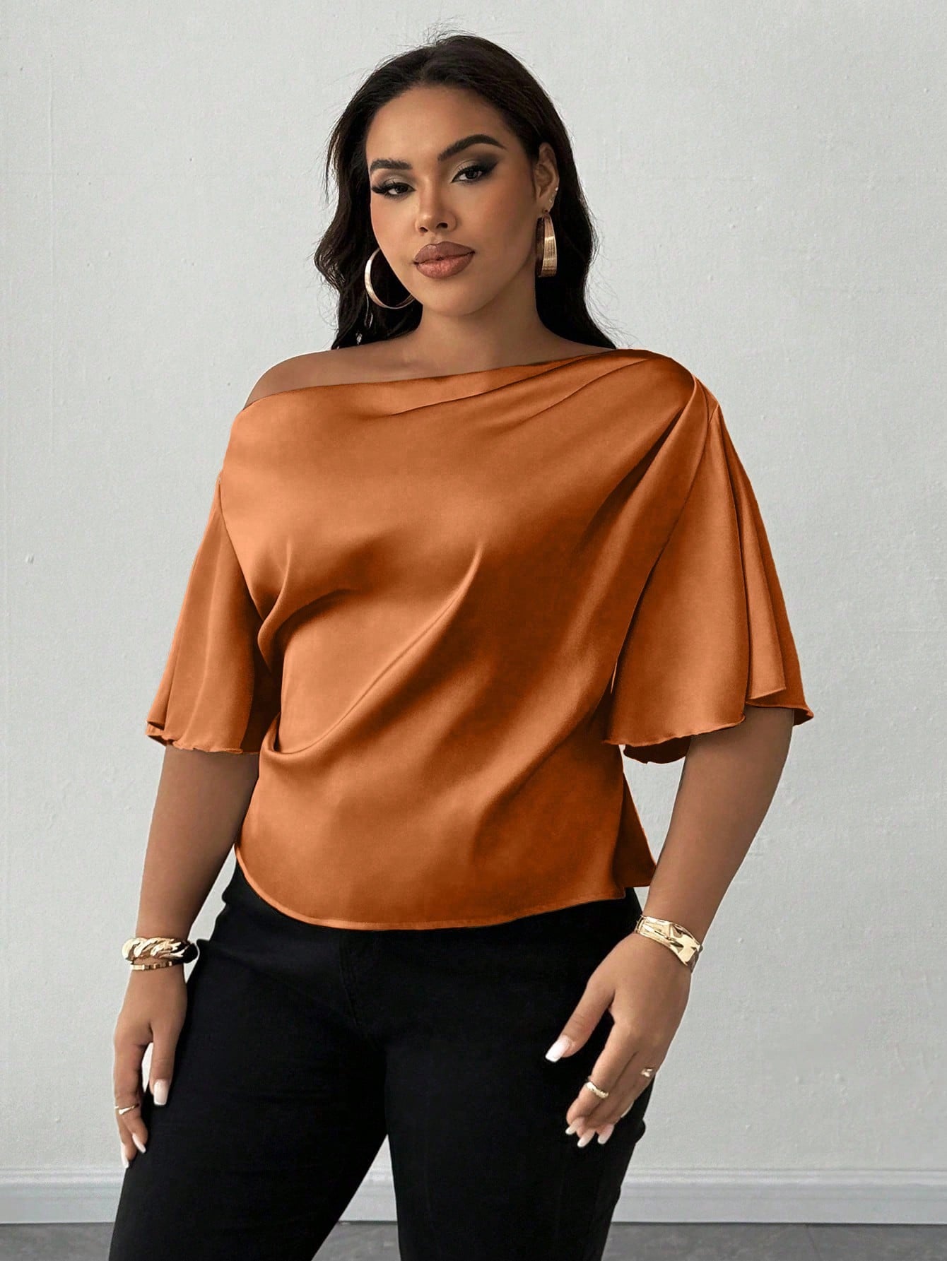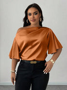 Maweii Plus Size Women's Sexy Ruffle Trim Short Sleeve Elegant Casual Summer Commute Brown Shirt