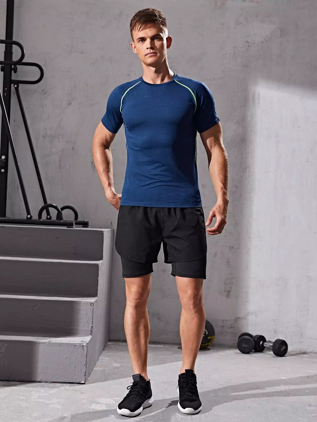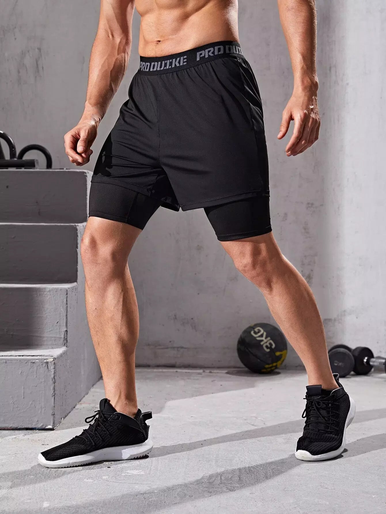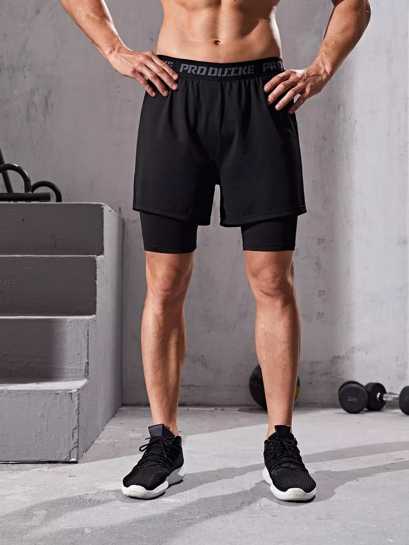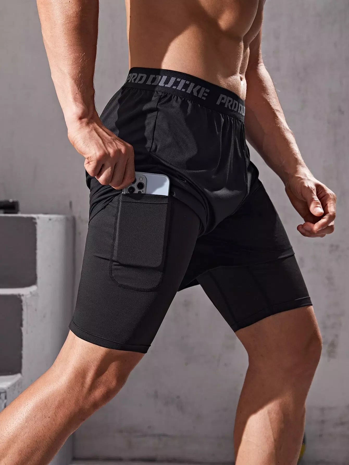 Men 2 In 1 Color-block Sports Shorts With Phone Pocket