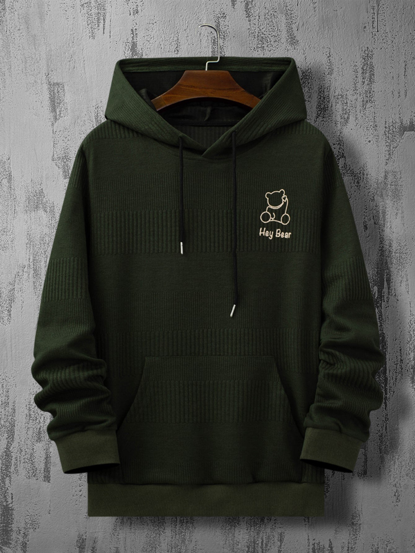 Men Bear And Letter Graphic Kangaroo Pocket Drawstring Hoodie