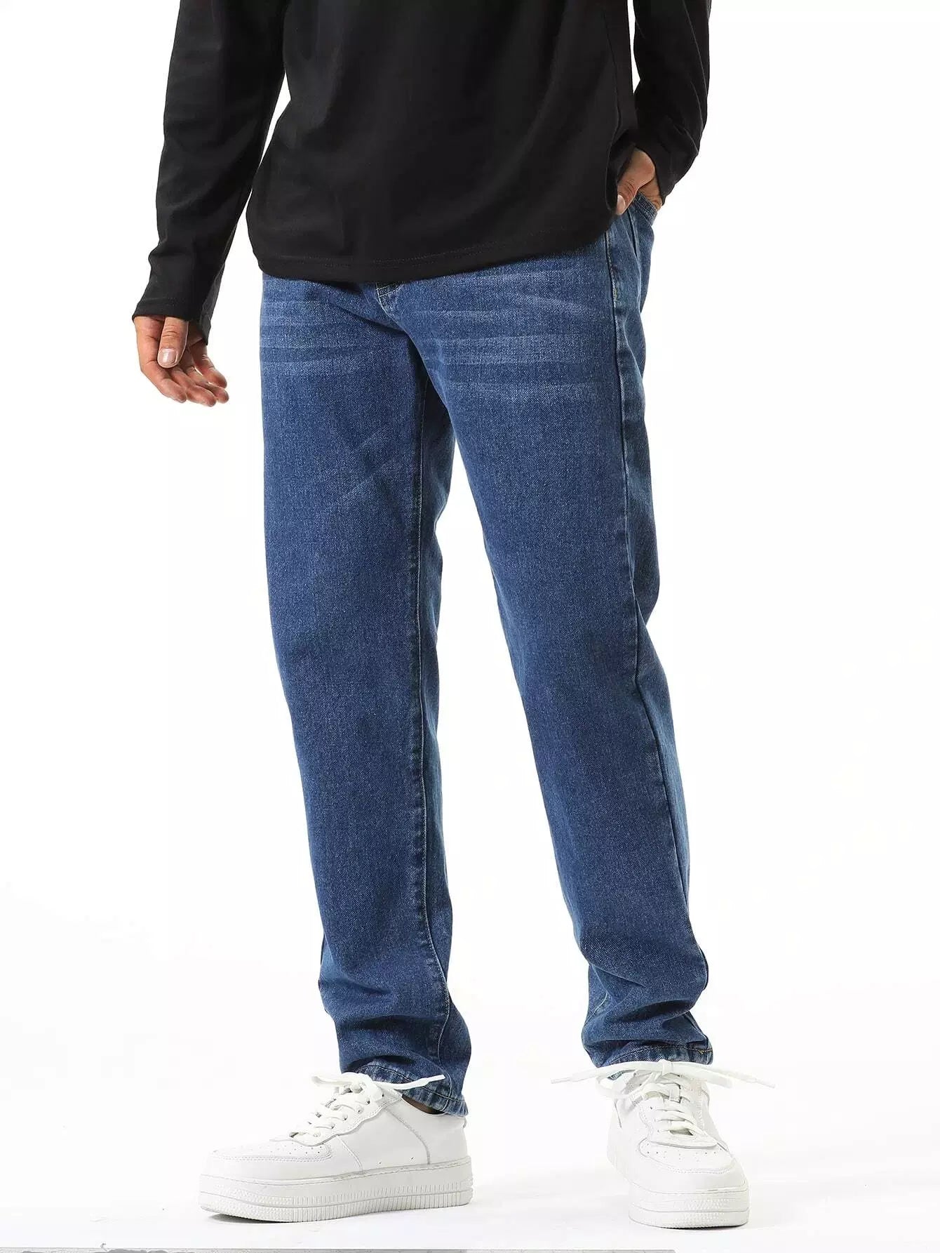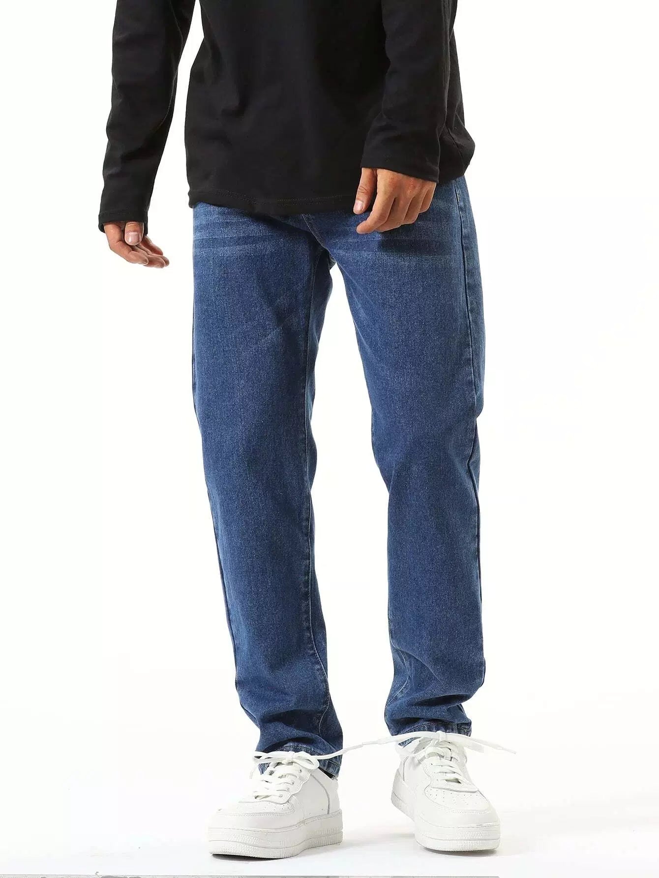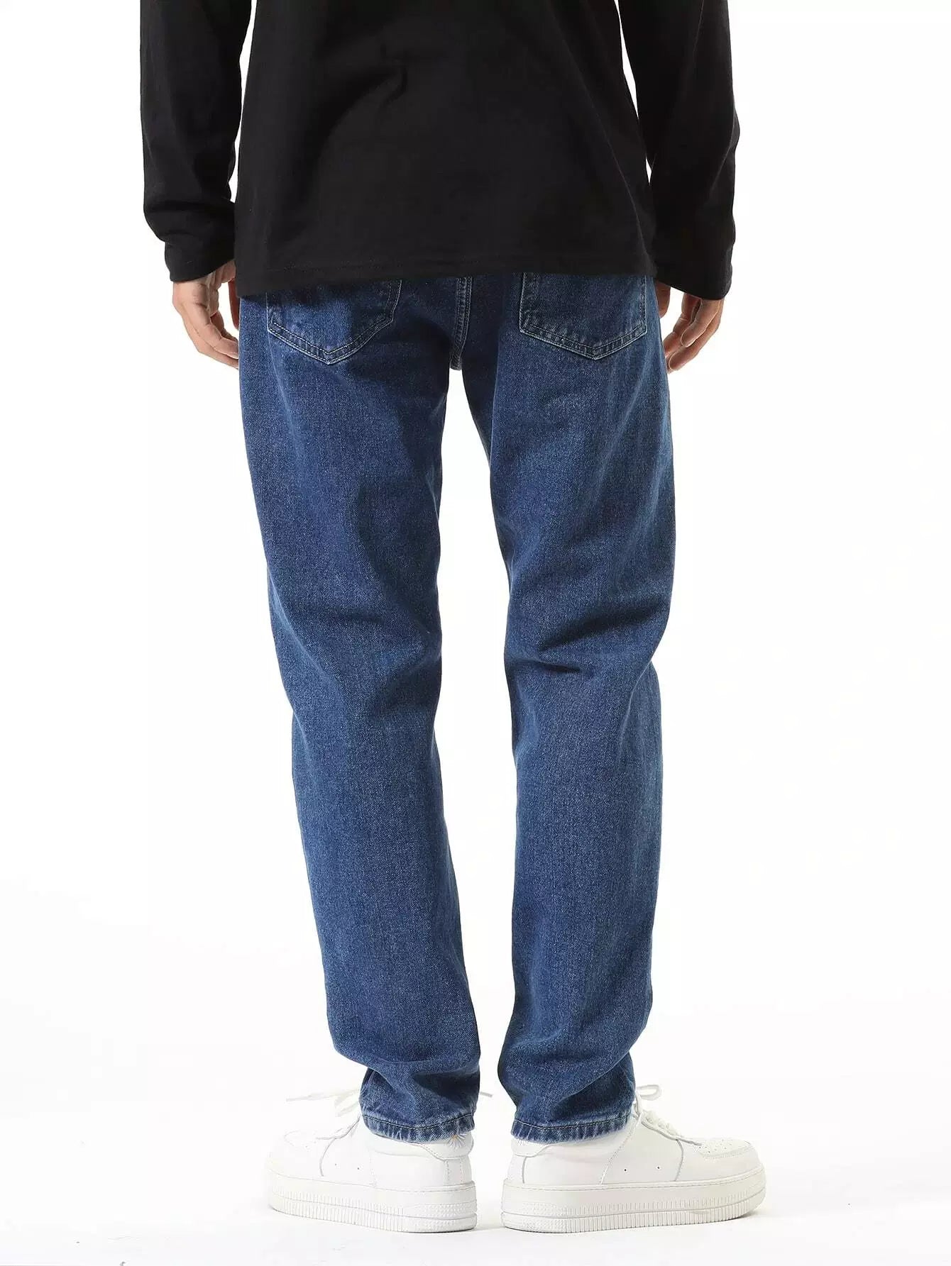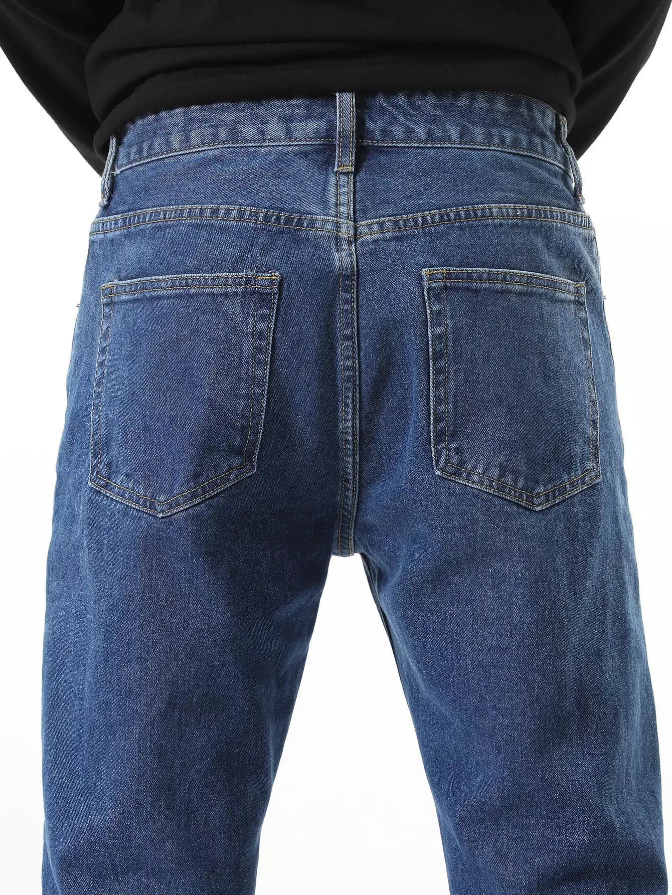 Men Bleach Wash Slant Pocket Tapered Jeans