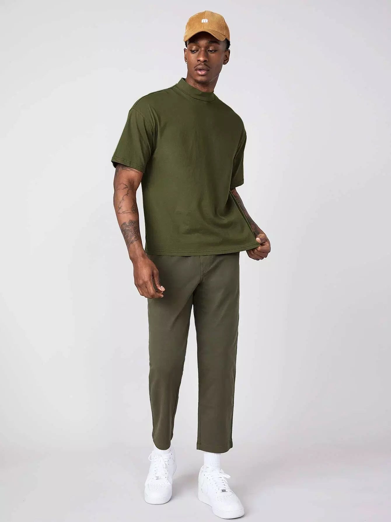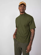 Men Cotton Mock Neck Solid Tee