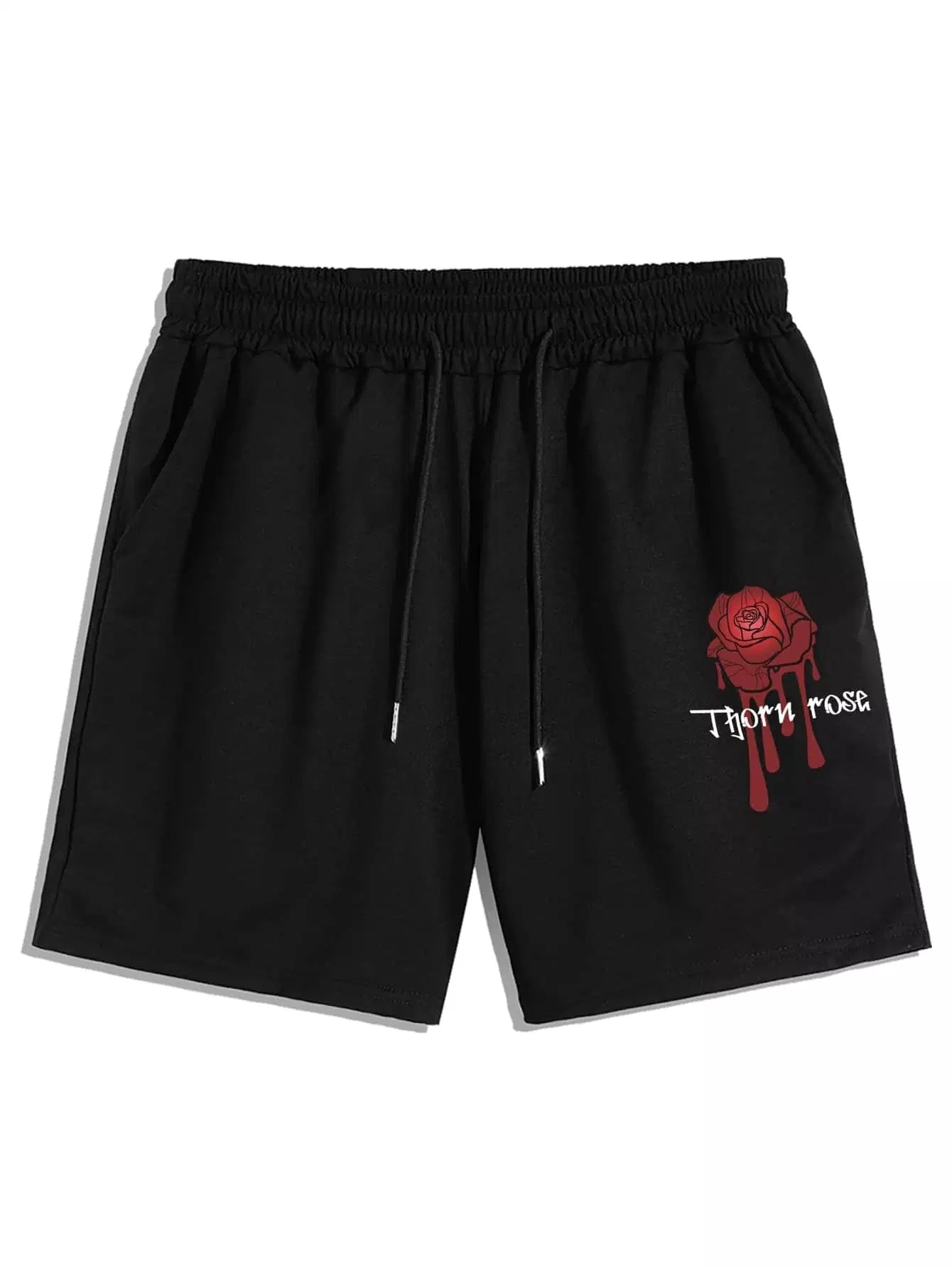 Men Drawstring Waist Floral & Letter Graphic Shorts