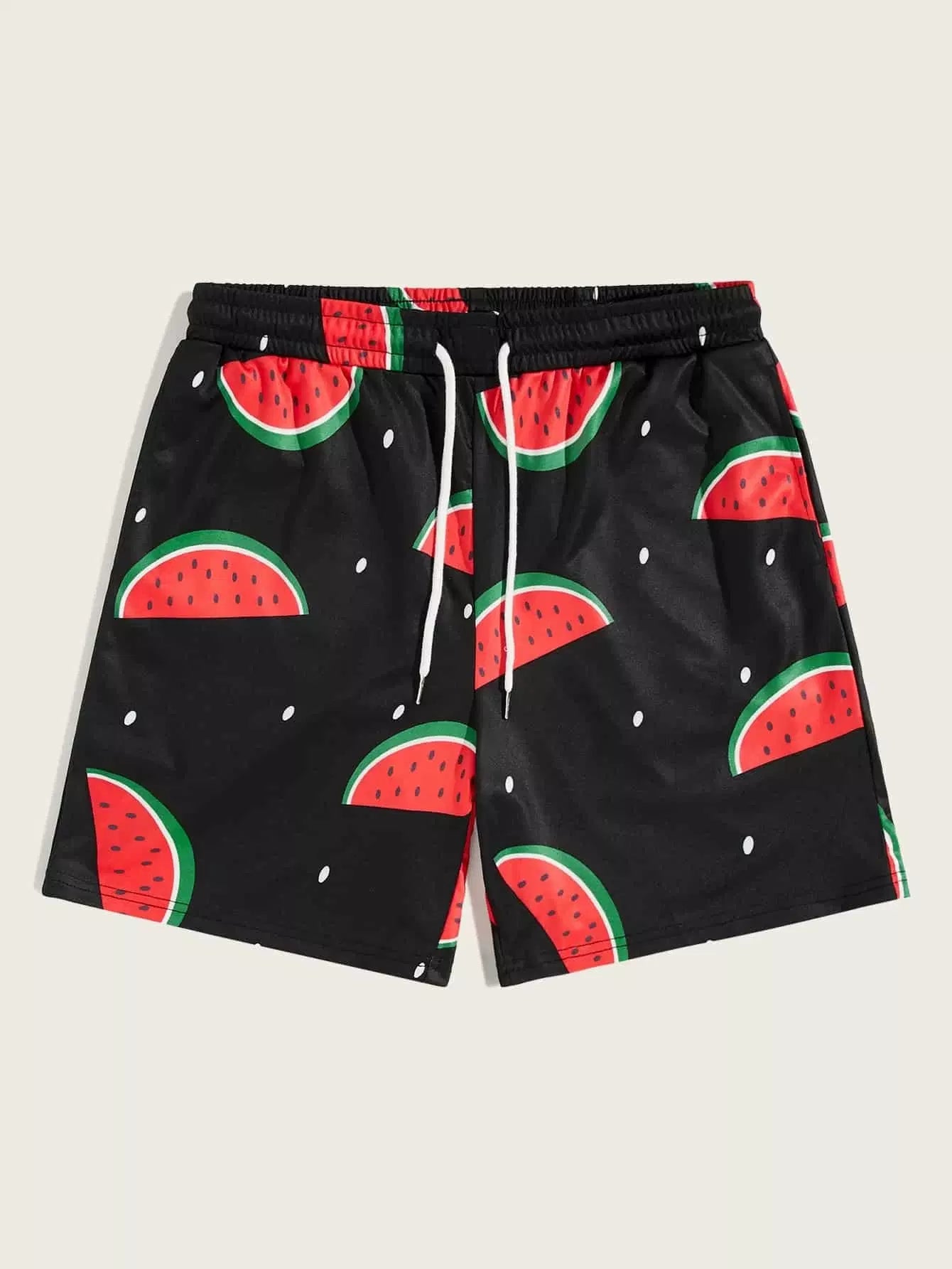 Men Drawstring Waist Watermelon Print Shorts