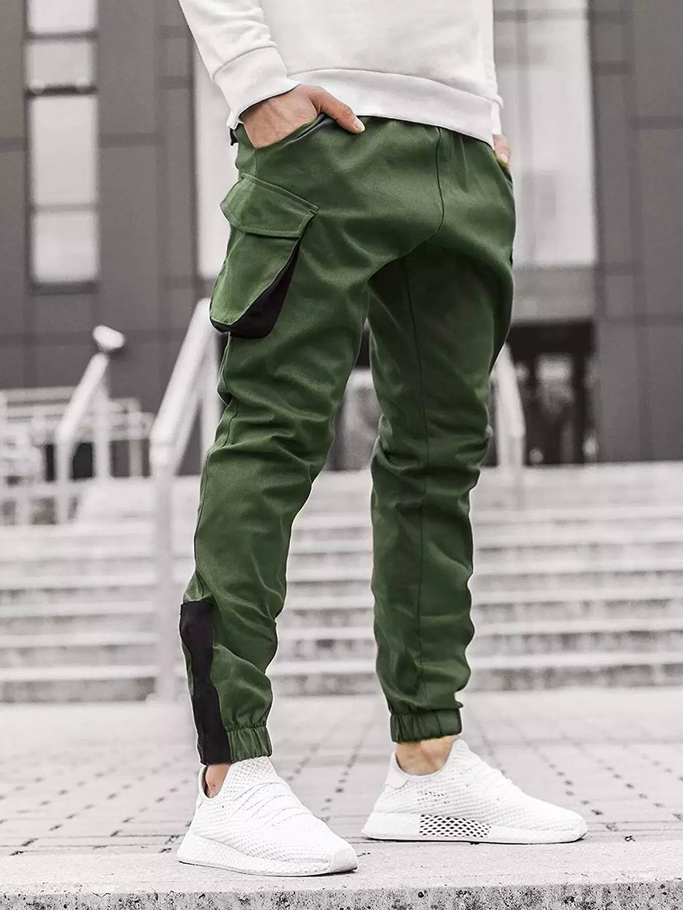 Men Flap Pocket Contrast Panel Cargo Pants