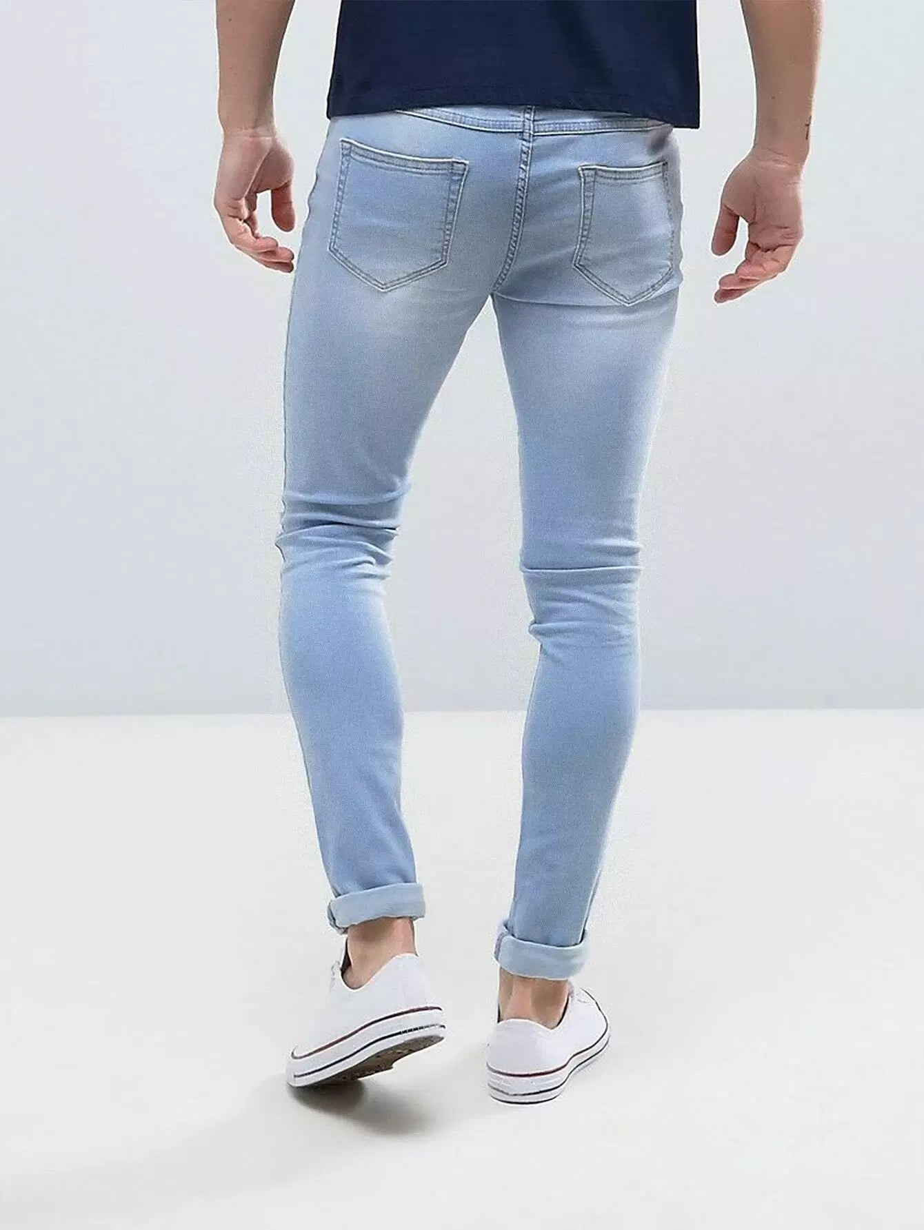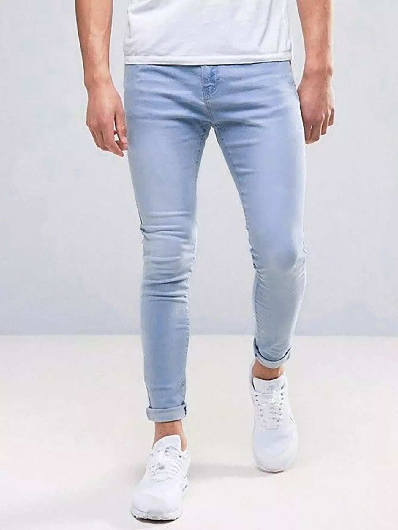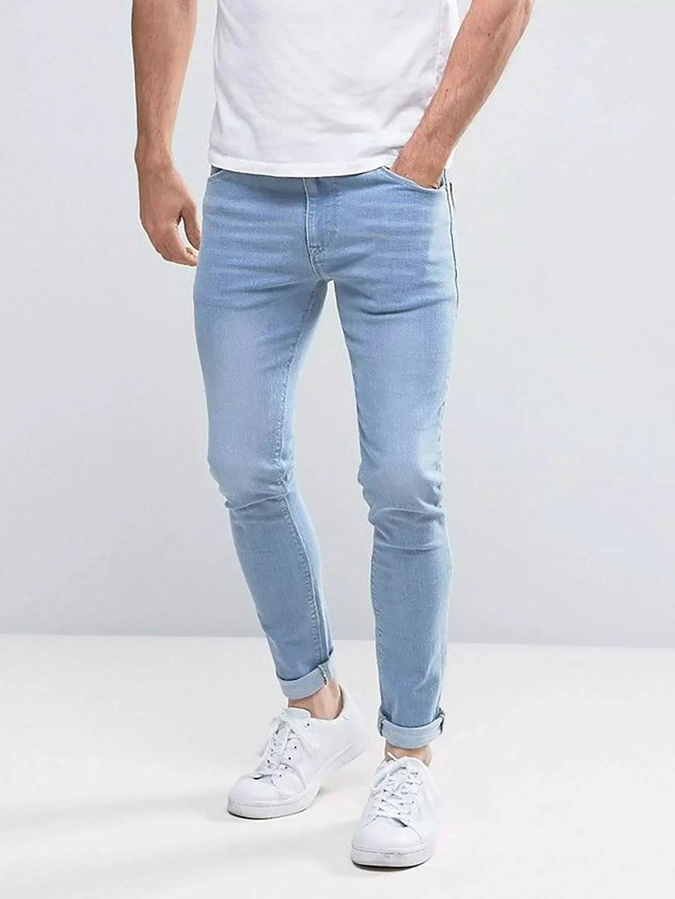Men High Waist Slant Pockets Skinny Jeans