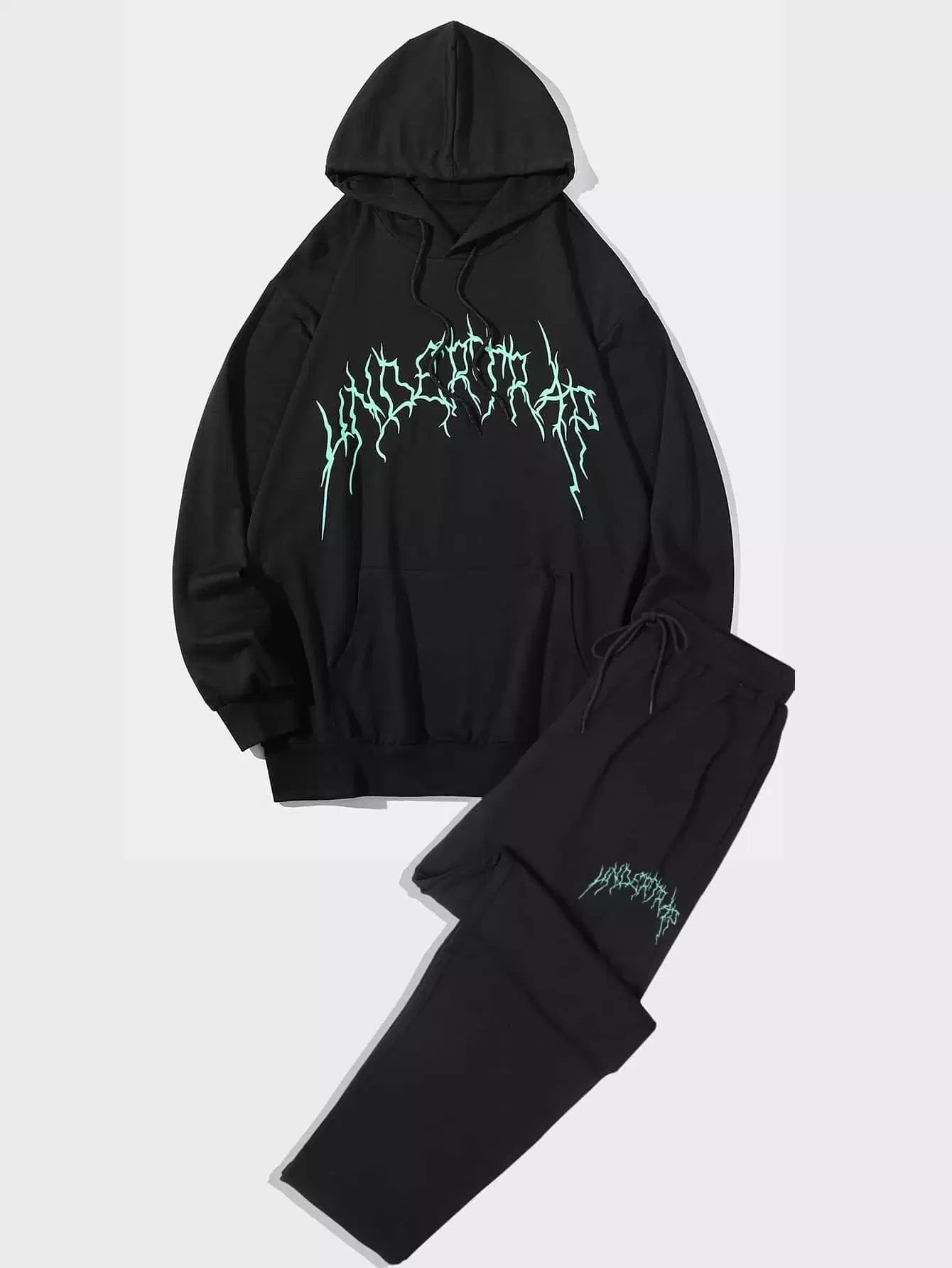 Men Letter Graphic Kangaroo Pocket Drawstring Hoodie & Sweatpants