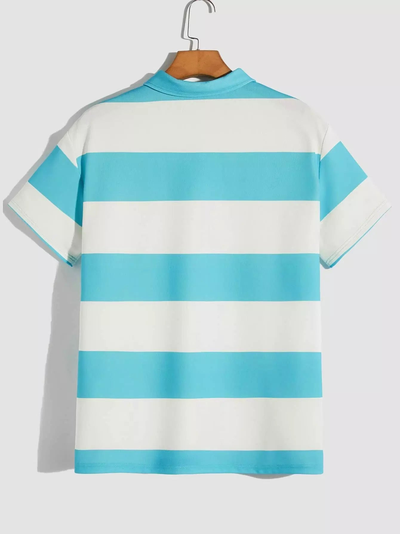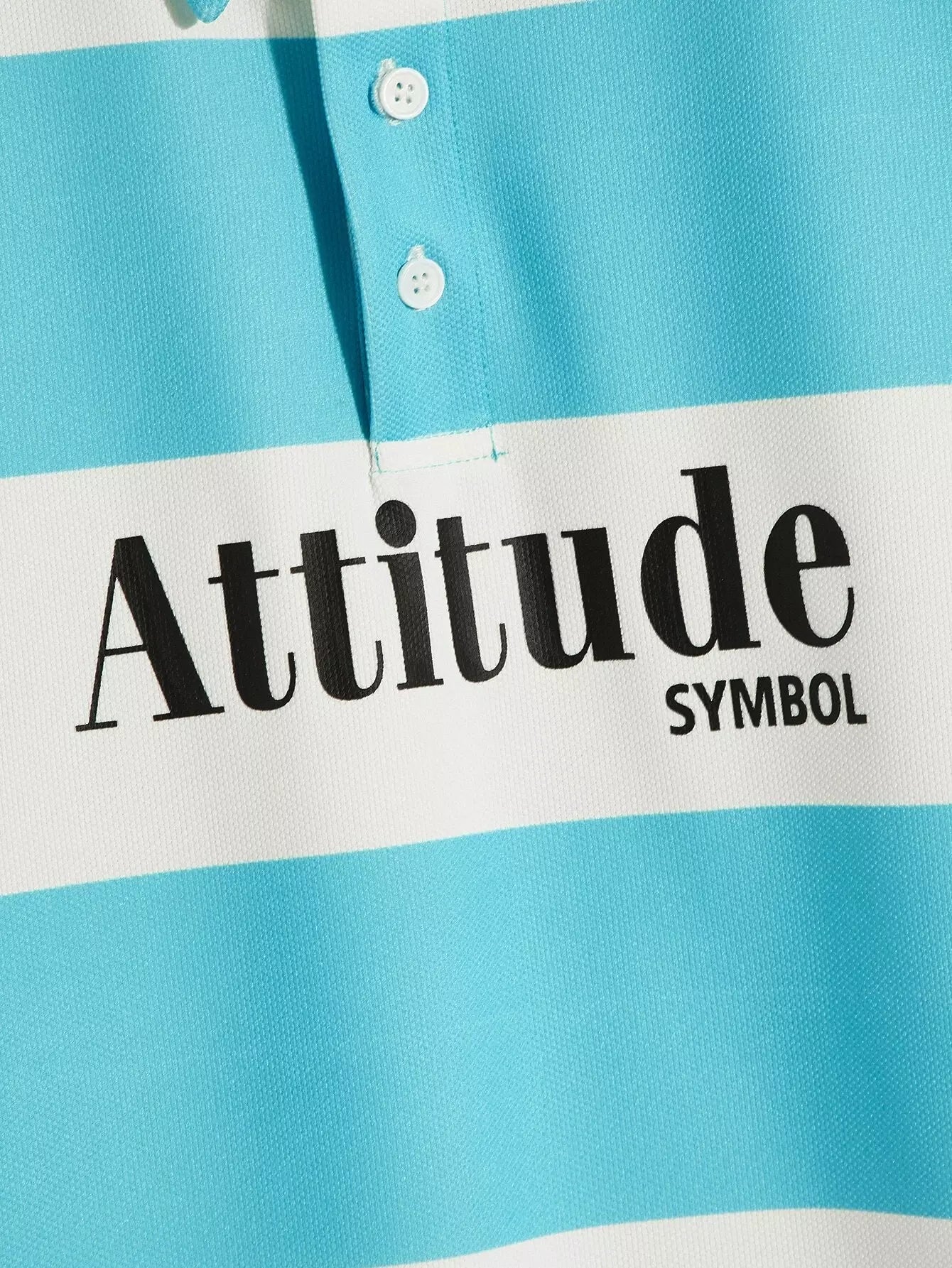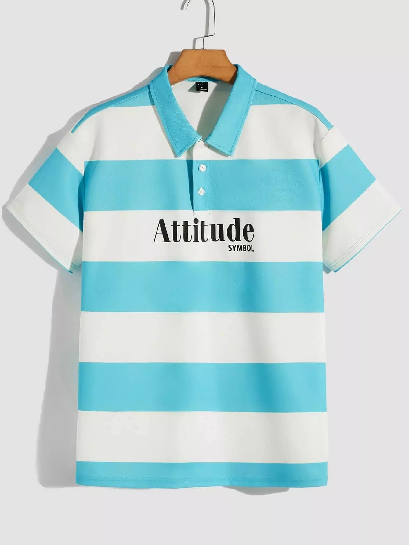 Men Letter Graphic Striped Button Half Placket Polo Shirt