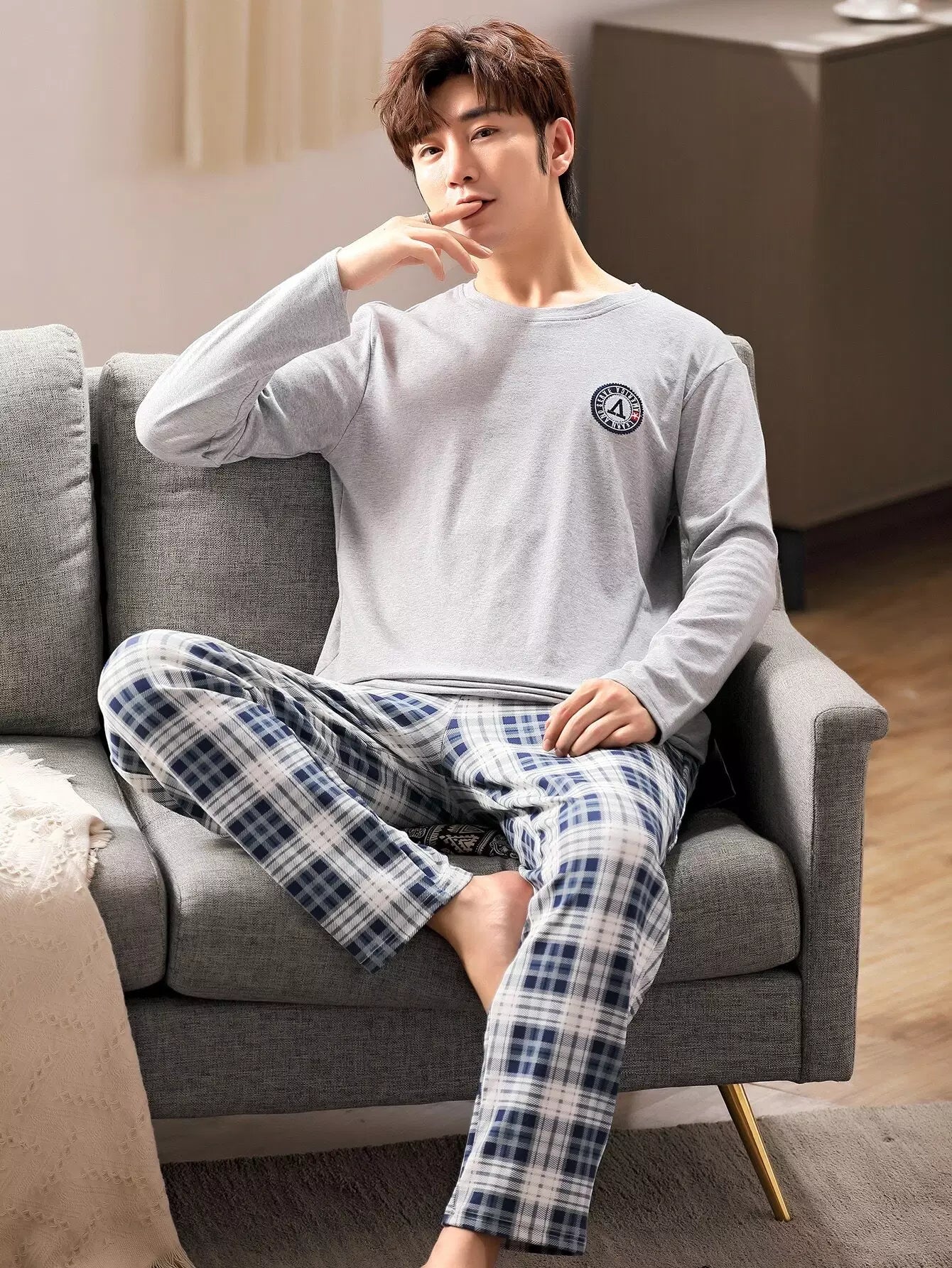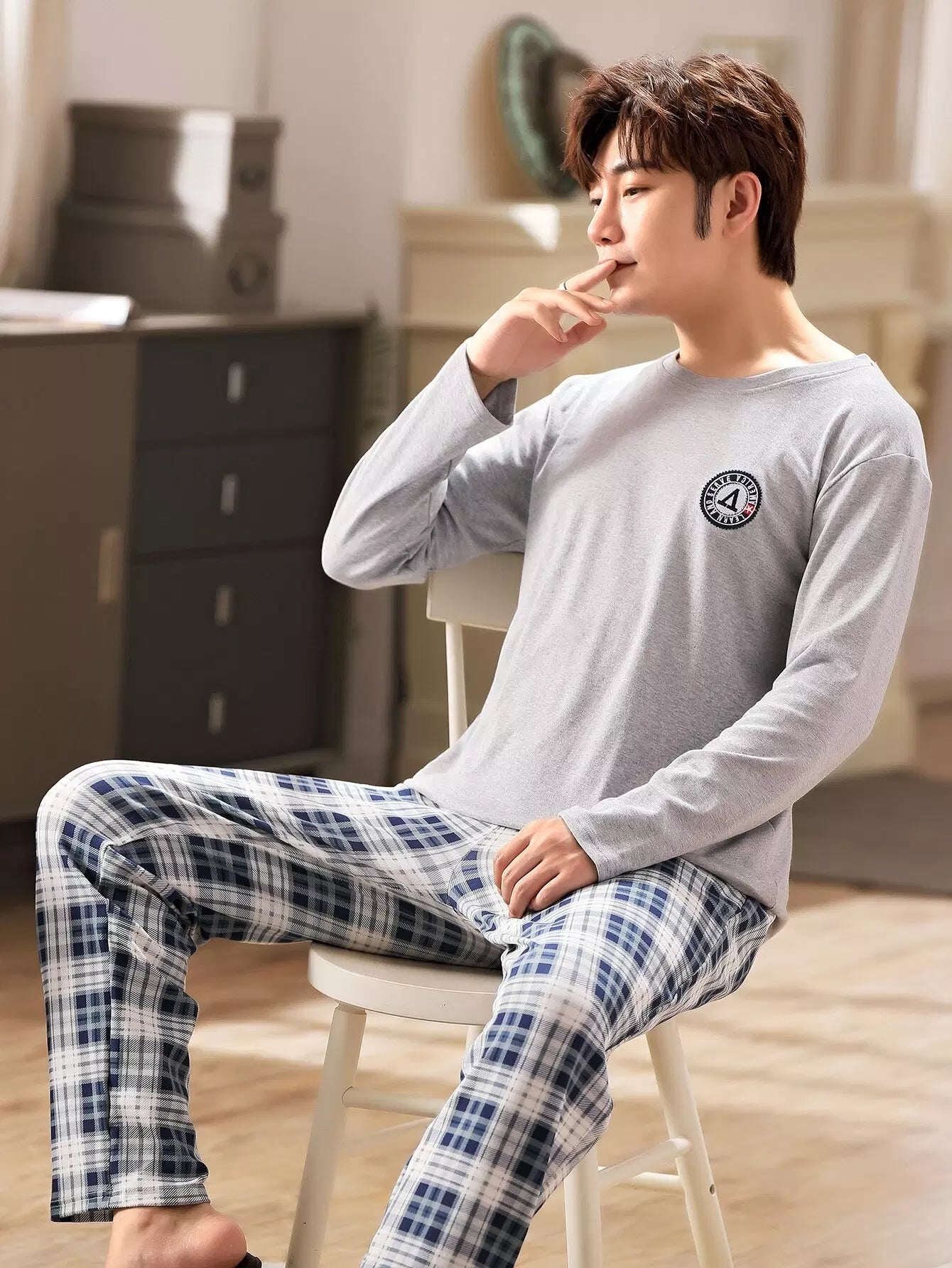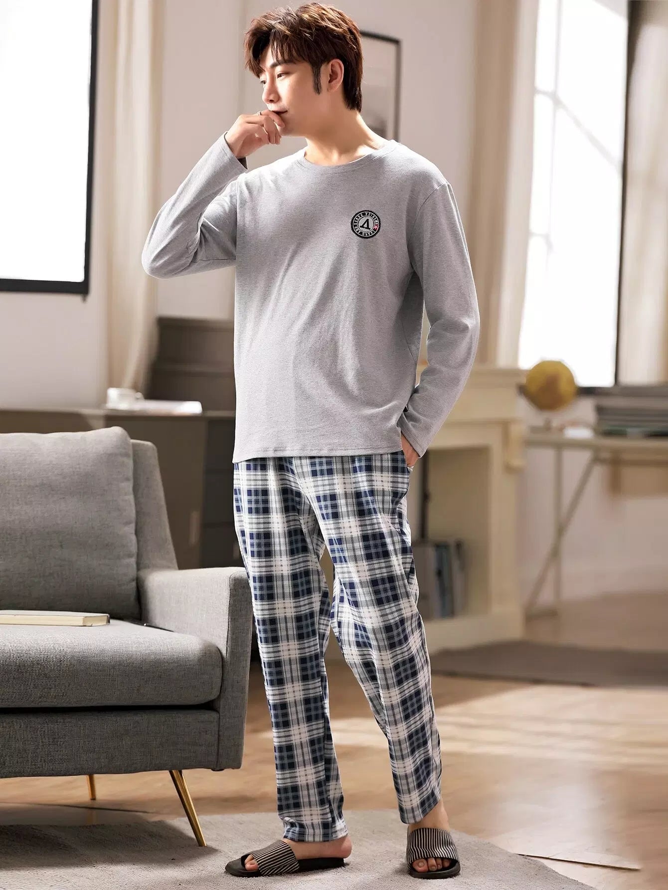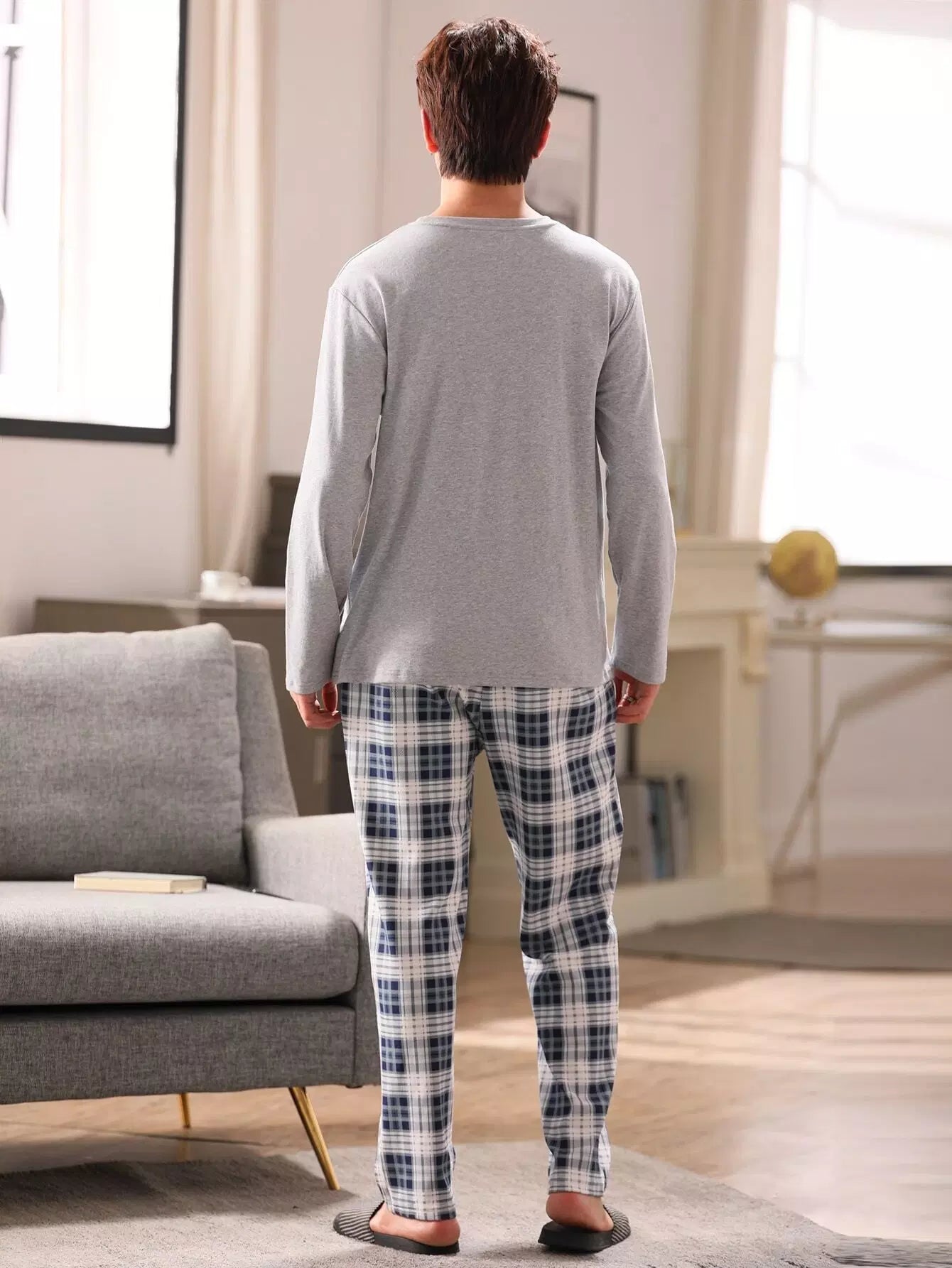 Men Letter Graphic Tee & Plaid Pants PJ Set