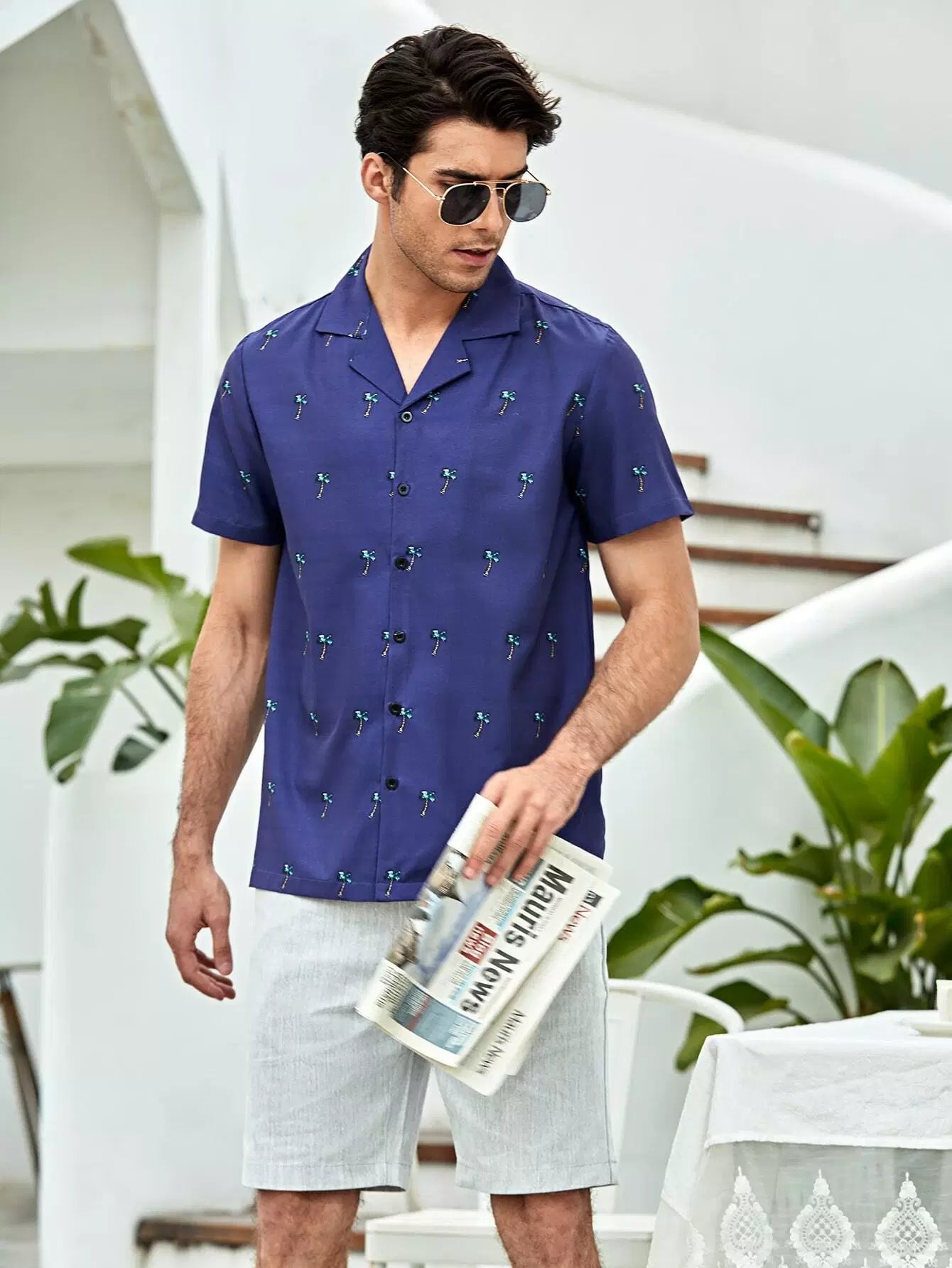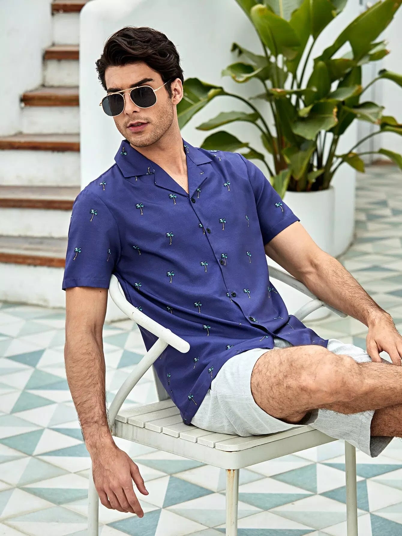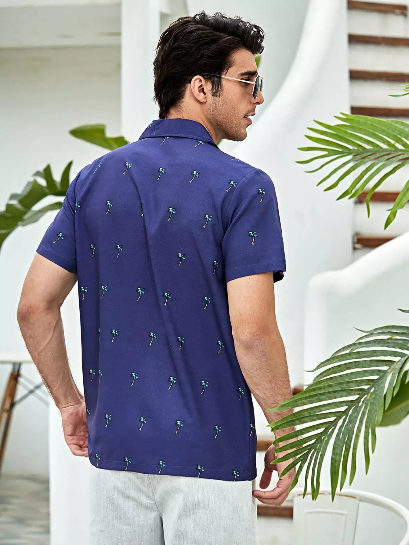 Men Palm Tree Print Button Up Shirt