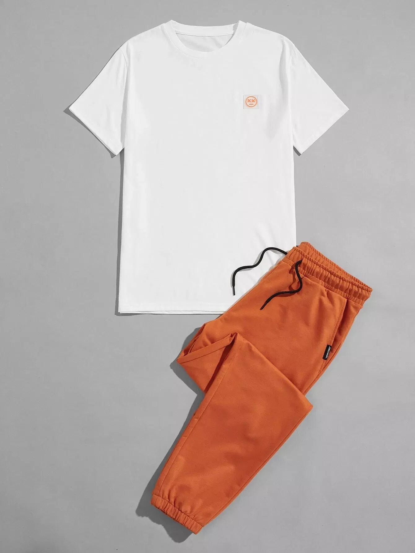 Men Patched Tee With Drawstring Pants