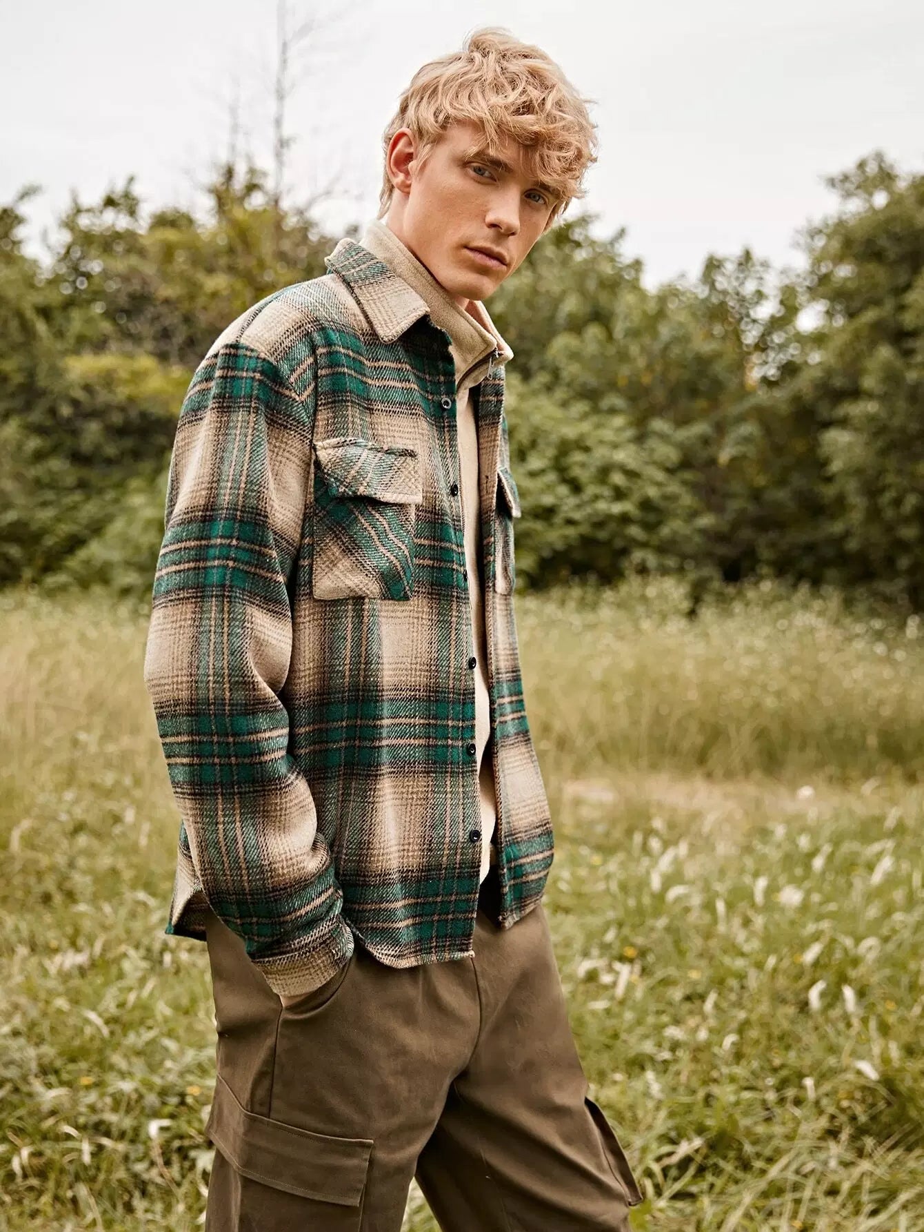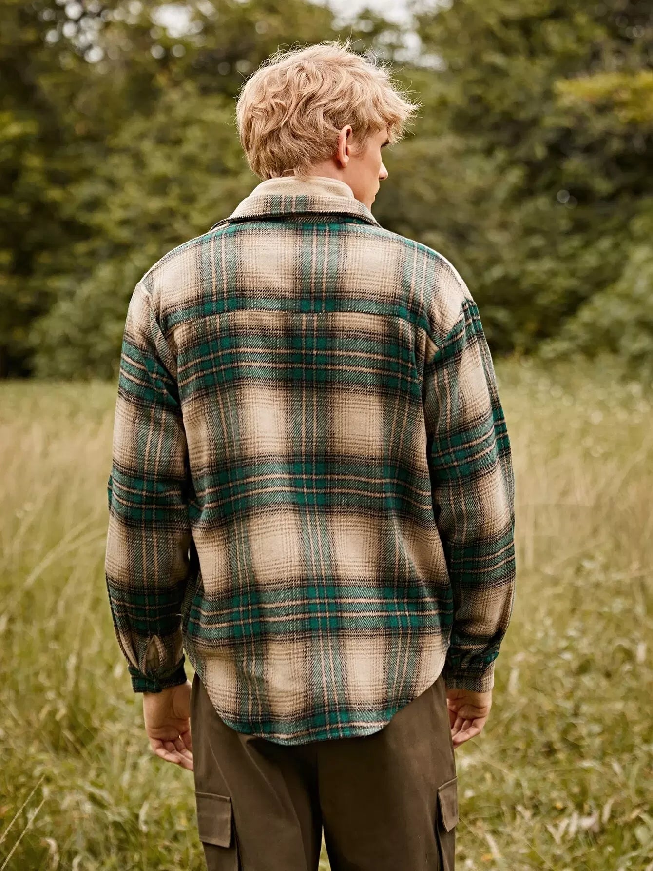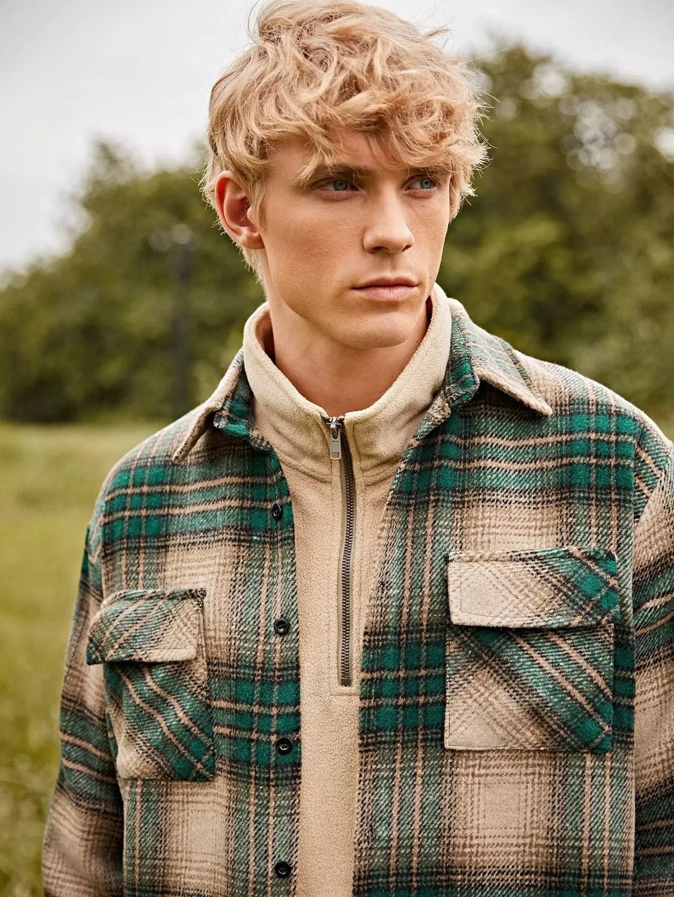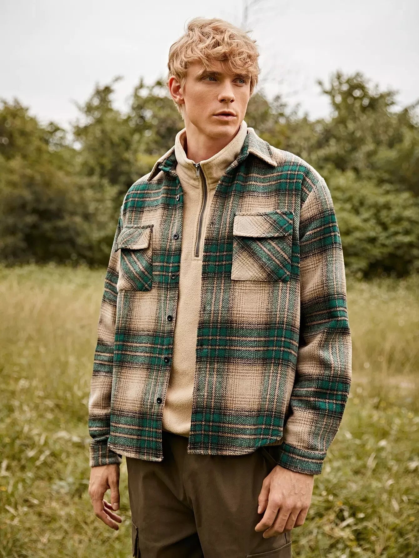 Men Plaid Flap Pocket Overcoat
