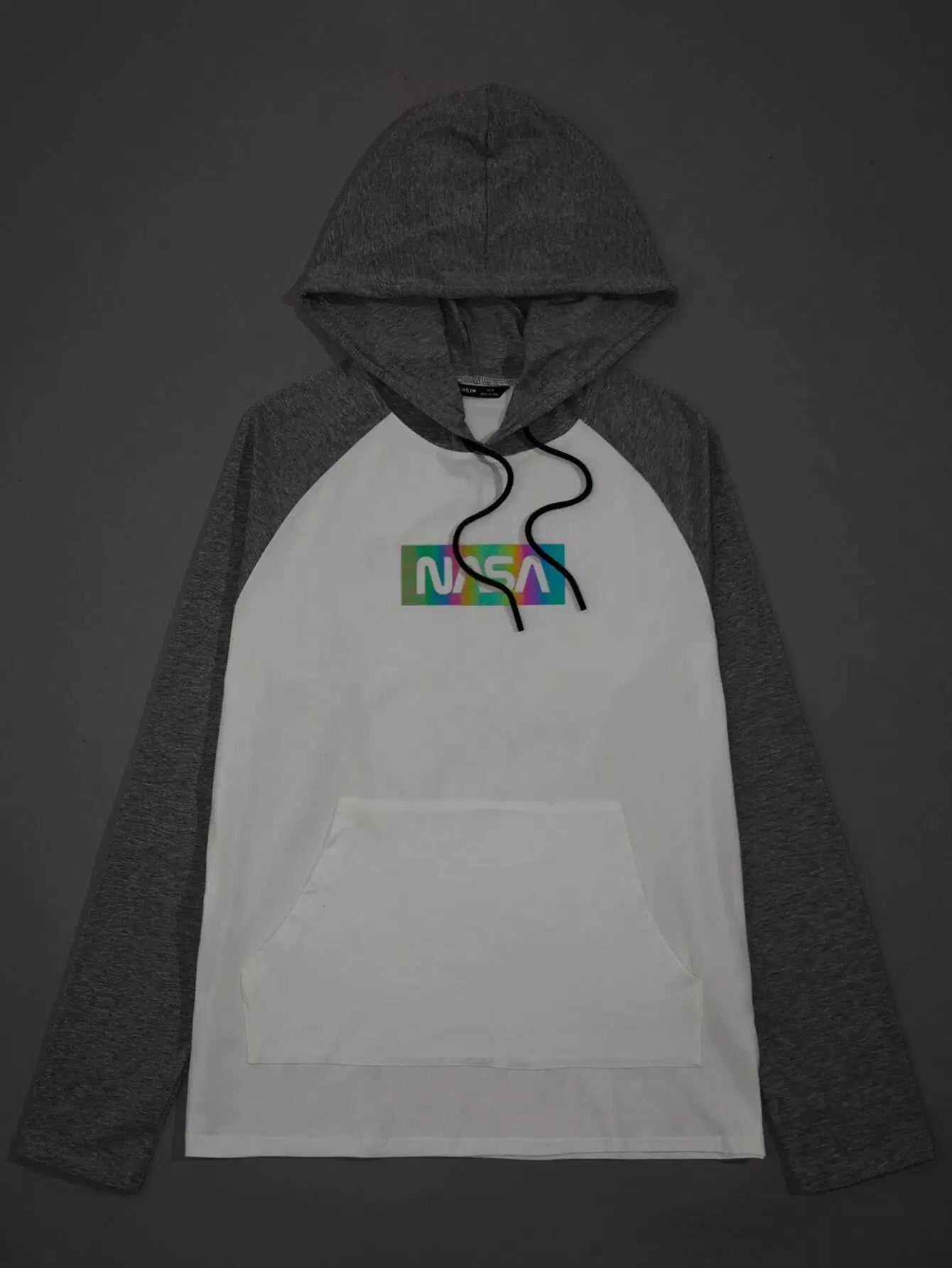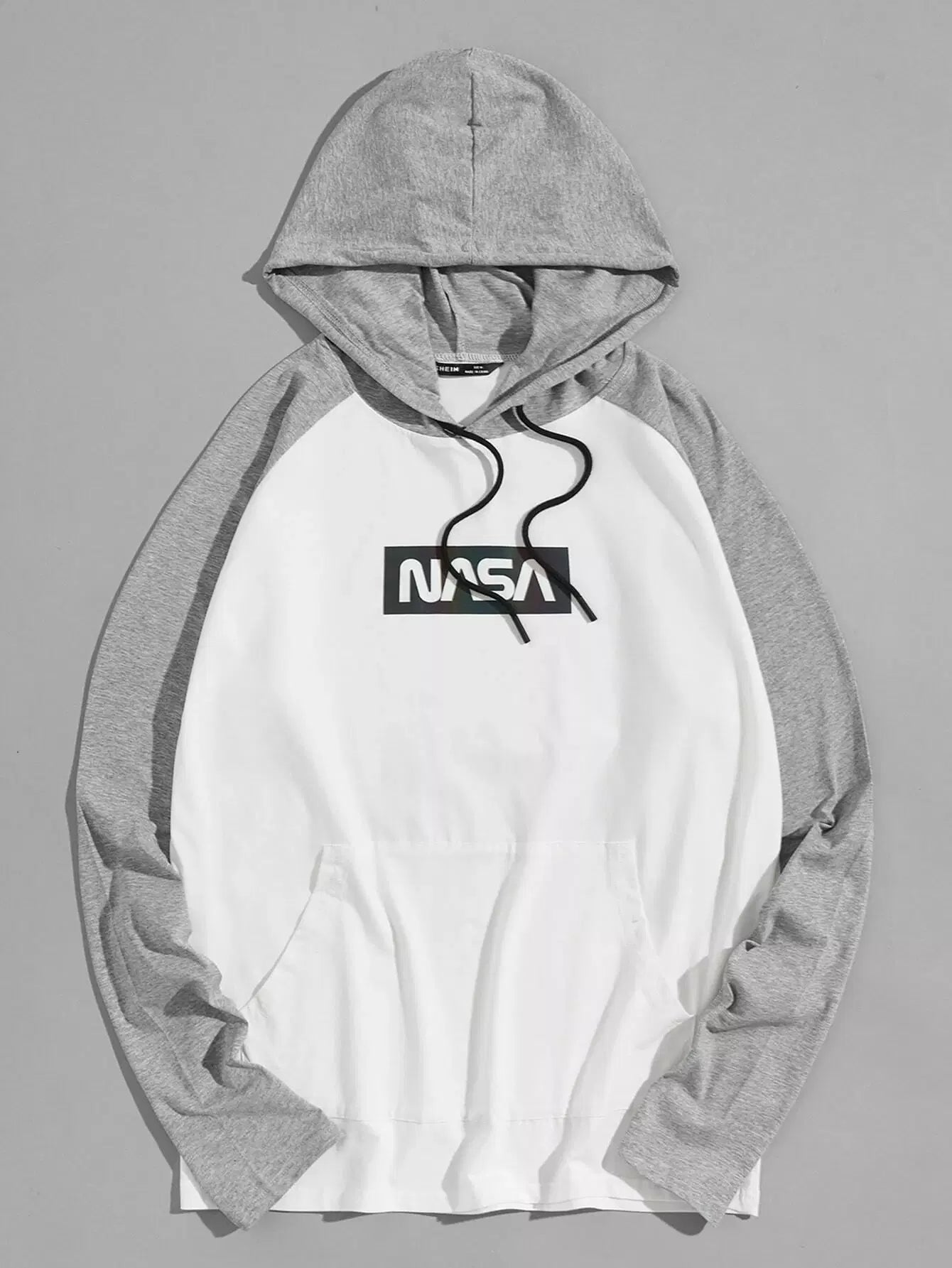Men Raglan Sleeve Reflective Letter Graphic Colorblock Drawstring Hoodie